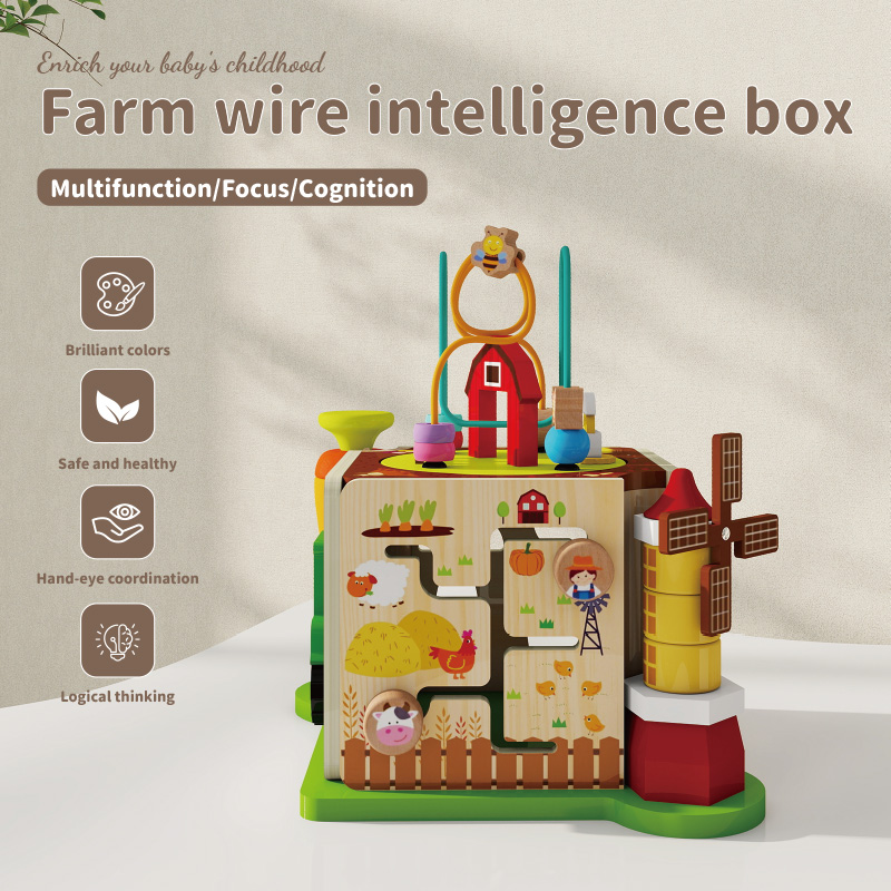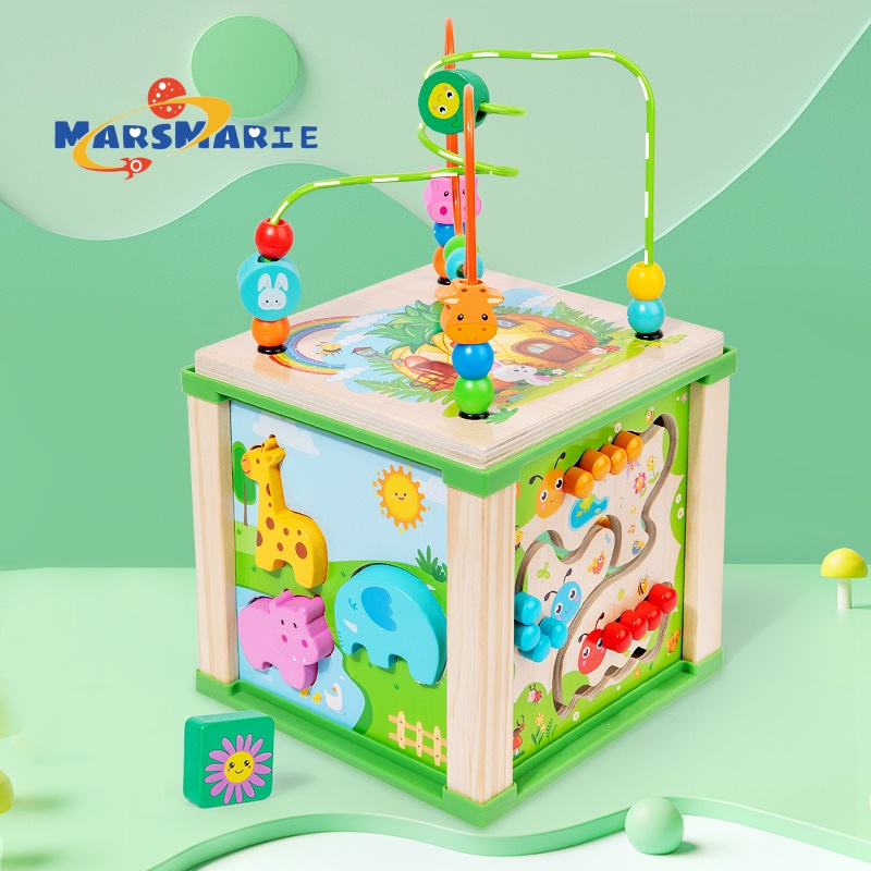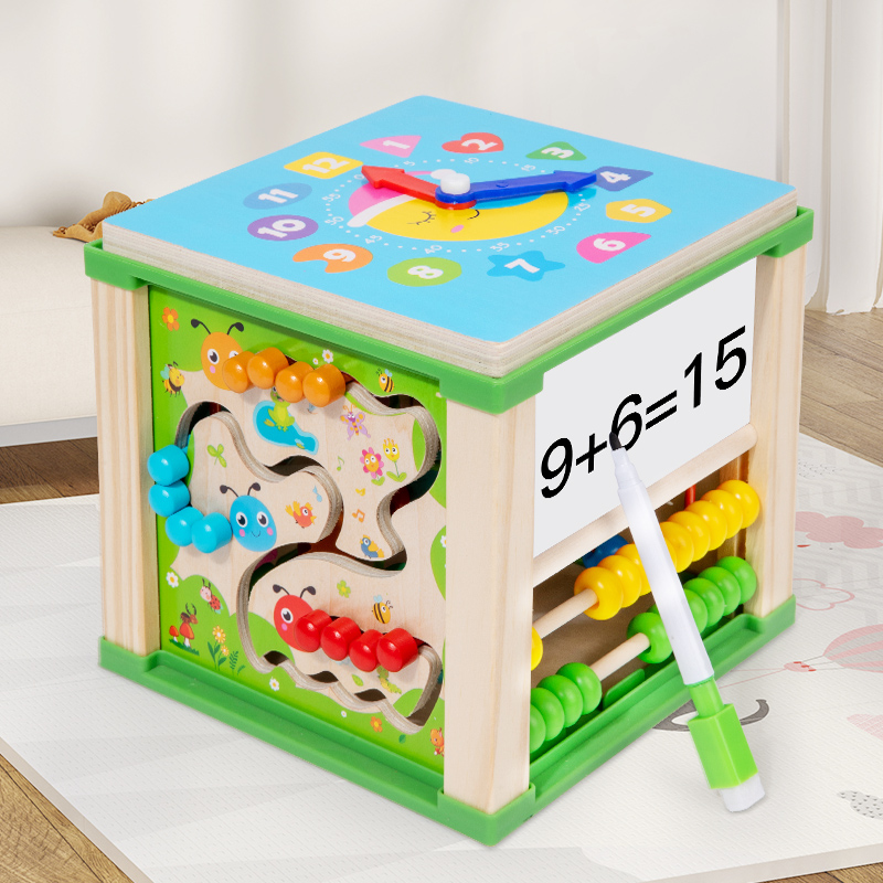 Wood Beaded Multifunctional High Quality Solid Four-Sided Treasure Box Early Education Intelligence Box Educational Toys
