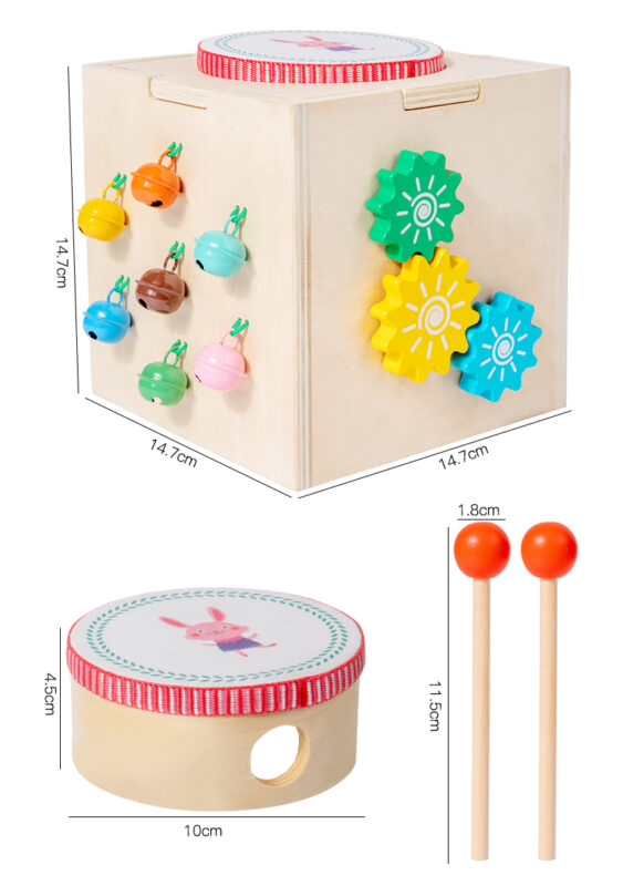 Multi-Function Five-in-One Montessori Training Music Box Set Age 2-4 Years Wood Toys for Educational Games Includes Drum
