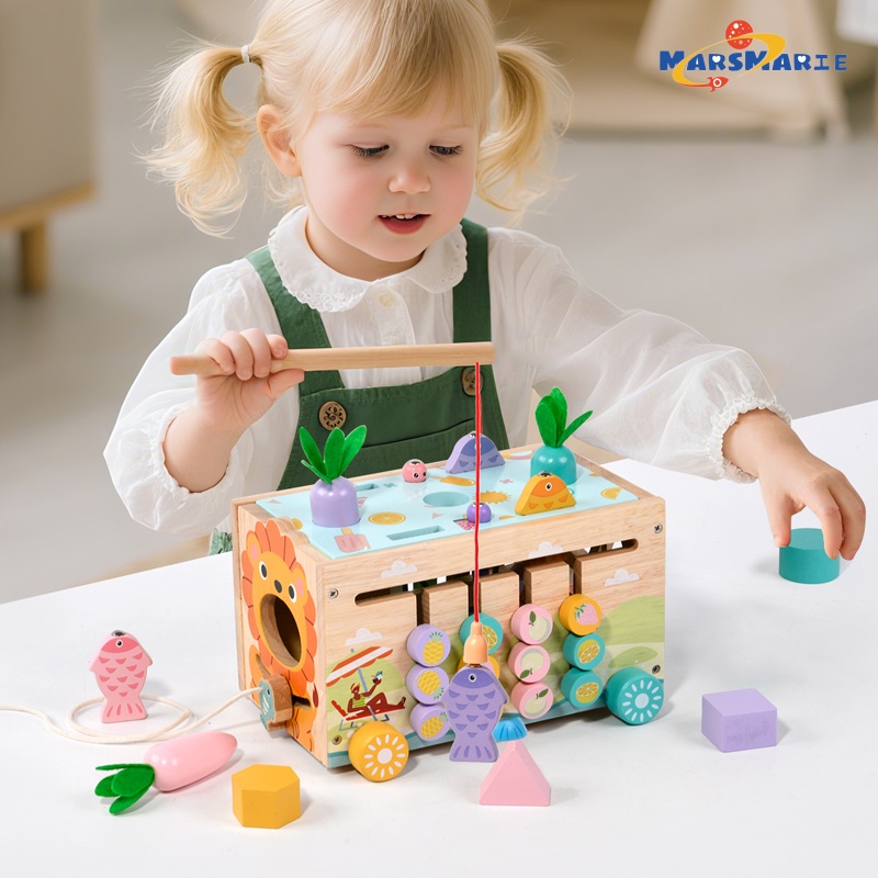 Wood Fishing Game Ball Coin Box Montessori 9 in 1 Intelligence Puzzle Toy Multifunctional Geometric Shape Matching Wooden Toys