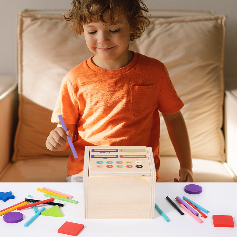 New Children’s Early Education Wooden Montessori Color and Shape Matching Sorting Touch Drawer Box