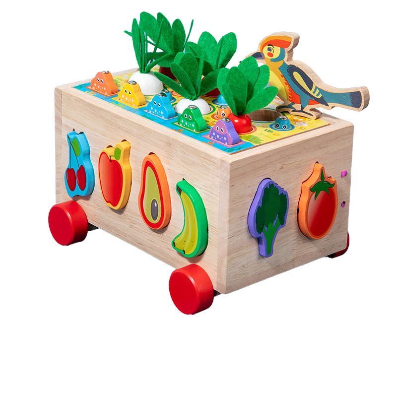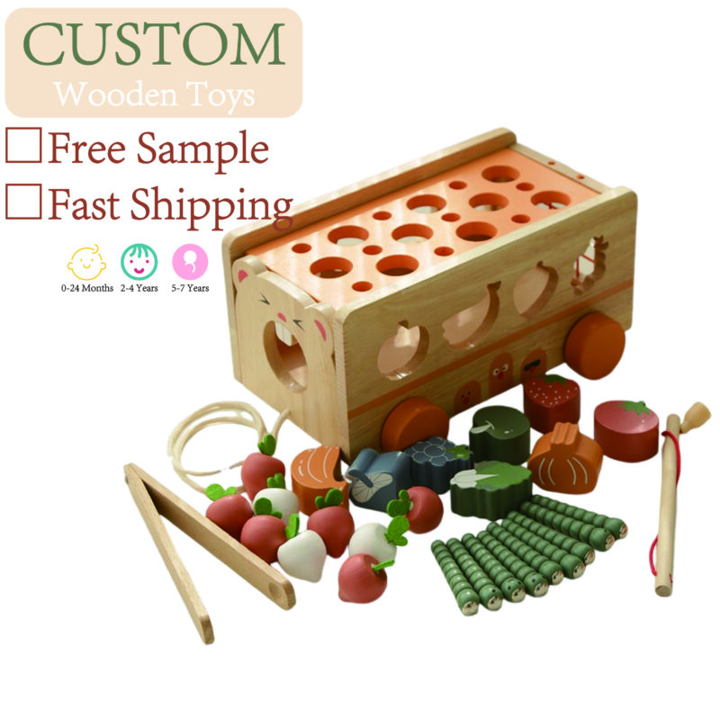 Wooden Multi-functional Children’s Mole Feeding Pull Car Fruit and Vegetable Cognitive Matching Early Educational Toys