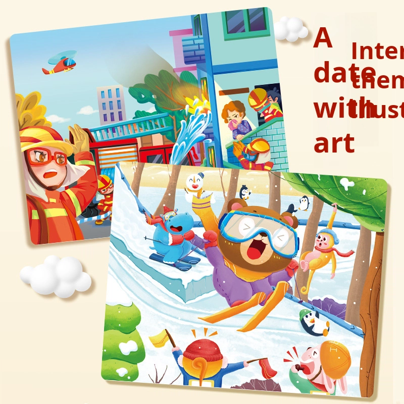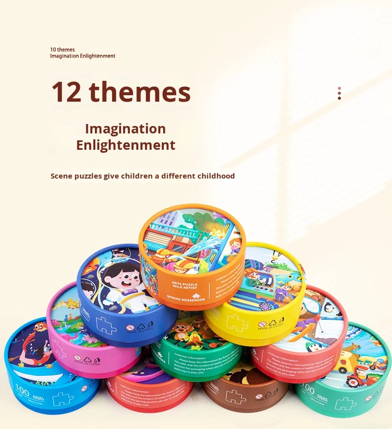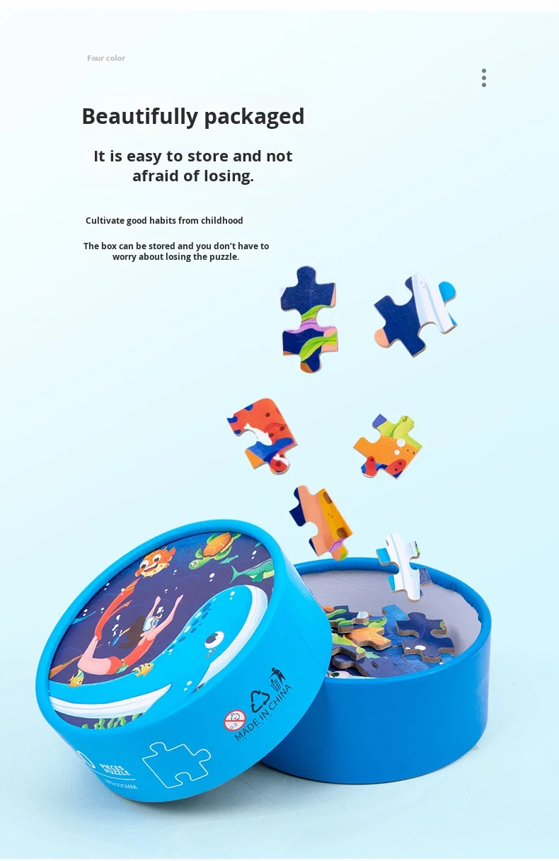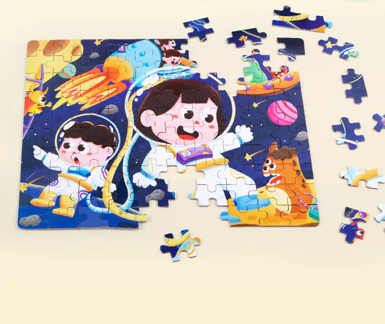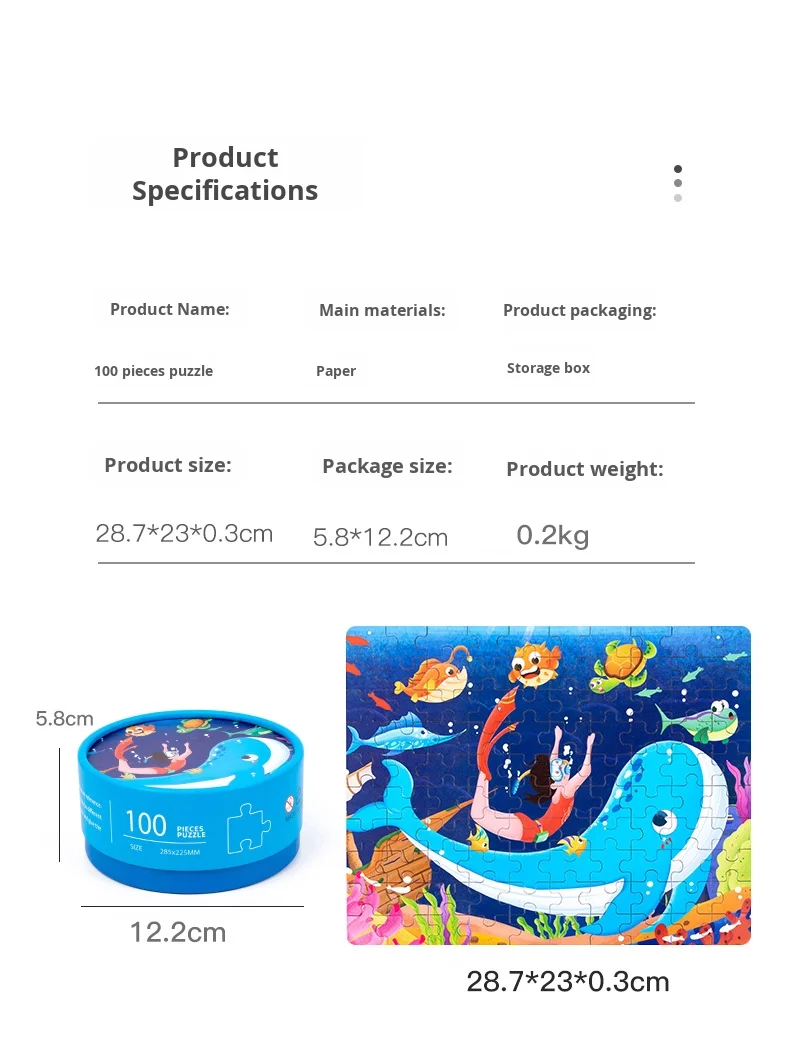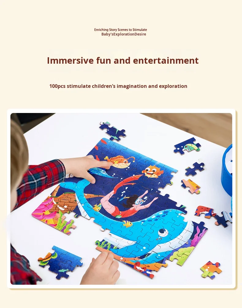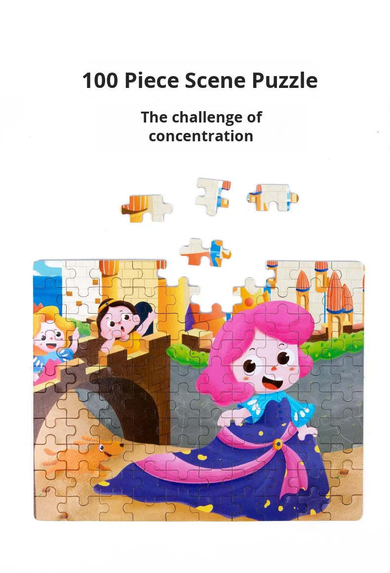 100-Piece Wooden Animal Flat Puzzle Dinosaur Cartoon Early Education Toy Box Gift for Kids’ Kindergarten