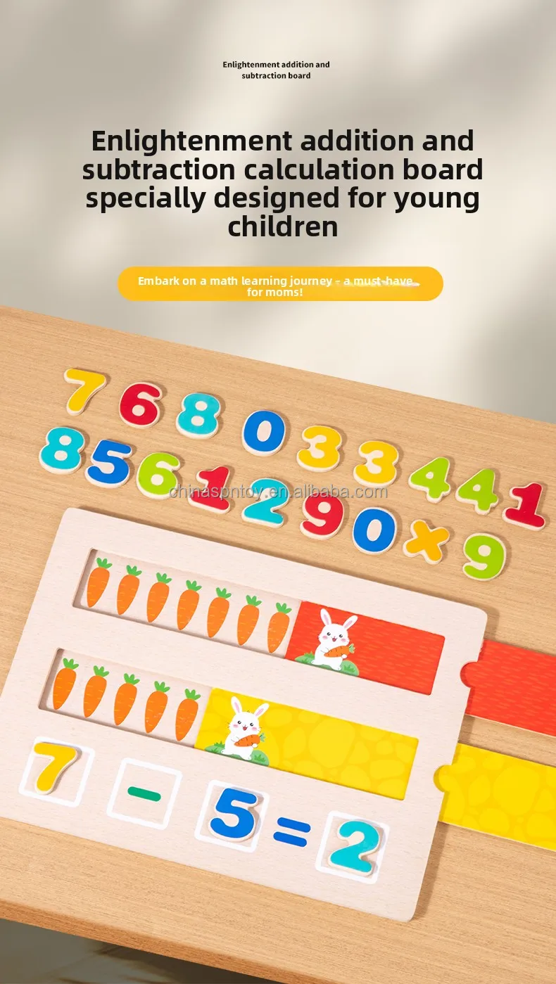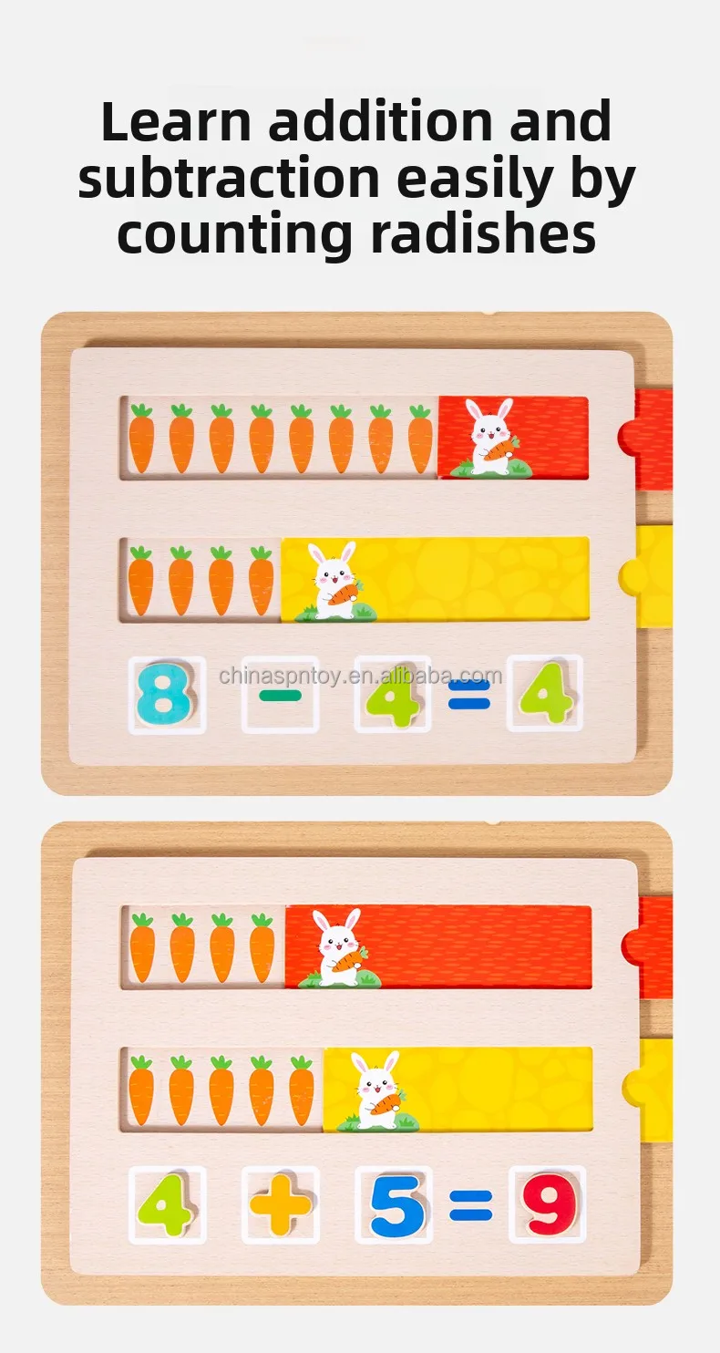 2025 Educational Sensory Wooden Board Toy for Kids Toddler’s Math Learning-Radish Addition & Subtraction