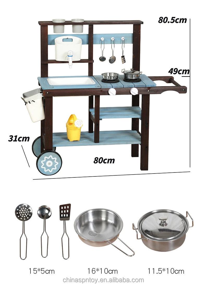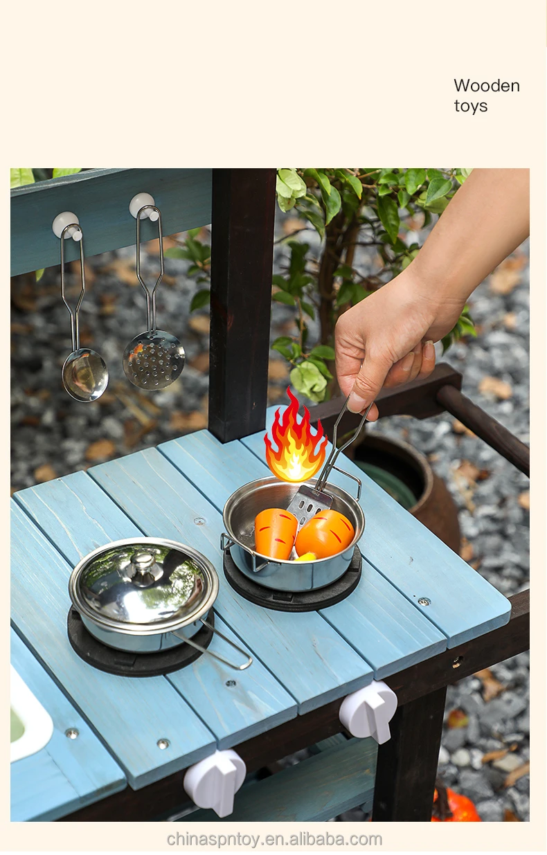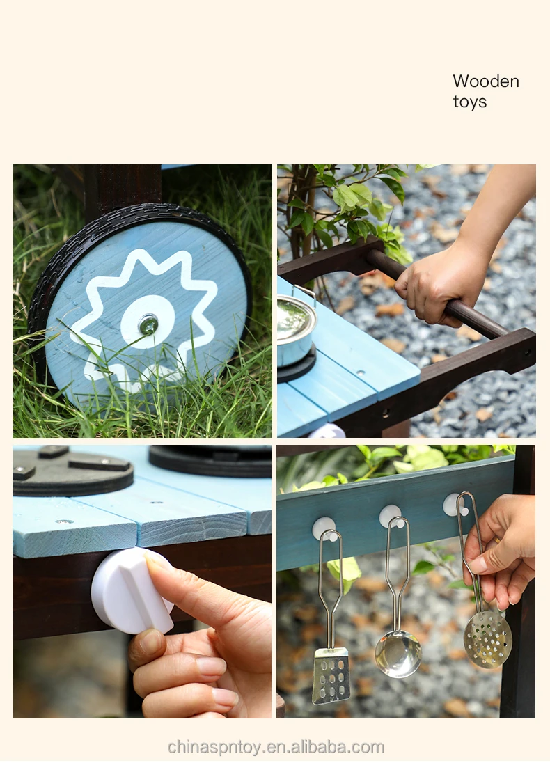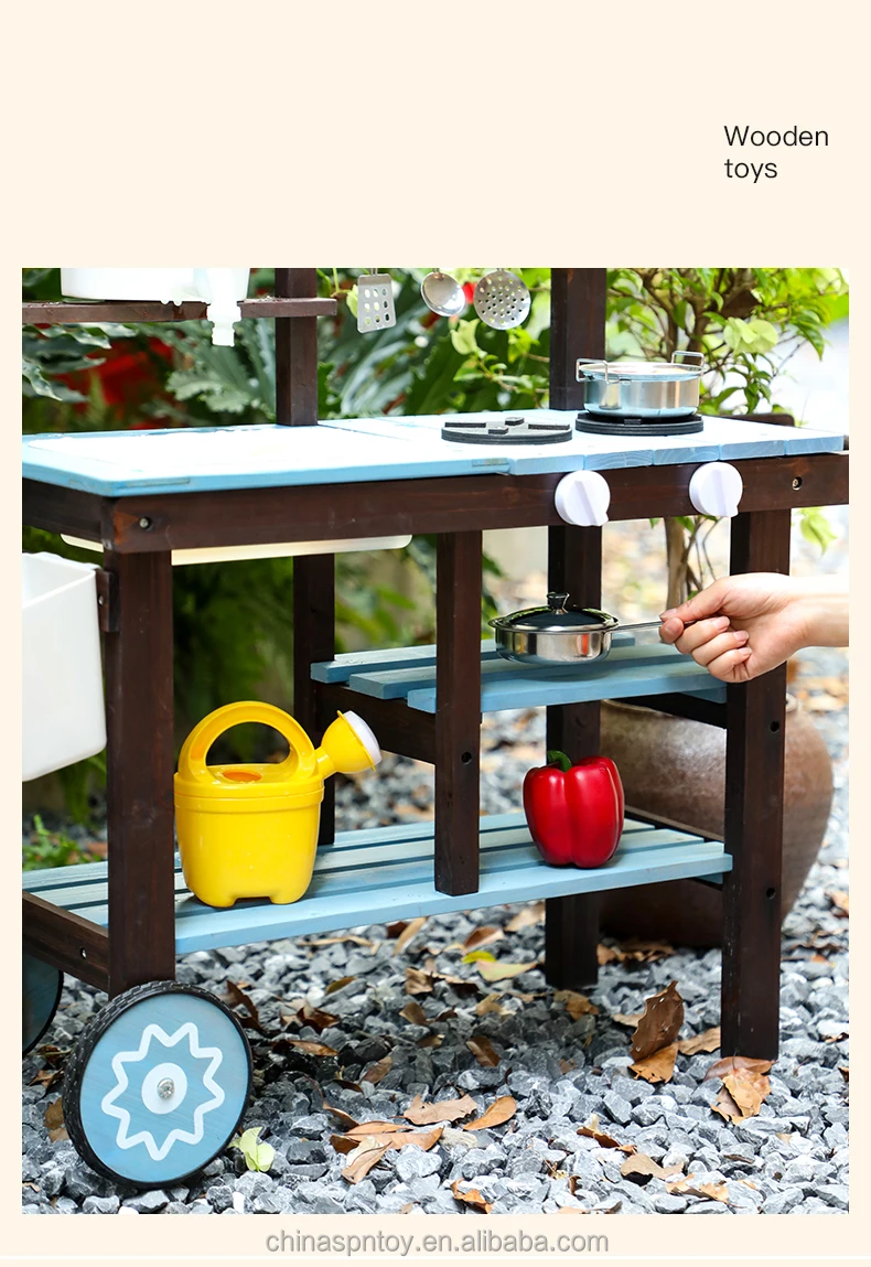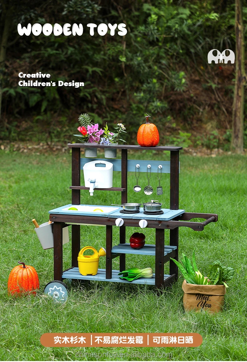 2025 New MarsMarie Children’s Educational Outdoor Kitchen Food Cart Playground Wooden Pretend Play Set Toddlers