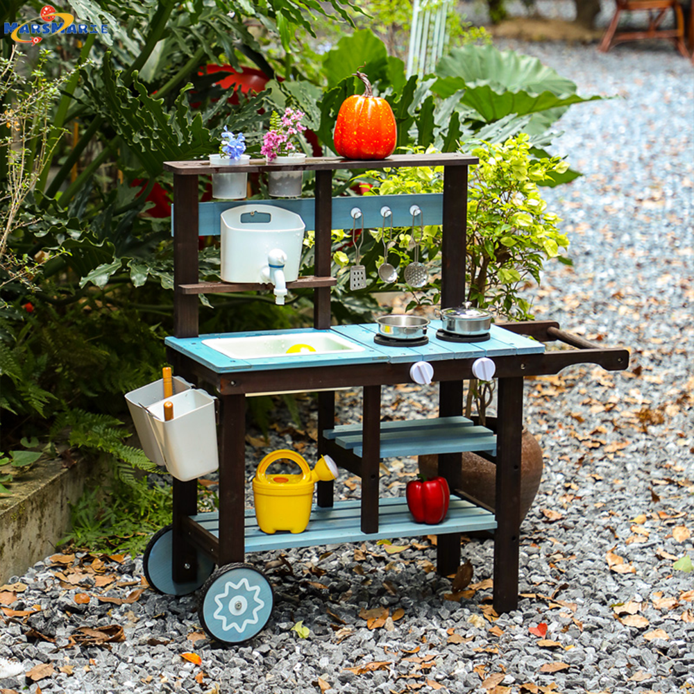 2025 New MarsMarie Children’s Educational Outdoor Kitchen Food Cart Playground Wooden Pretend Play Set Toddlers
