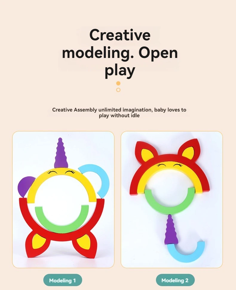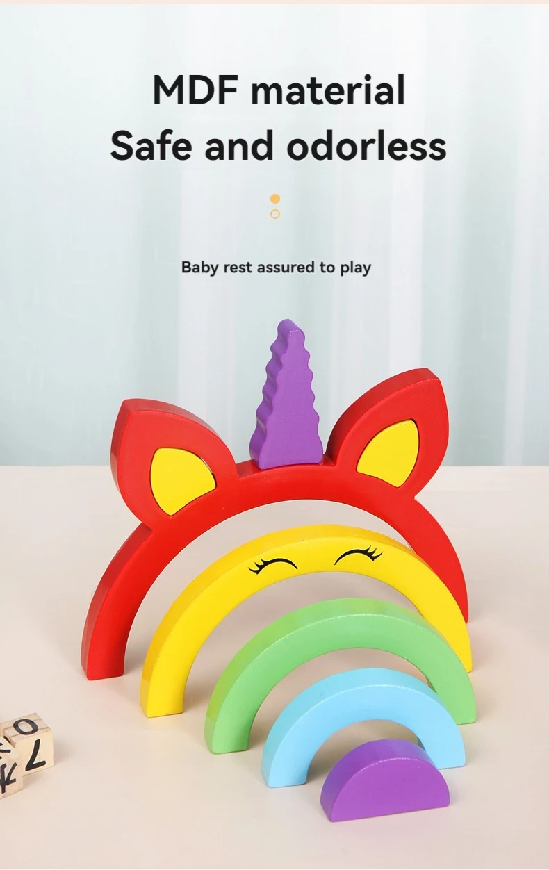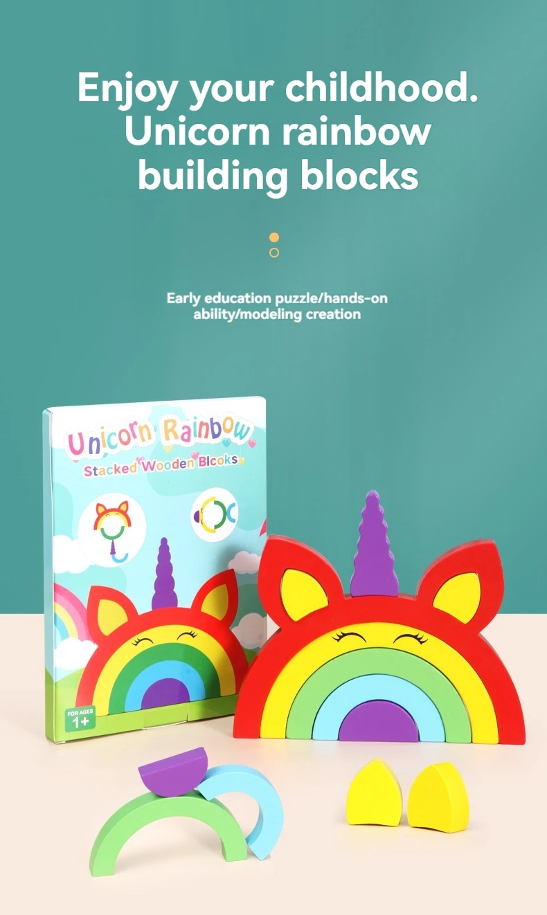 2025 New Wooden Unicorn Rainbow Building Blocks Set Creative Jigsaw Puzzle for Early Education Stacking Toy