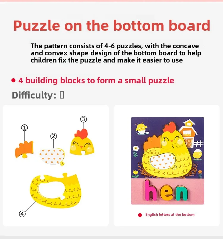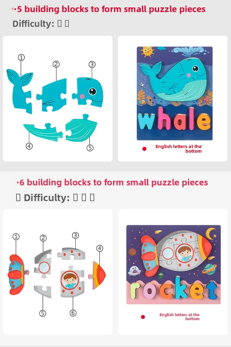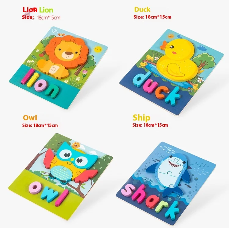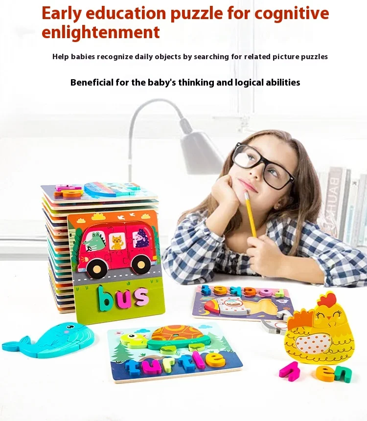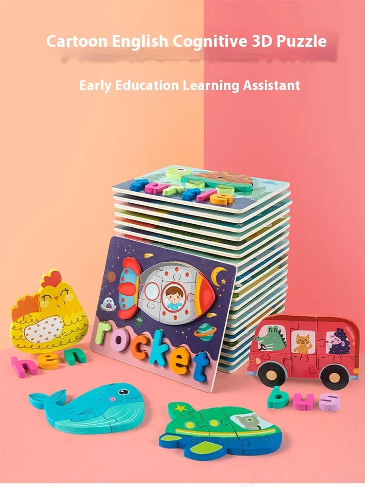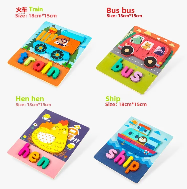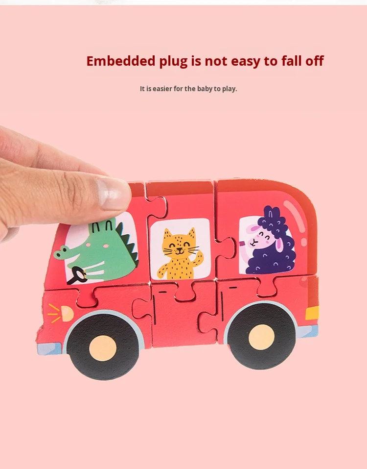 3D Animal Traffic Building Blocks Wood 3D Matching Snap Puzzle Board CE/CPC Certified Early Childhood Education Cognitive