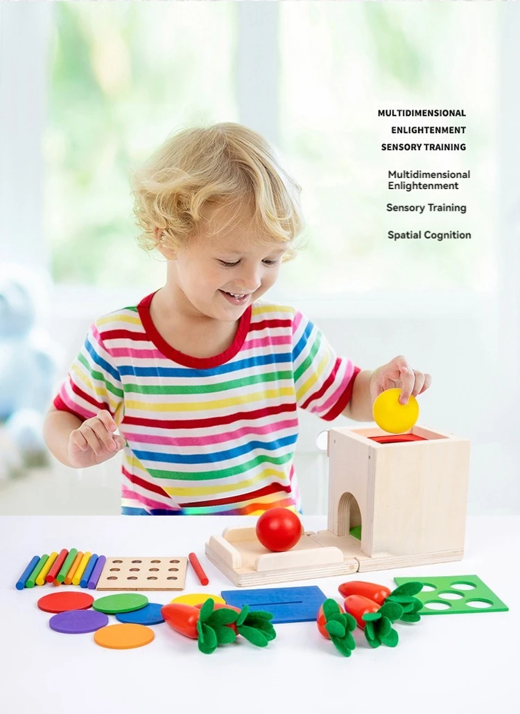 4-in-1 Wooden Montessori Busy Board Toy 1-3 Years Creative Educational Building Blocks for Children’s Play Learning Match Gift