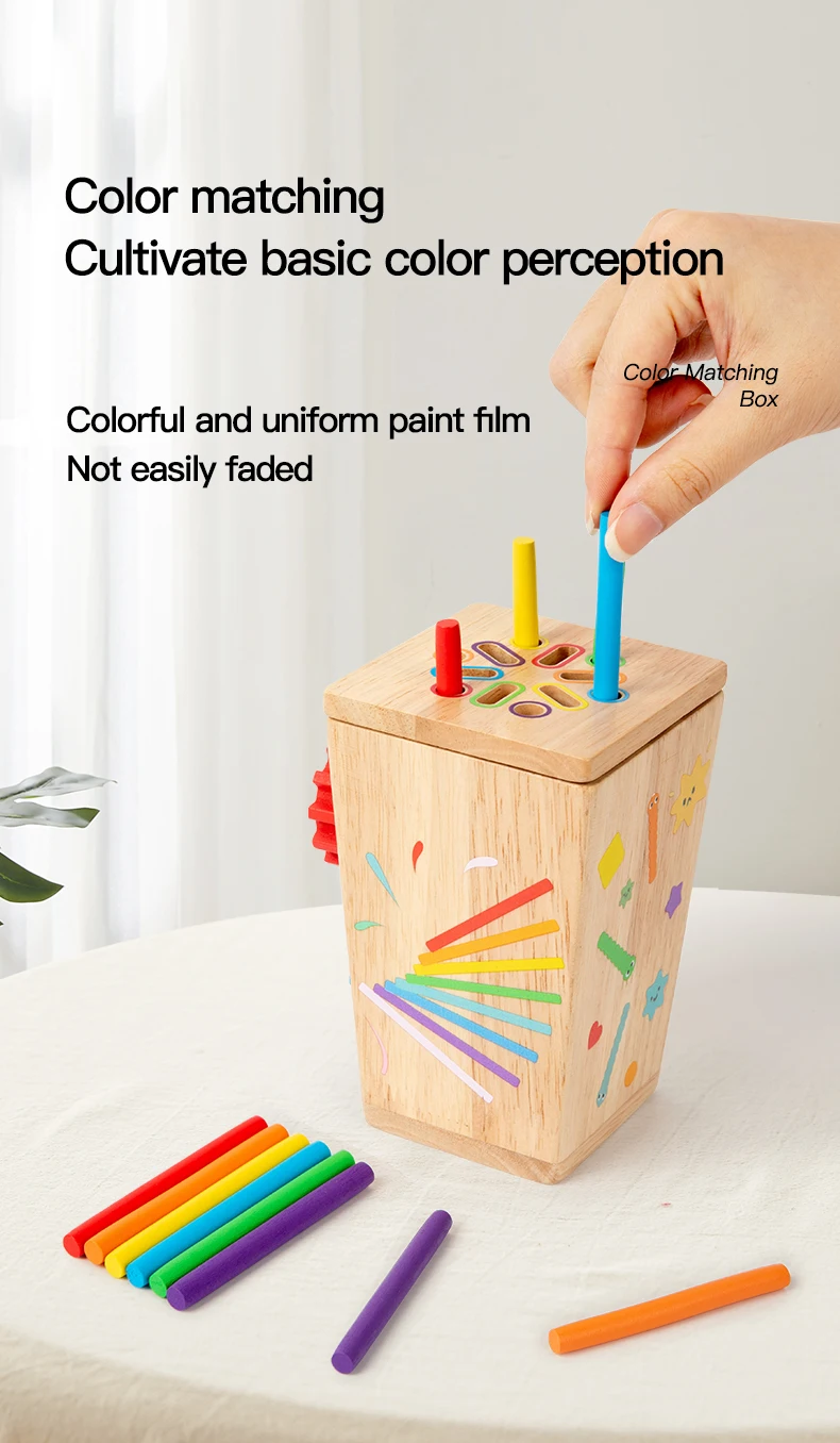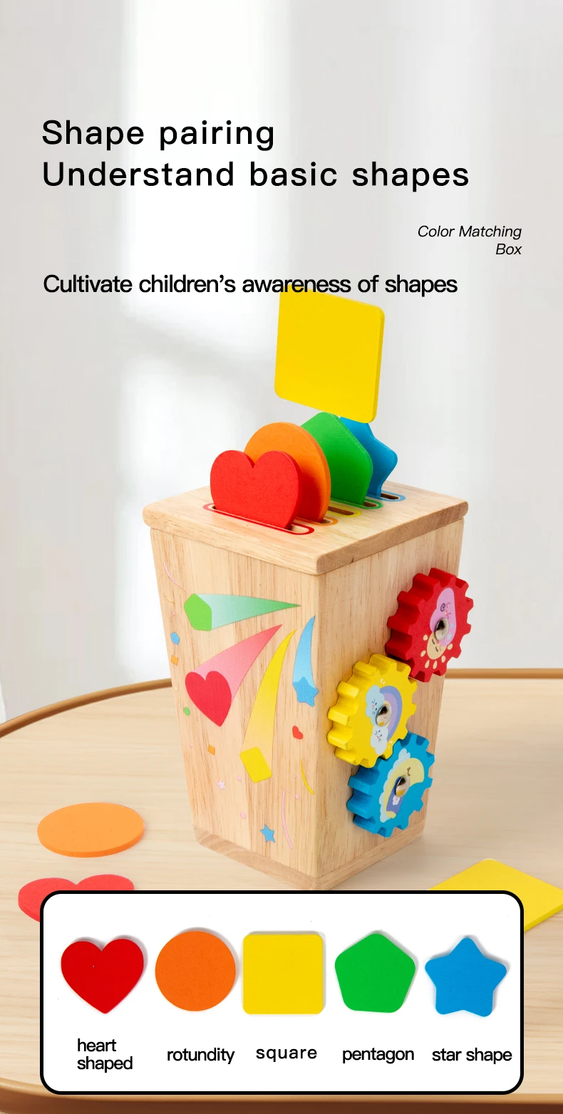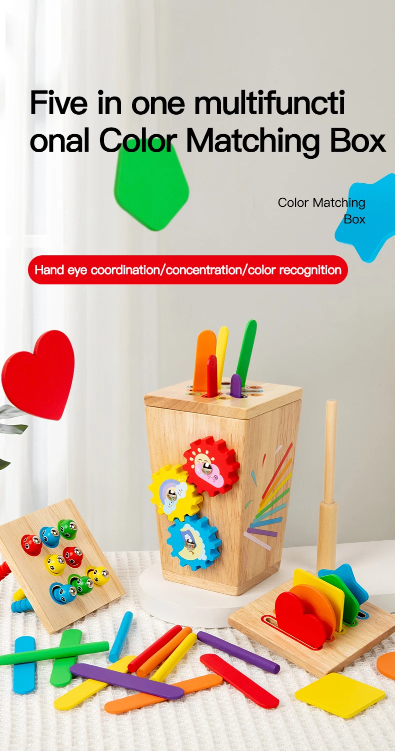 5 in 1 Wooden Color Sorting Toy Early Educational Toy Kids Develop Concentration Colour Shape Pairing Toy for Sensory Training