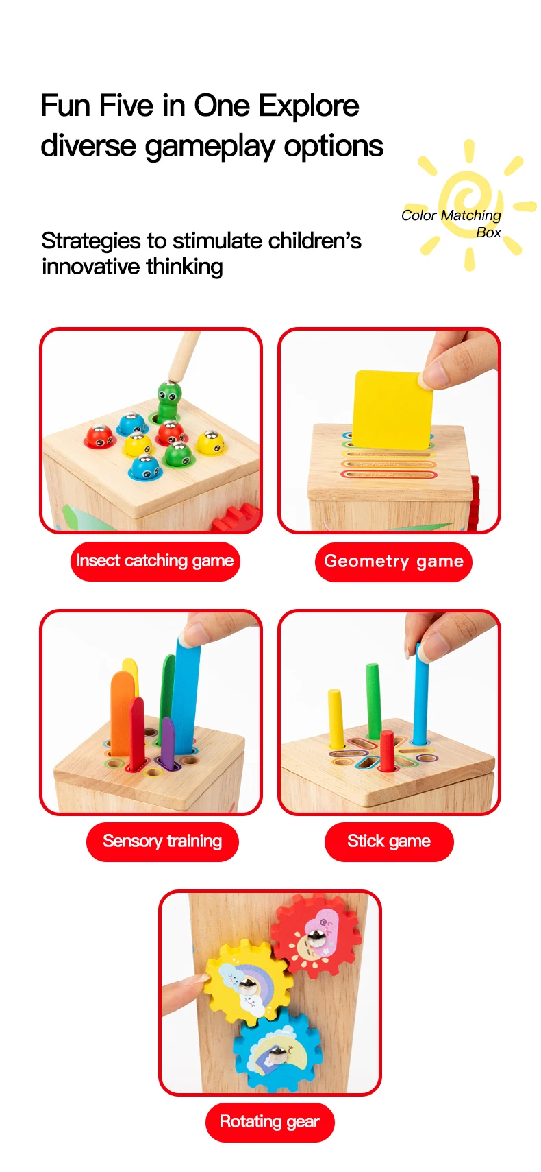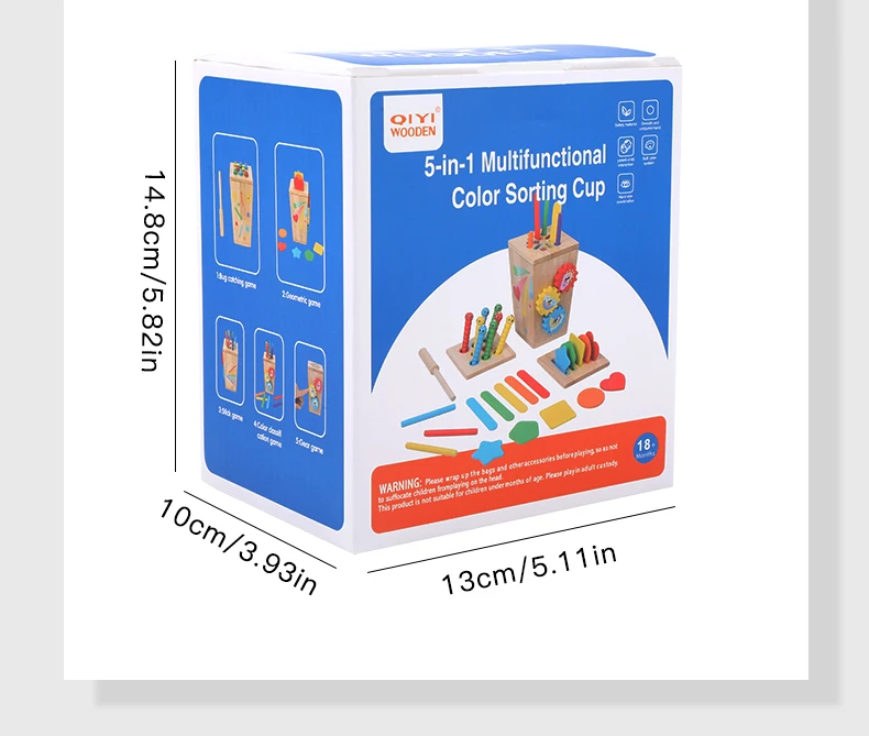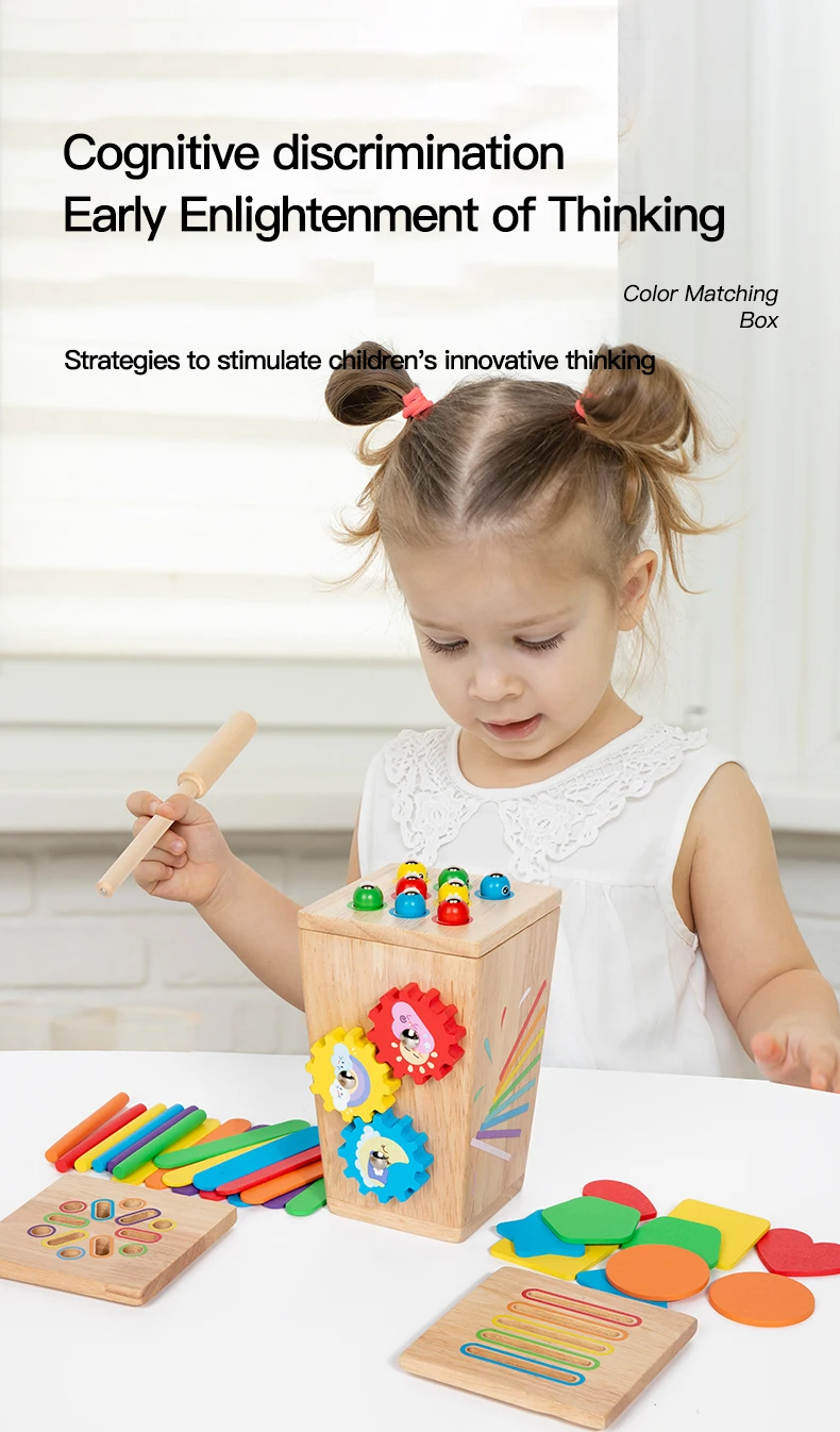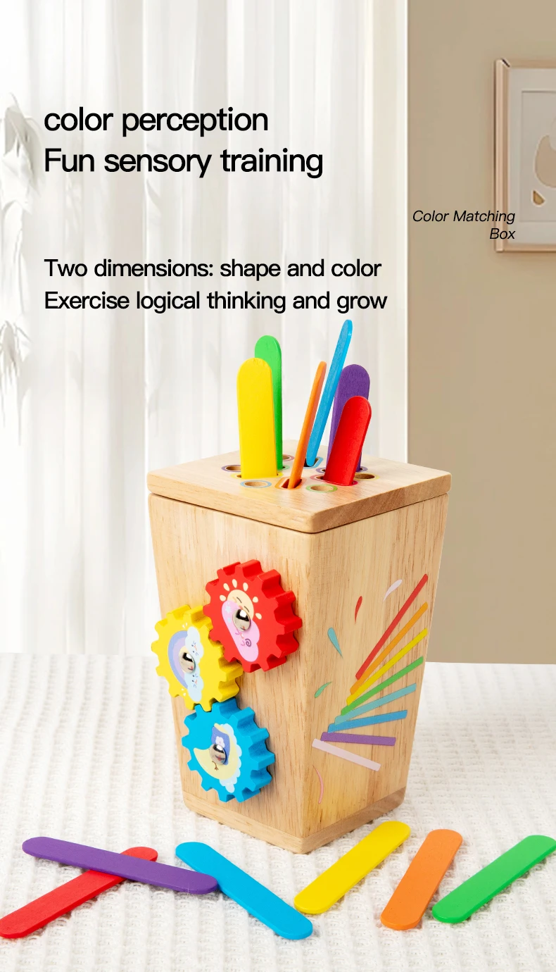 5 in 1 Wooden Color Sorting Toy Early Educational Toy Kids Develop Concentration Colour Shape Pairing Toy for Sensory Training