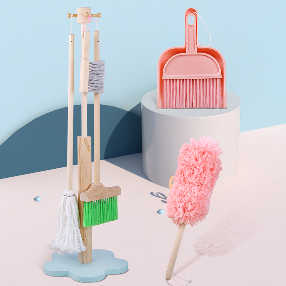 6-Piece Sweeping Cleaning Pretend Play Set for Toddlers Household Cleaning Tools with Artificial Broom Mop for Preschoolers