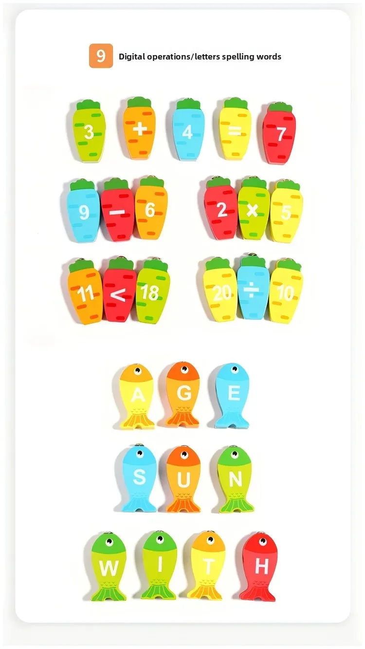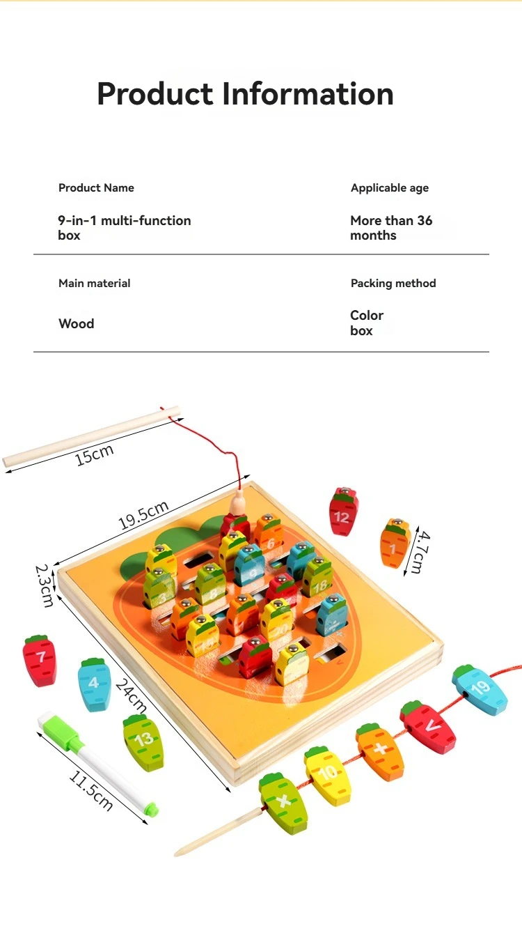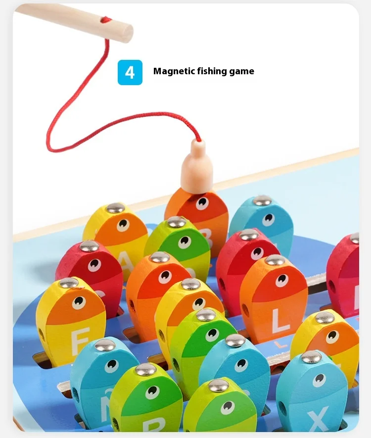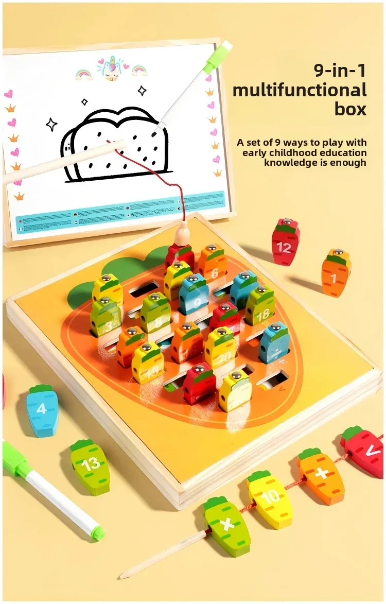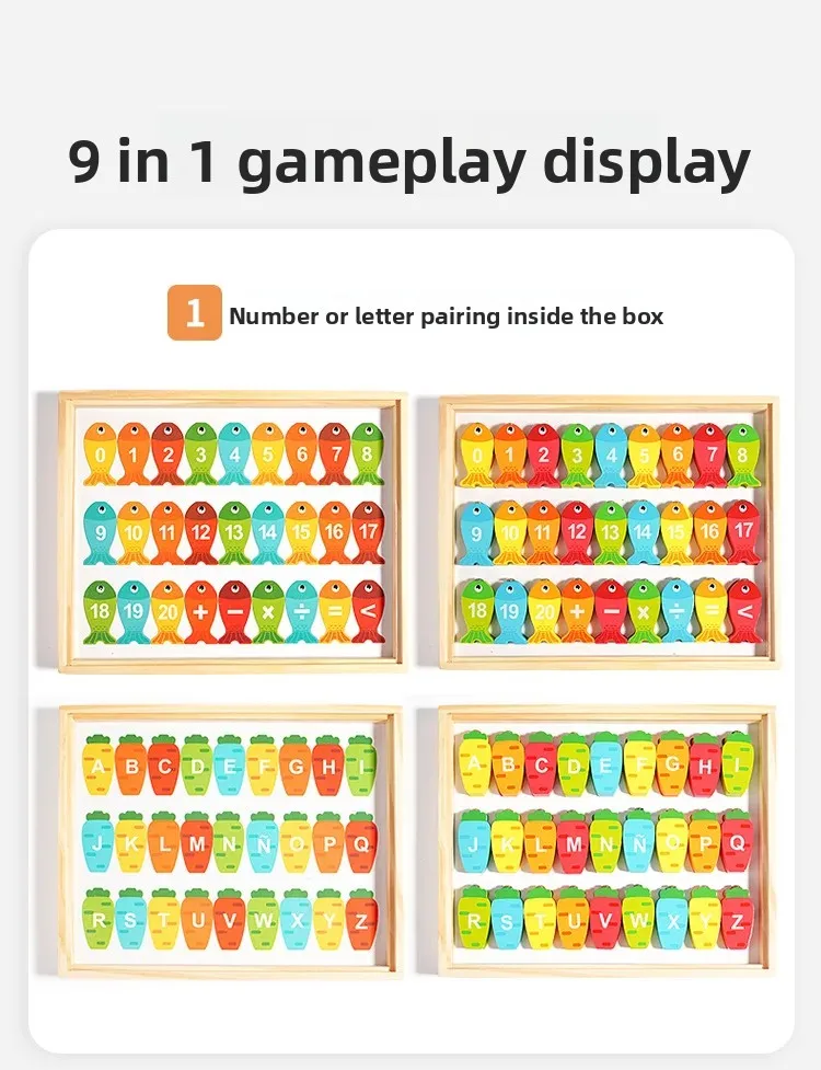 9-in-1 Multi-Functional Double-Sided Wooden Board Toy for Children’s Early Education Fishing Matching Drawing