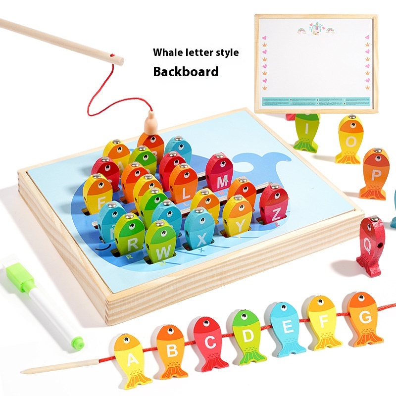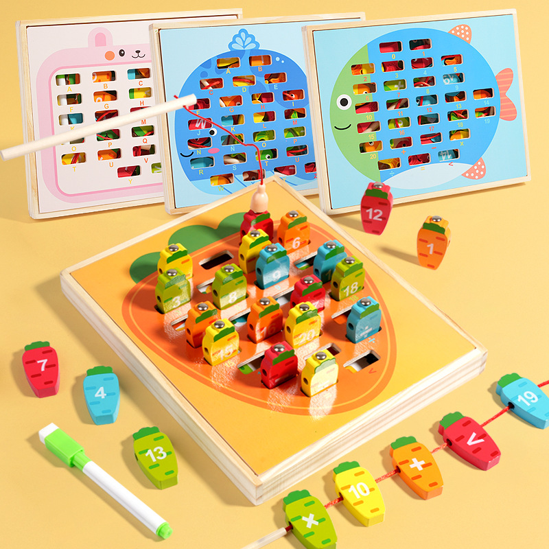 9-in-1 Multi-Functional Double-Sided Wooden Board Toy for Children’s Early Education Fishing Matching Drawing
