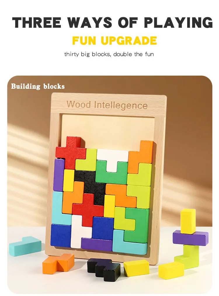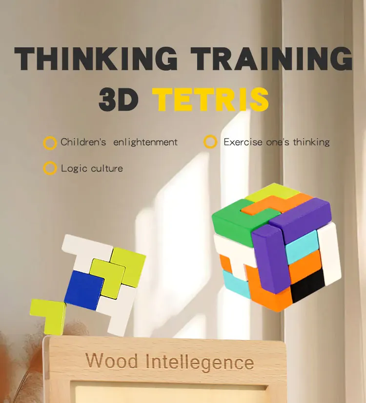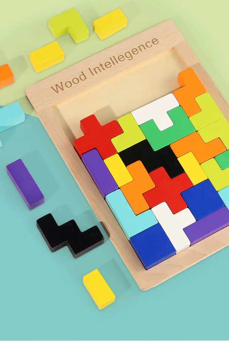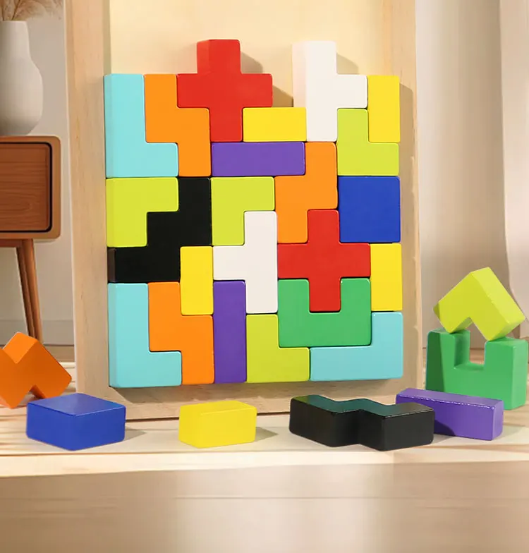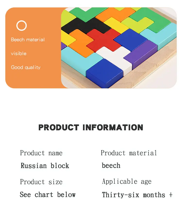 Baby Early Educational Creative Puzzle Wooden Toys Children’s Educational 3D Beech Wood Russian Block Puzzle Block Toys