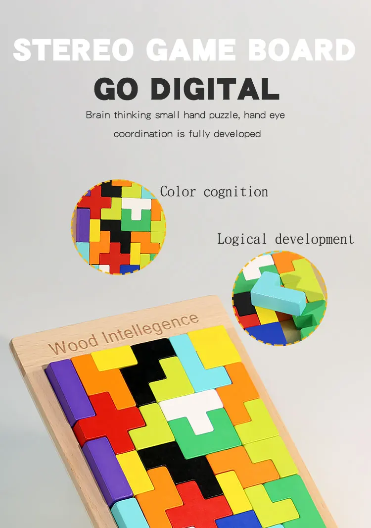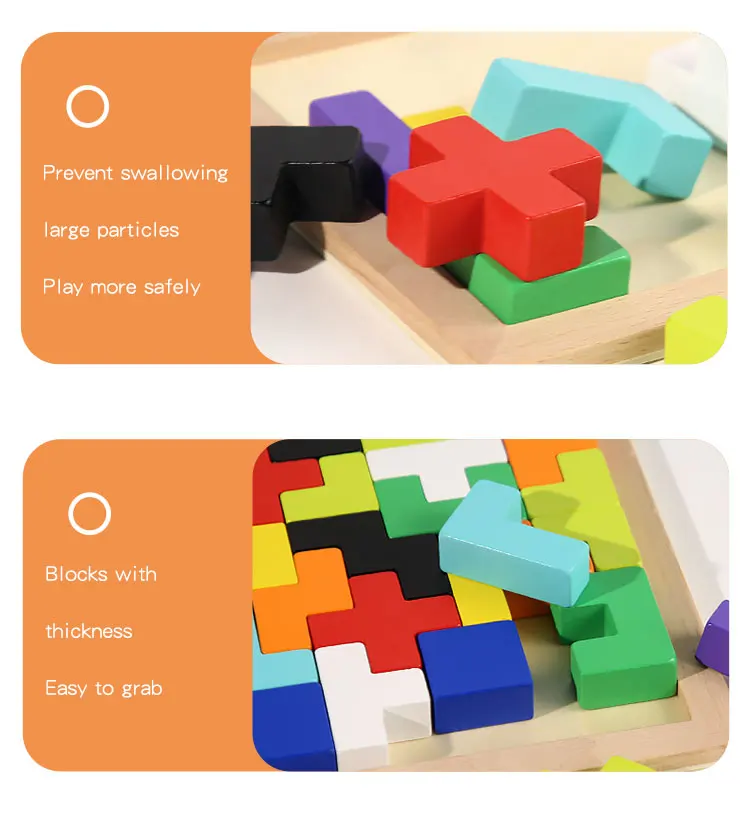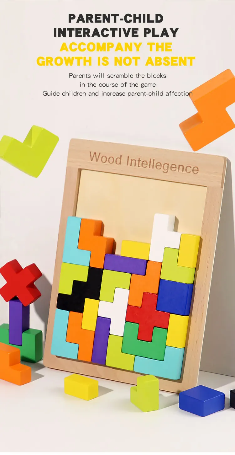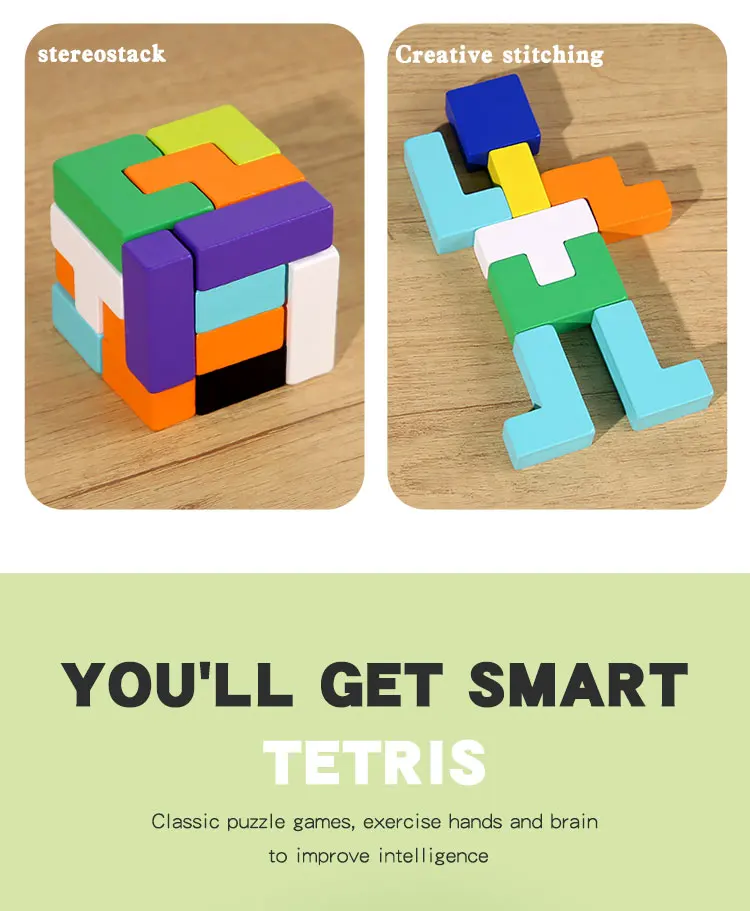 Baby Early Educational Creative Puzzle Wooden Toys Children’s Educational 3D Beech Wood Russian Block Puzzle Block Toys