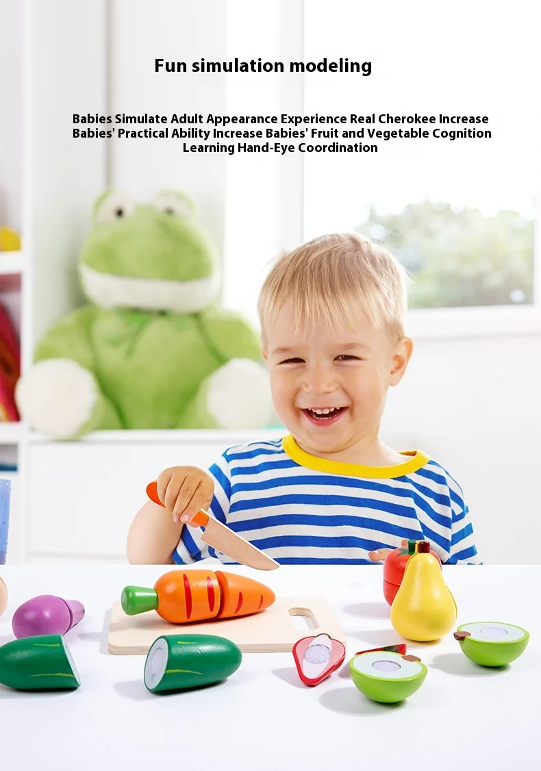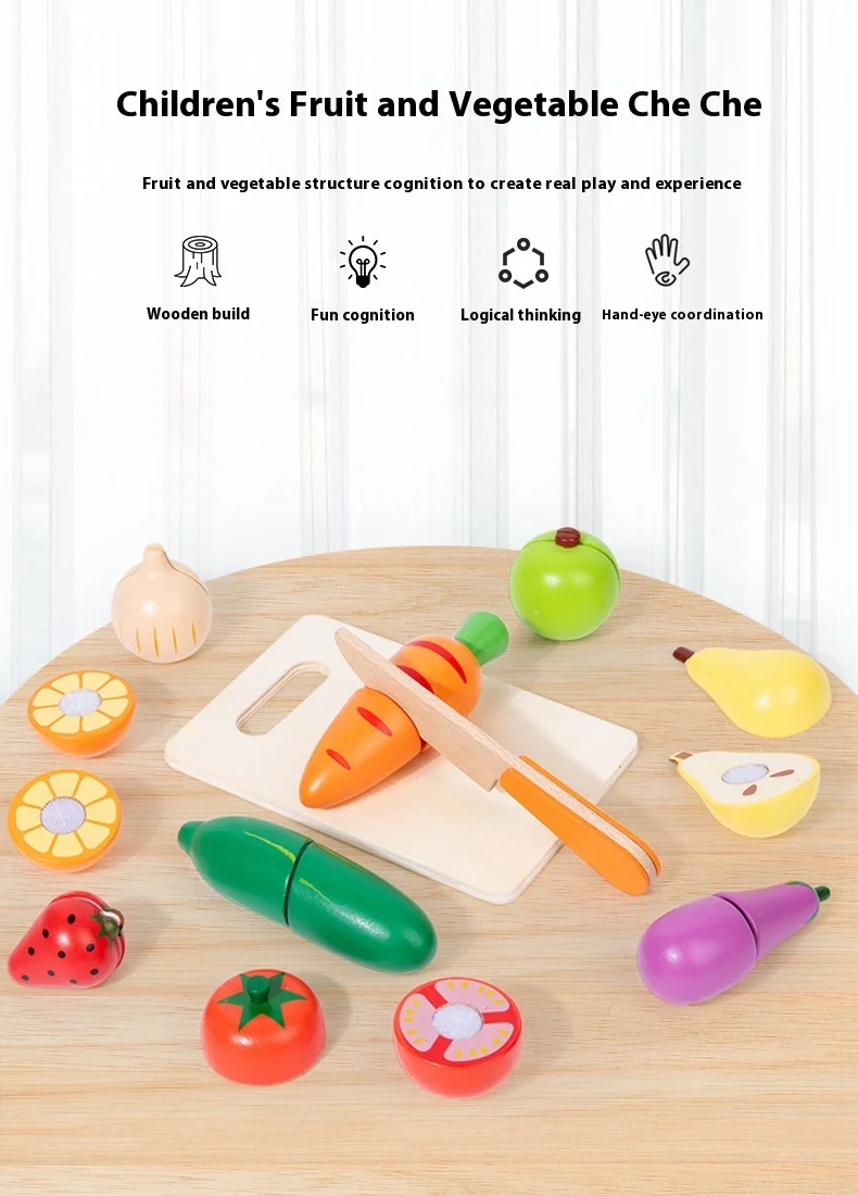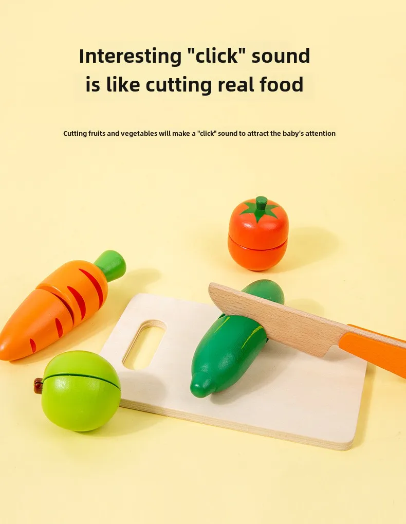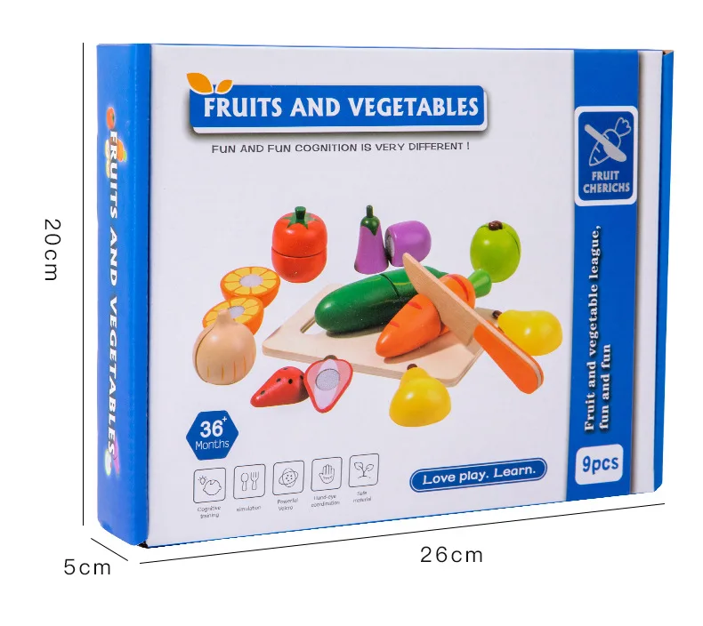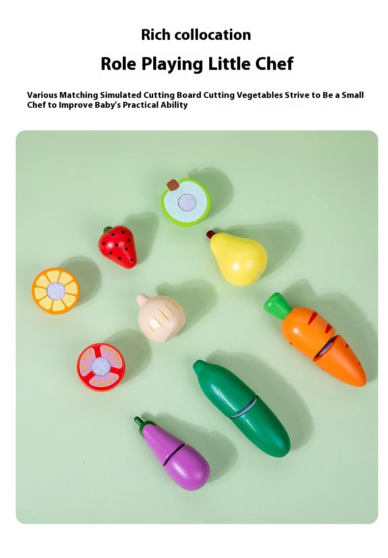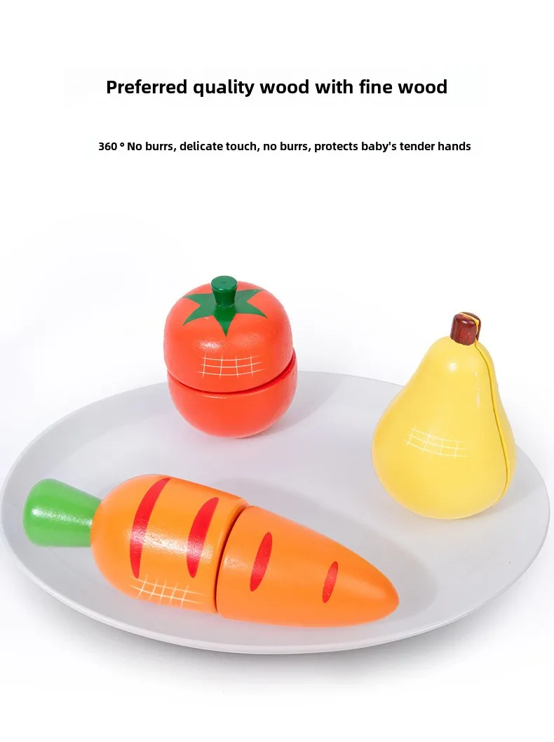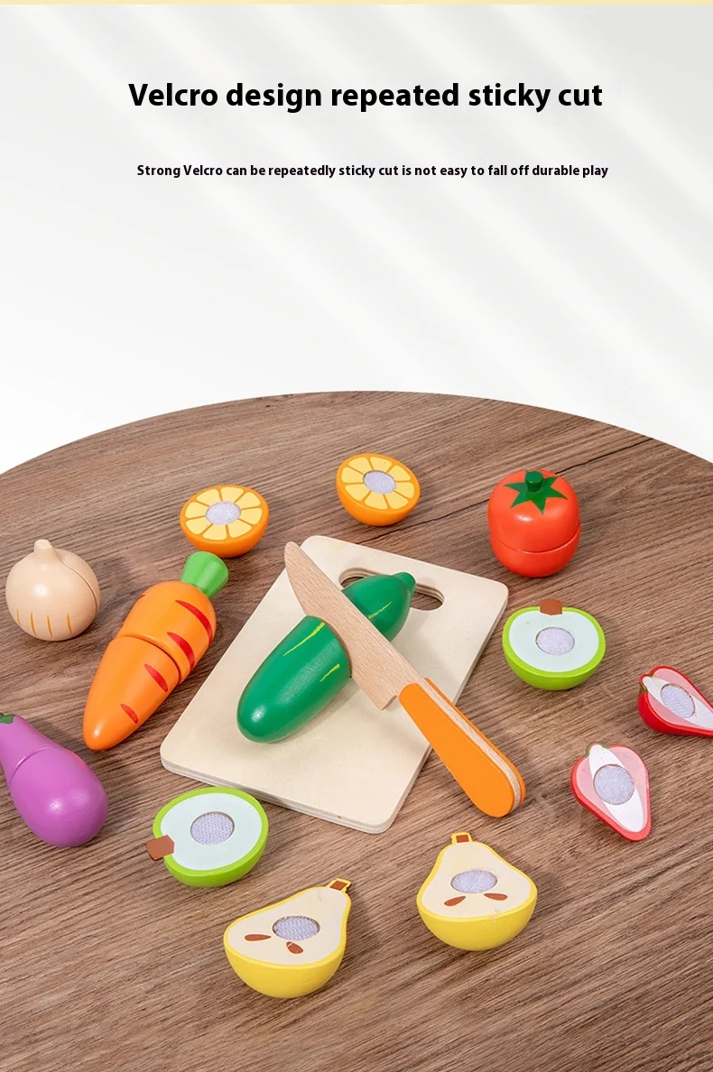 Baby Fun Early Educational Toys Children’s Wooden Pretend Nine Sets of Fruit and Vegetable velcro Cutting Play Home Toys