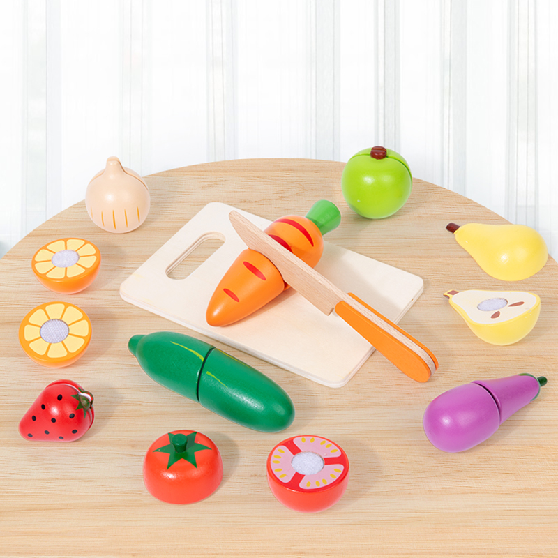 Baby Fun Early Educational Toys Children’s Wooden Pretend Nine Sets of Fruit and Vegetable velcro Cutting Play Home Toys