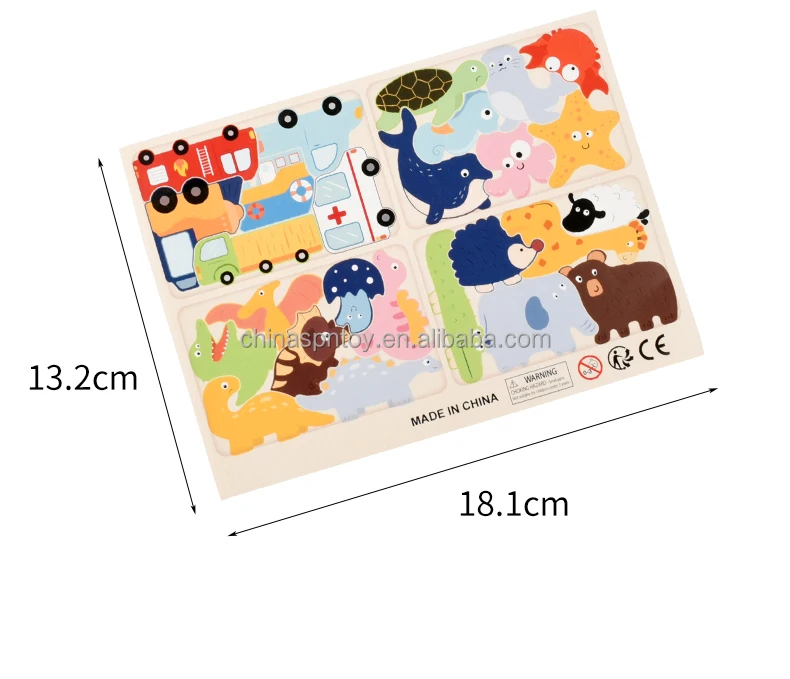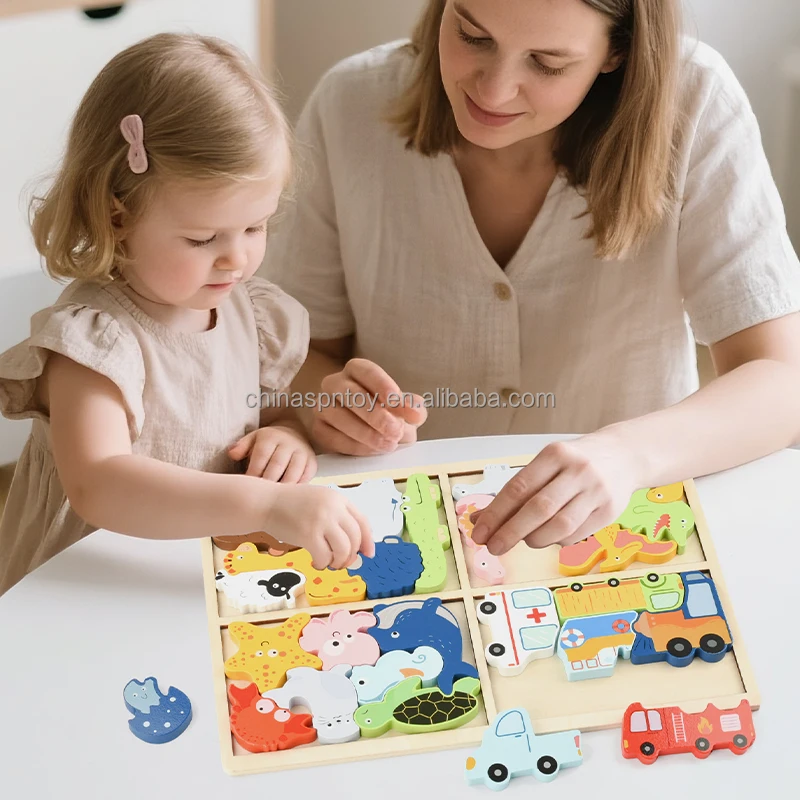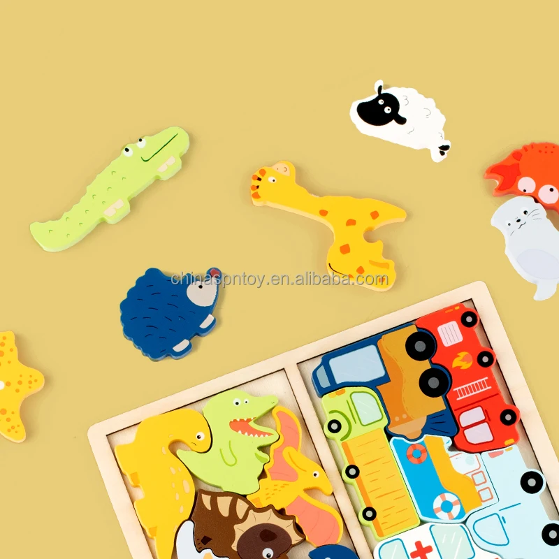 Baby & Kids 3D Wooden Animal Traffic Jigsaw Puzzle with Under 50 Pieces-Educational Cognitive Development Toy