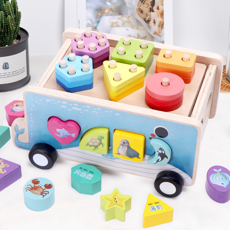 Baby Shape Sorting Montessori Education Preschool Fine Motor Skill Car Wooden Carrot Carton Animal Smart Cart Toy for Children