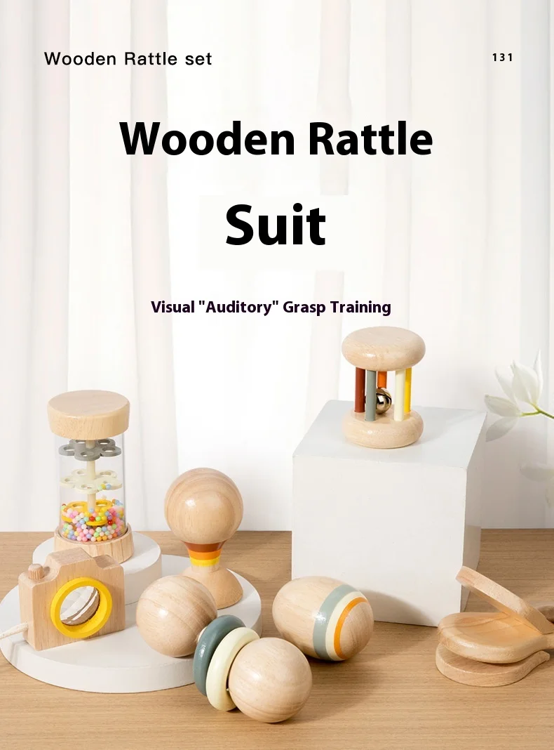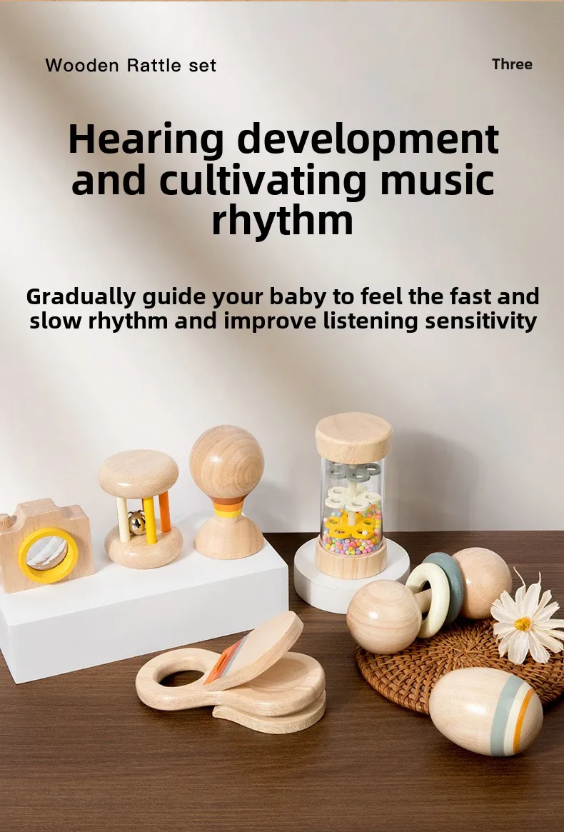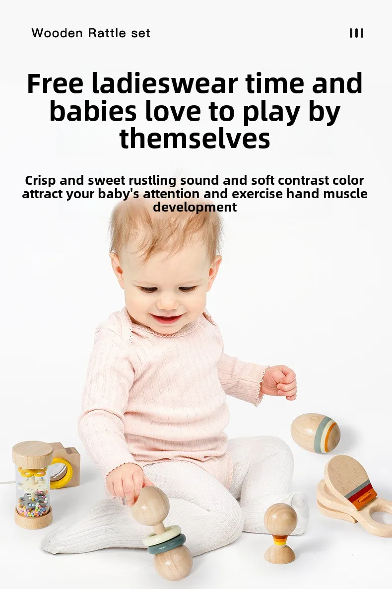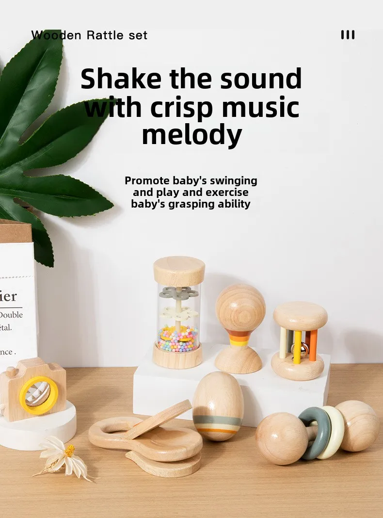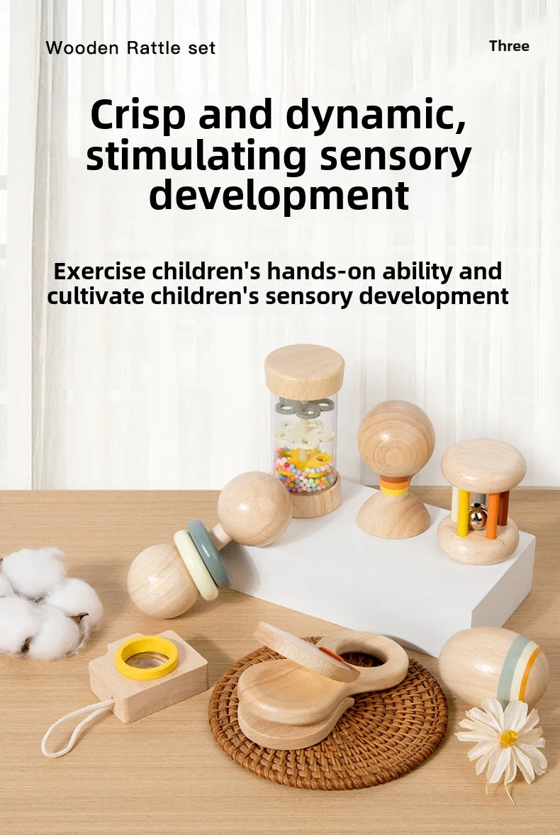 Baby Wooden Teething Rattle Toy Set Wooden Musical Instruments Baby Hand Rattle Kids Early Educational Toys