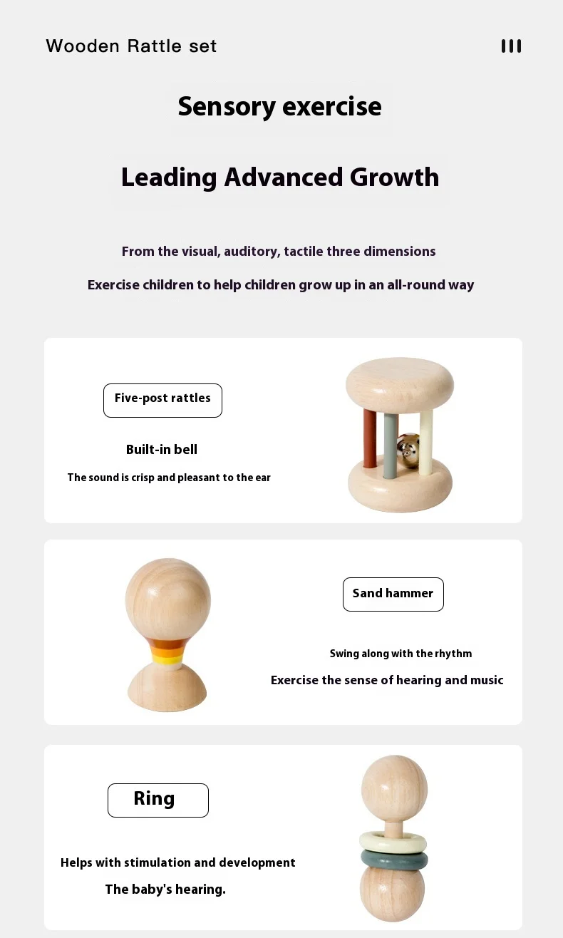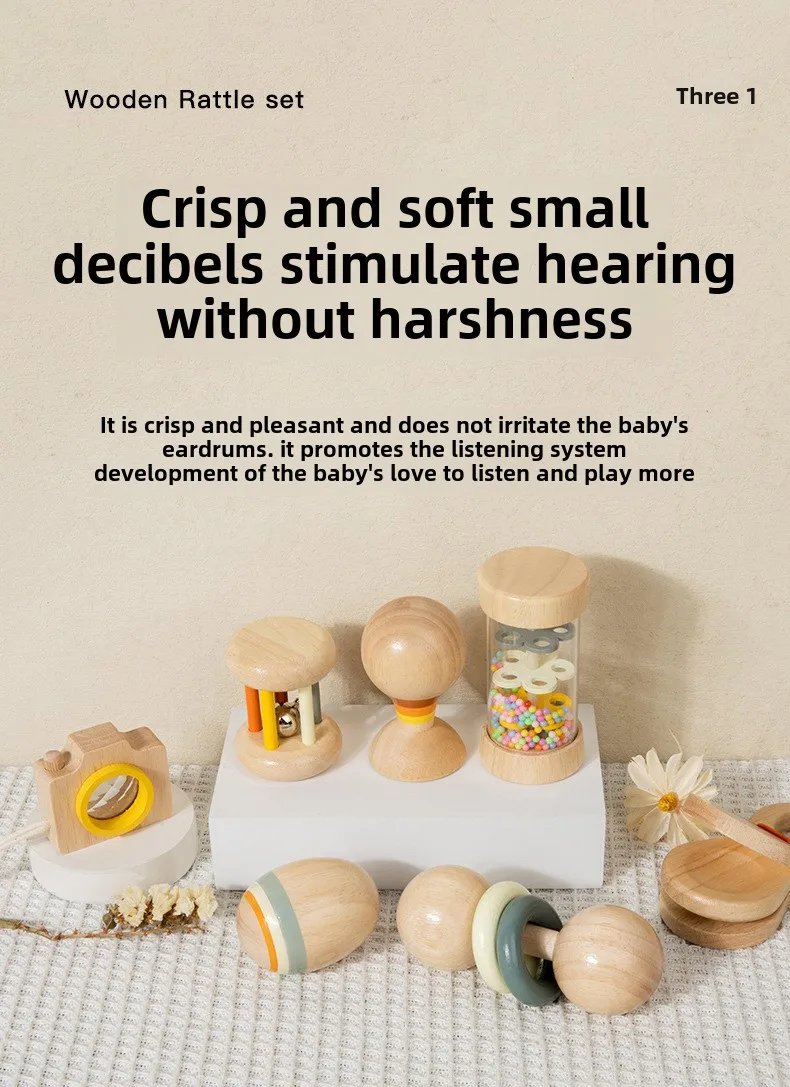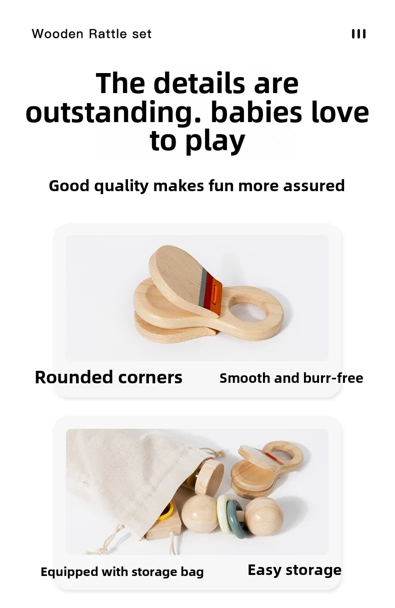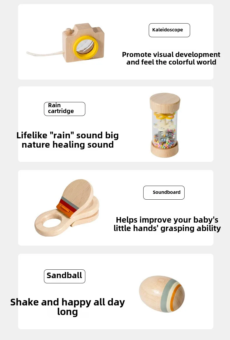 Baby Wooden Teething Rattle Toy Set Wooden Musical Instruments Baby Hand Rattle Kids Early Educational Toys