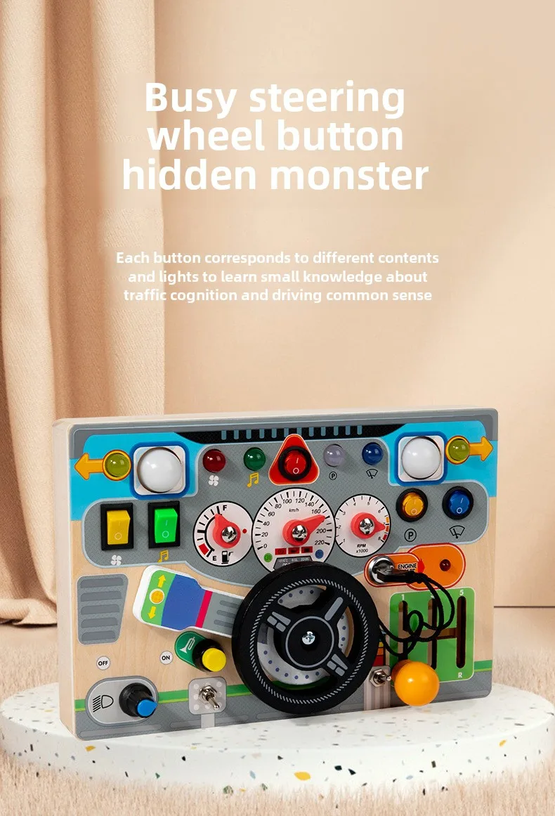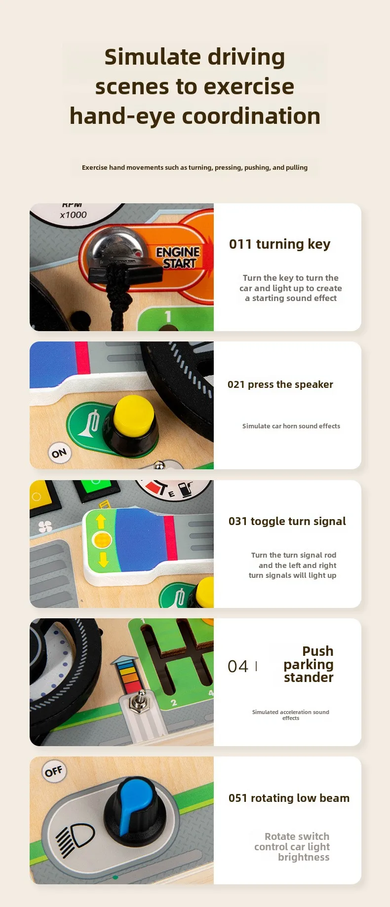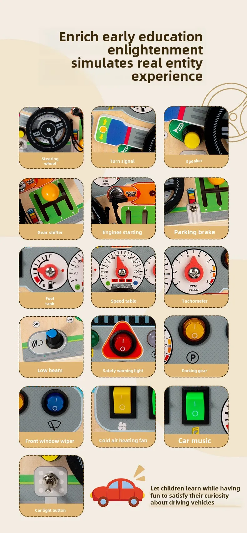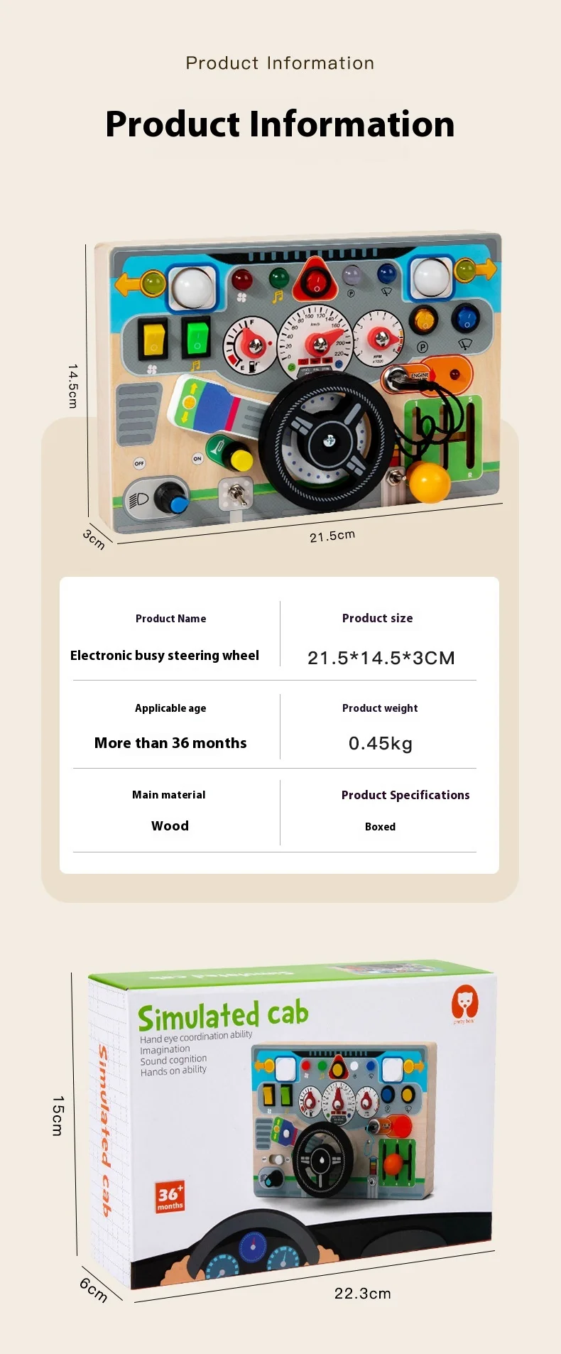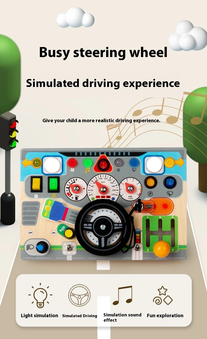 Busy Steering Wheel Simulation Driving Experience Children Early Educational Montessori Driving Fun Wooden Toys