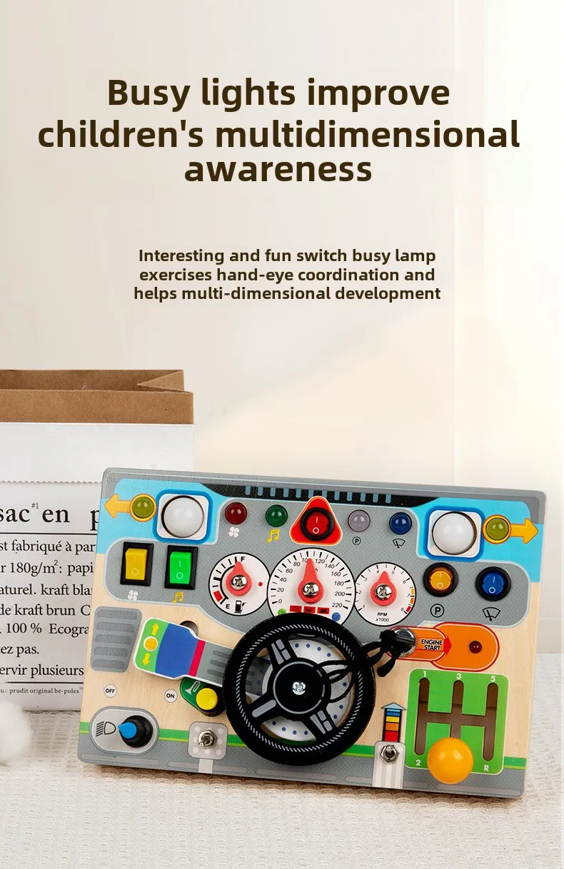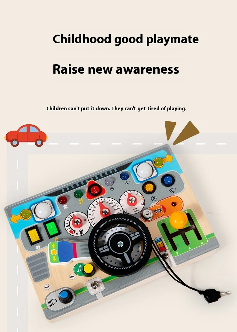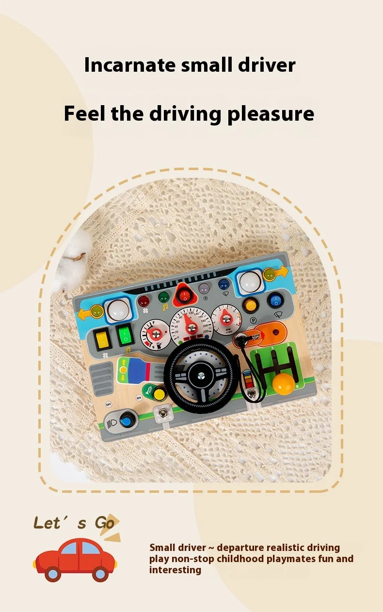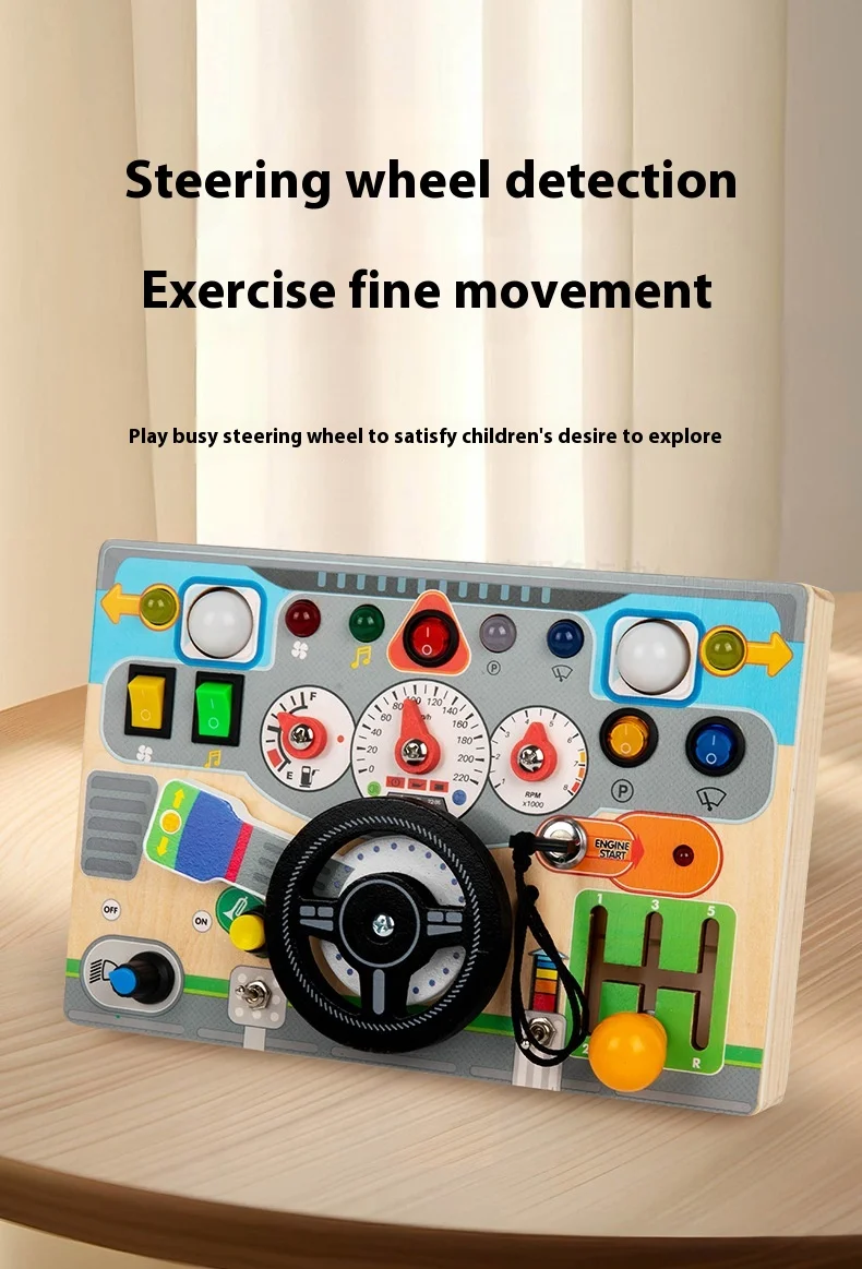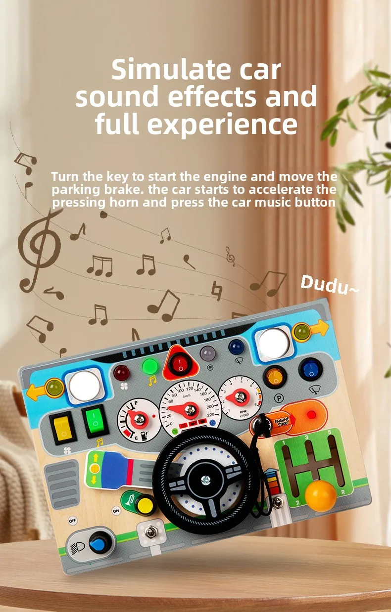Busy Steering Wheel Simulation Driving Experience Children Early Educational Montessori Driving Fun Wooden Toys
