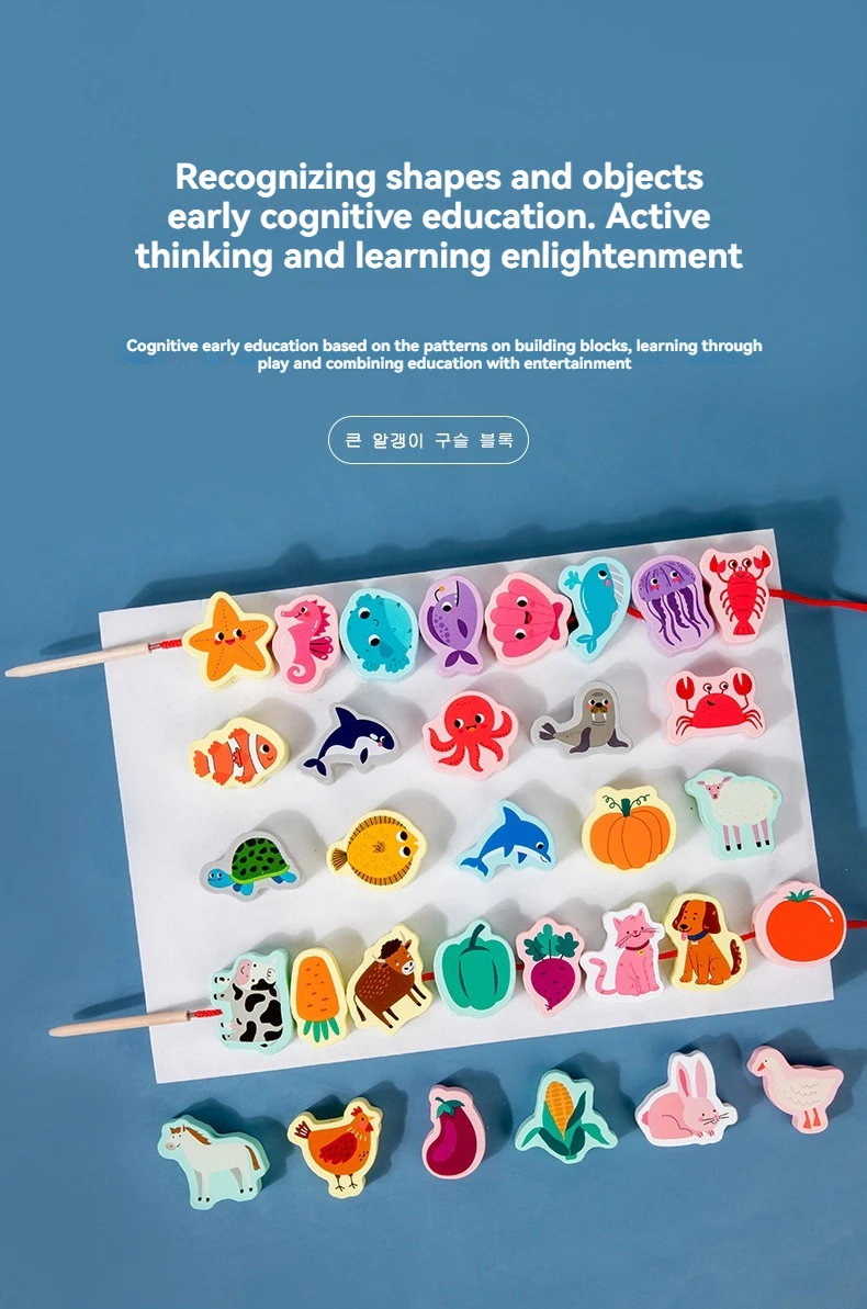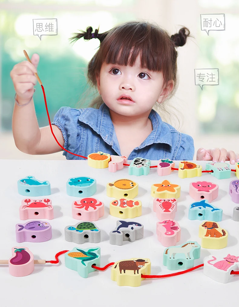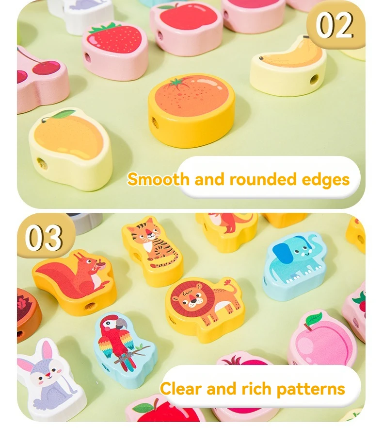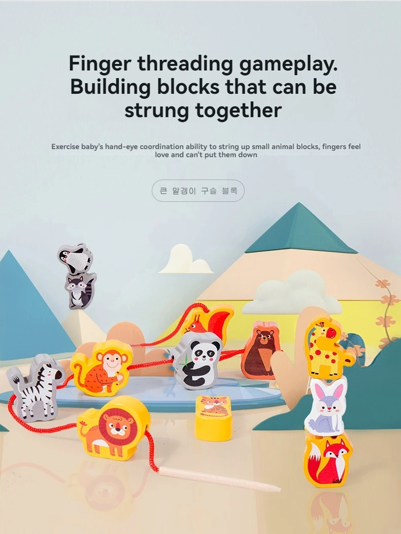 Children’s Animal Cognition Wooden Toy Beaded String Line Hand-eye Coordination Educational Children’s Toy