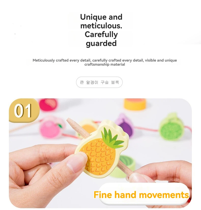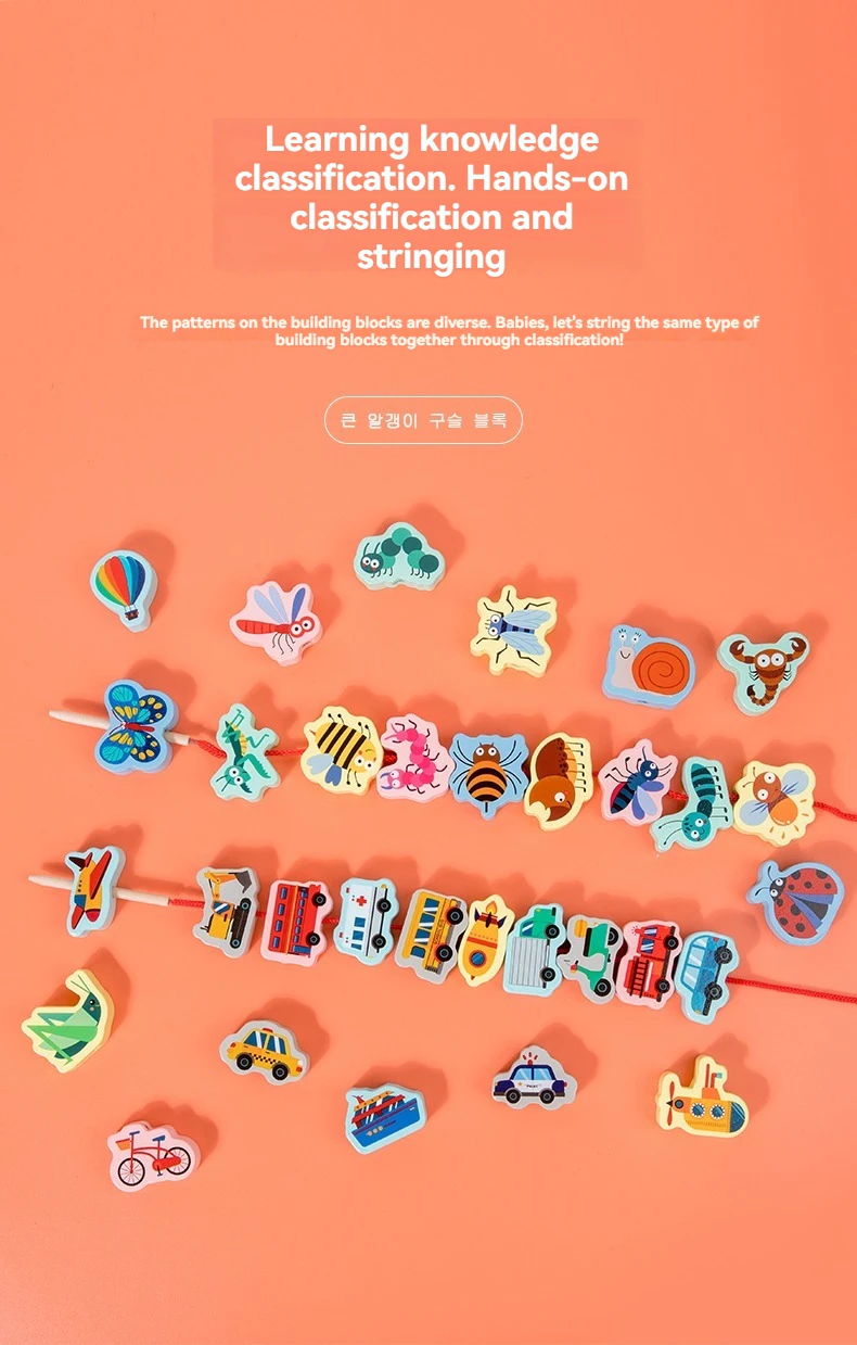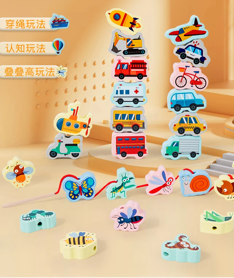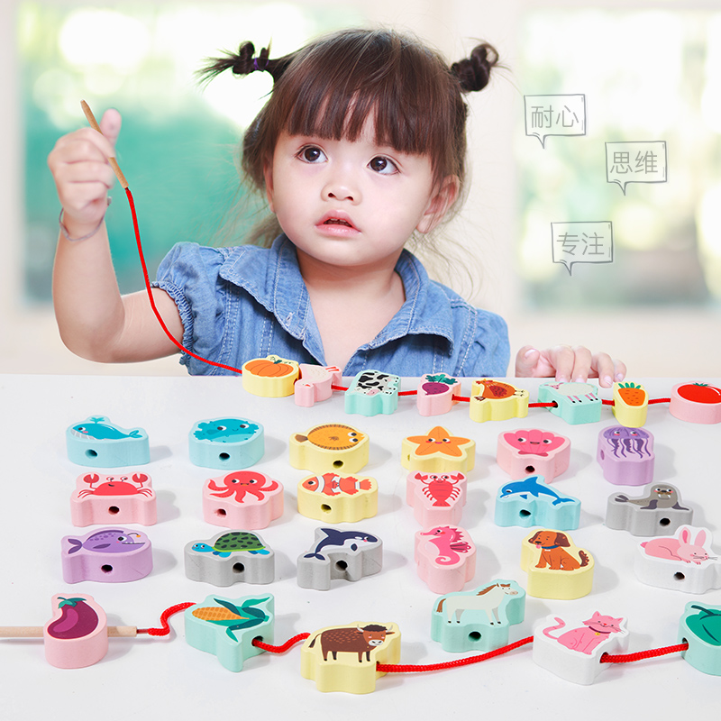 Children’s Animal Cognition Wooden Toy Beaded String Line Hand-eye Coordination Educational Children’s Toy
