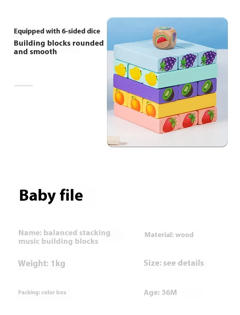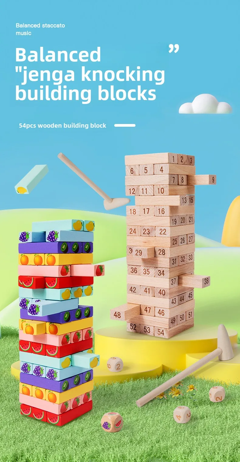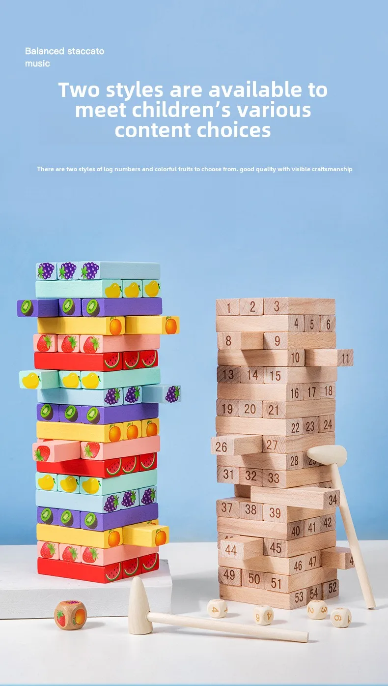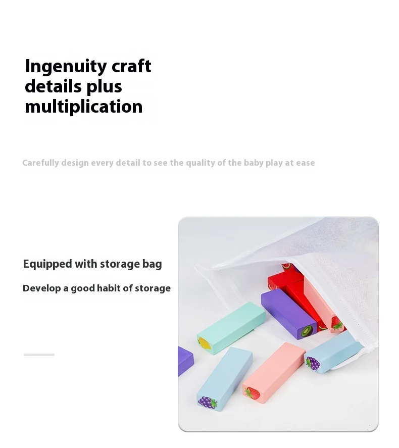 Children’s Building Blocks Puzzle Colorful Fruit Beech Wood Laminated Pull Wooden Blocks Digital Intelligence Wooden Toys
