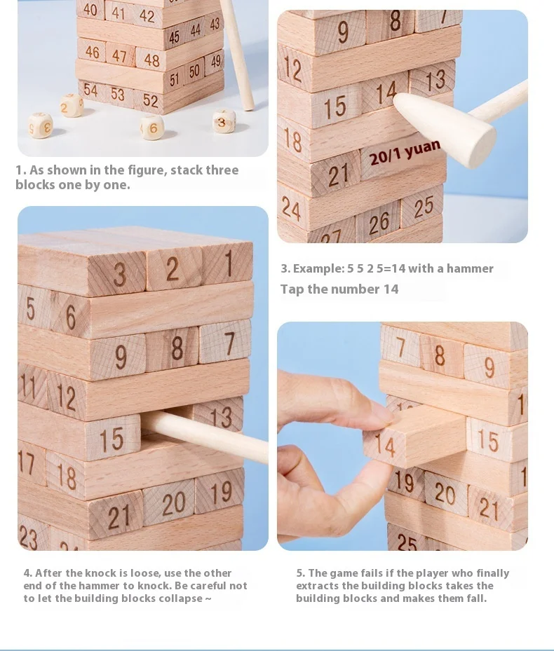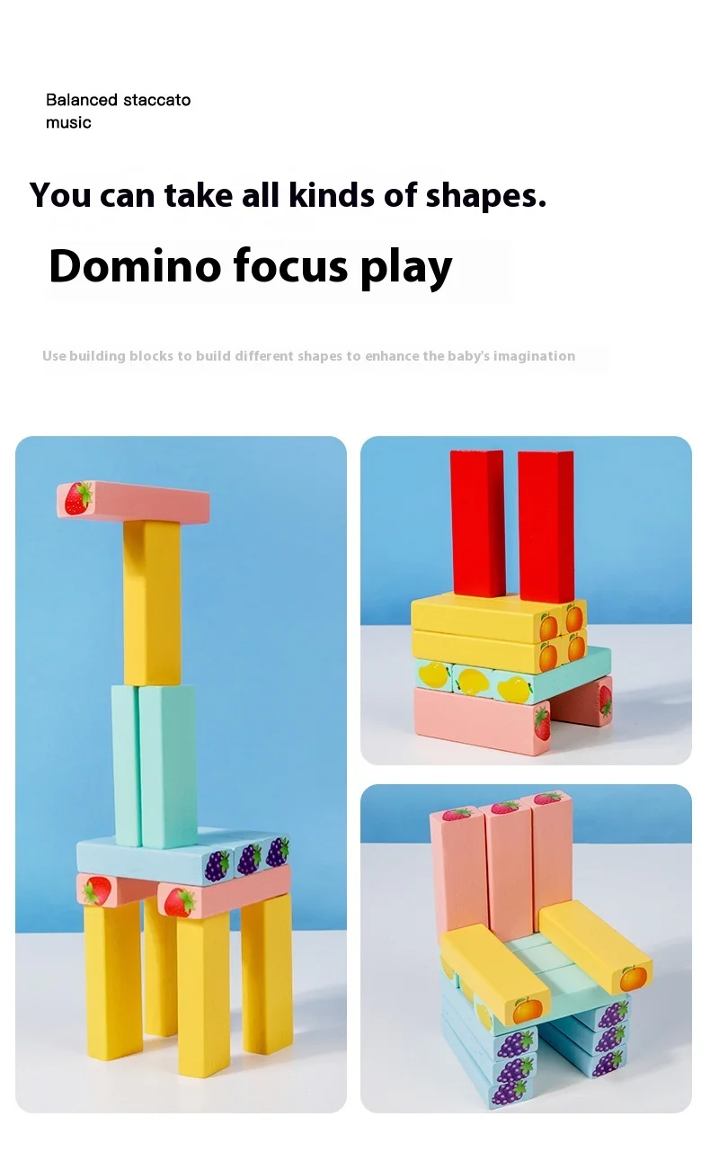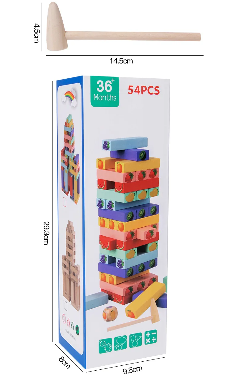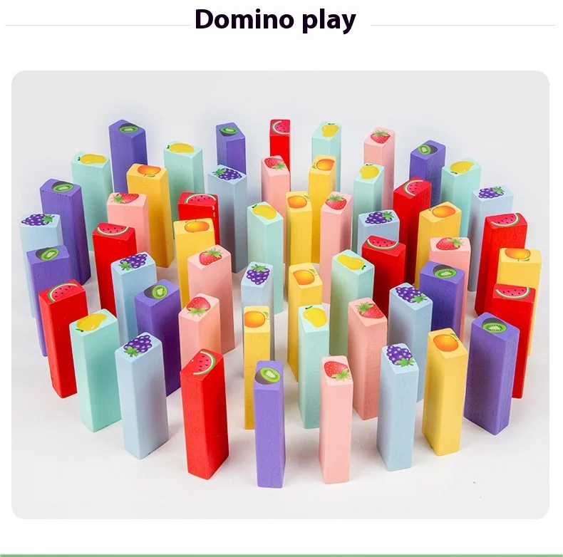 Children’s Building Blocks Puzzle Colorful Fruit Beech Wood Laminated Pull Wooden Blocks Digital Intelligence Wooden Toys