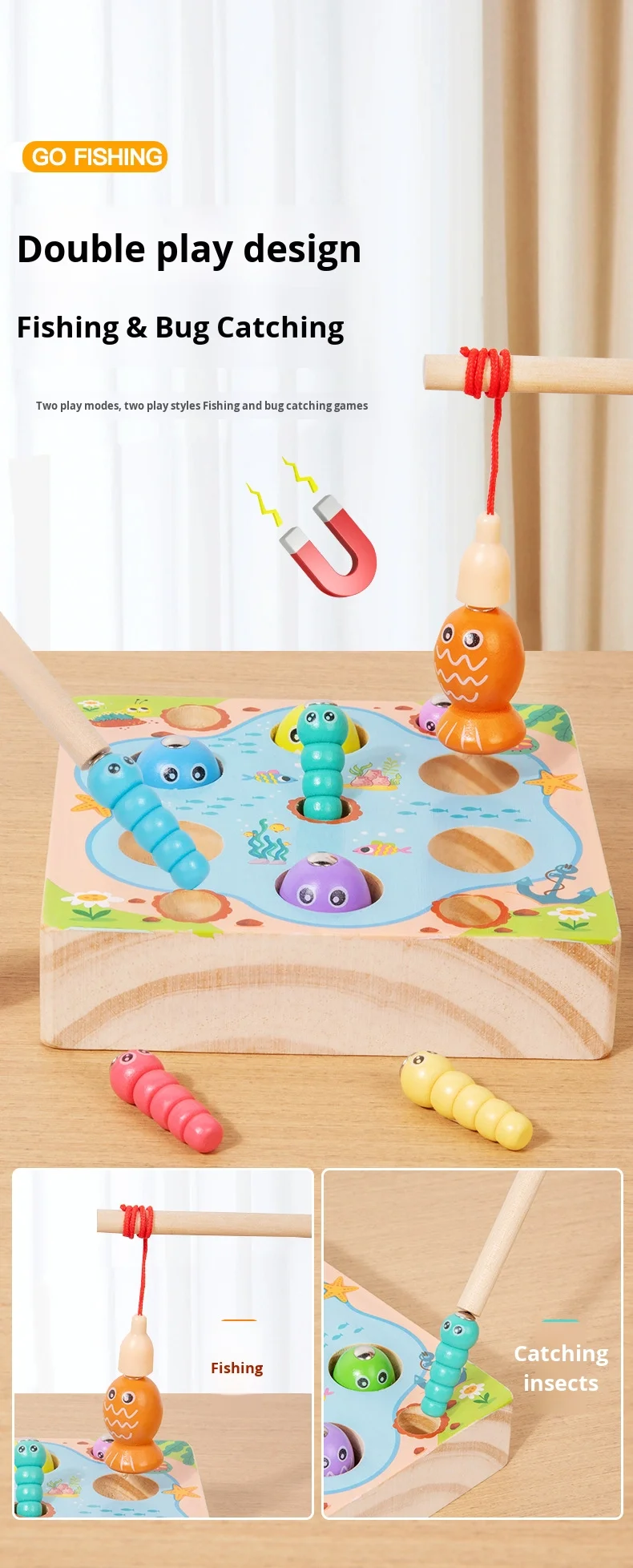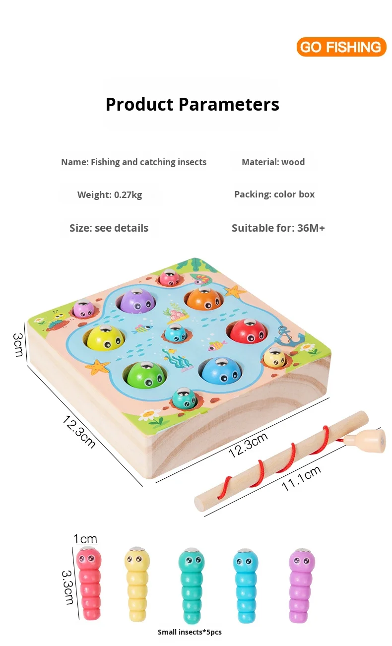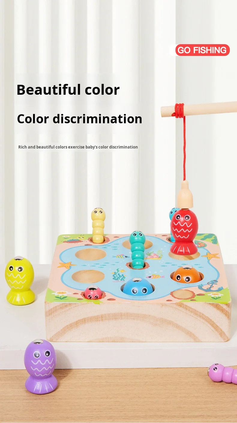 Children’s Color Recognition Matching Wooden Fishing Game Fun Educational Early Learning Toy