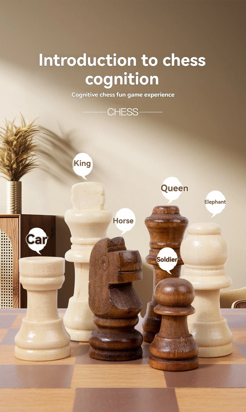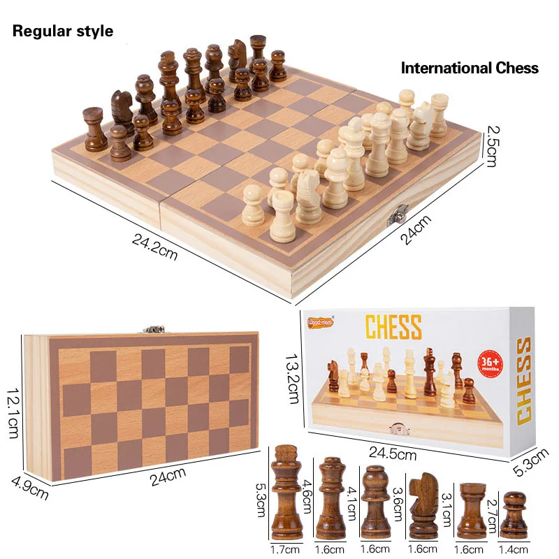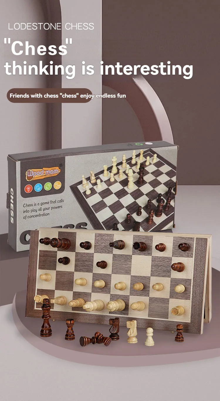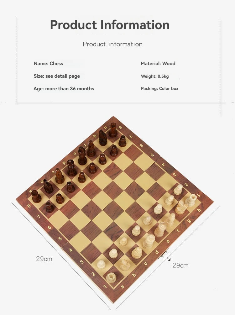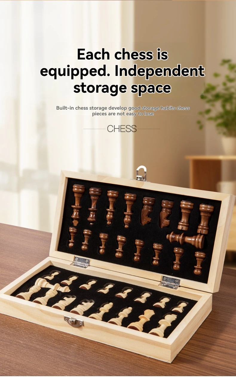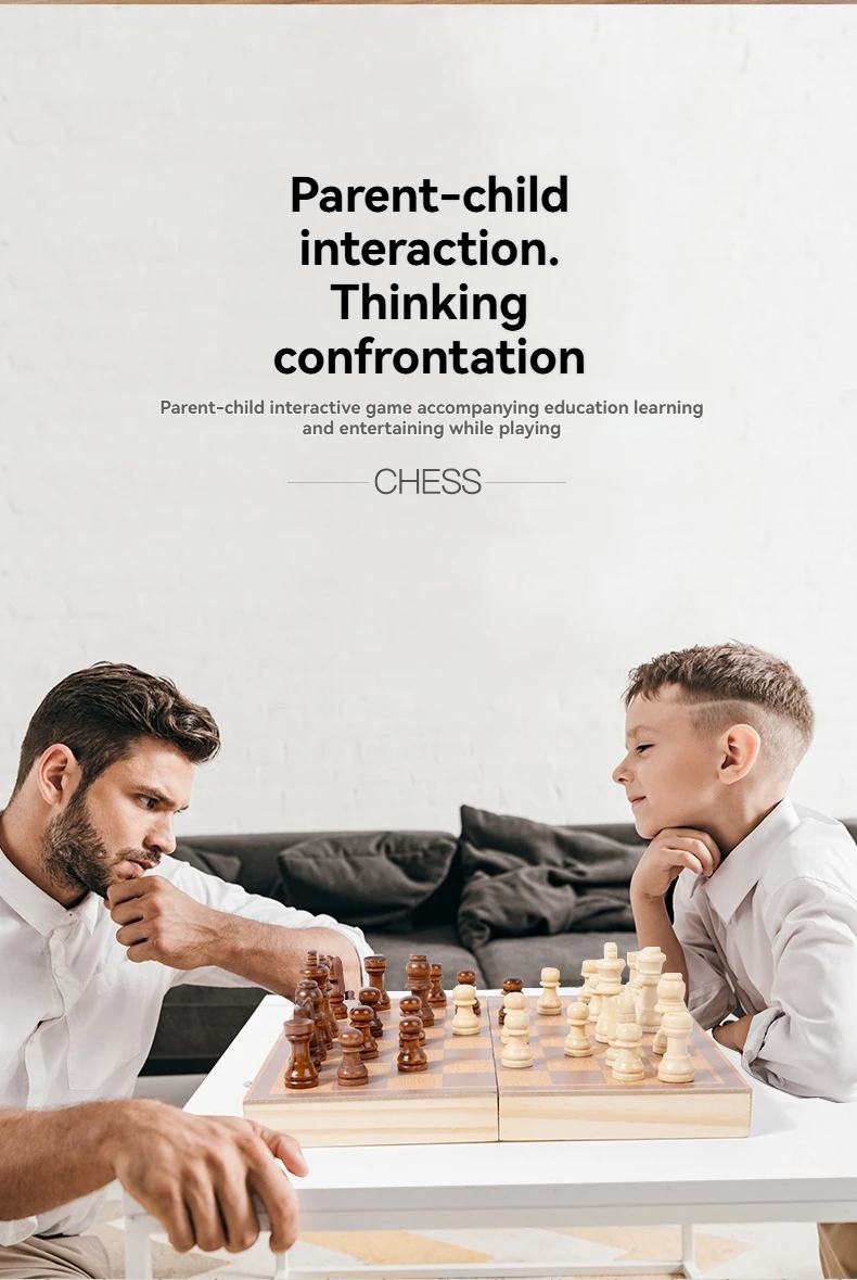 Children’s Competitive Education Wooden Foldable Chess and Checkers Two in One Double Queen Cross-border Toy