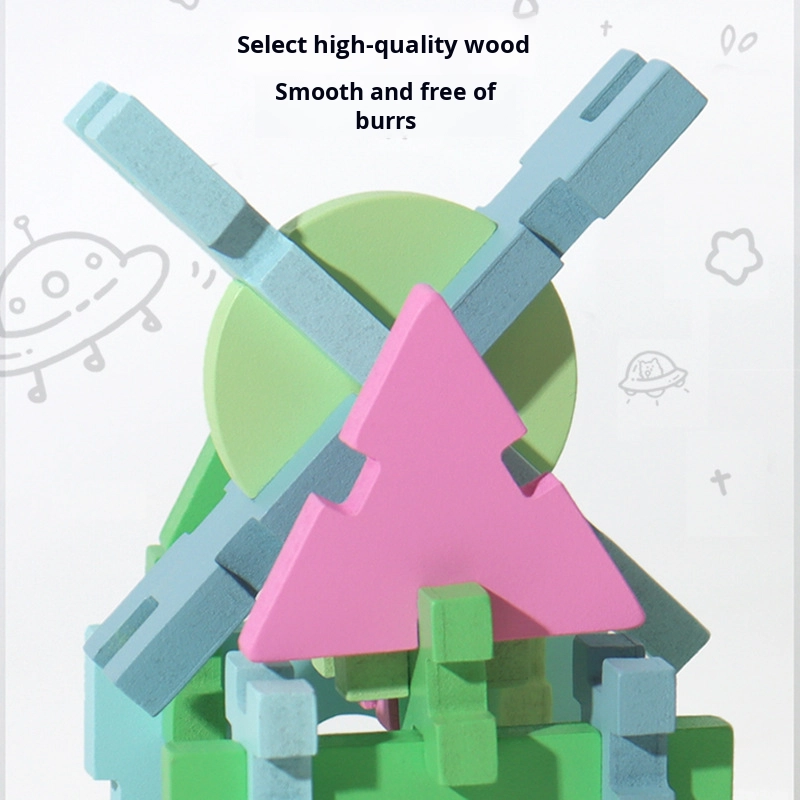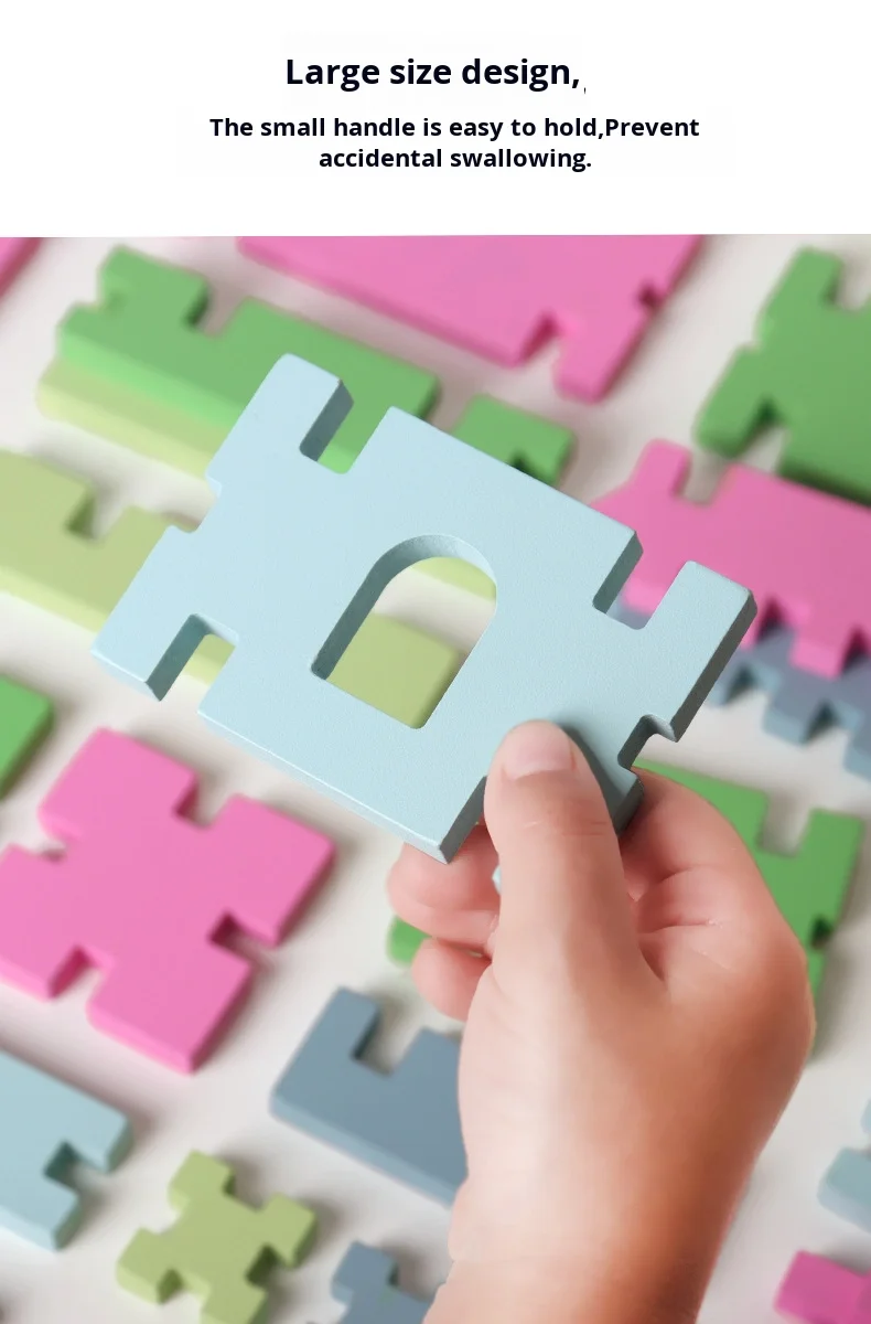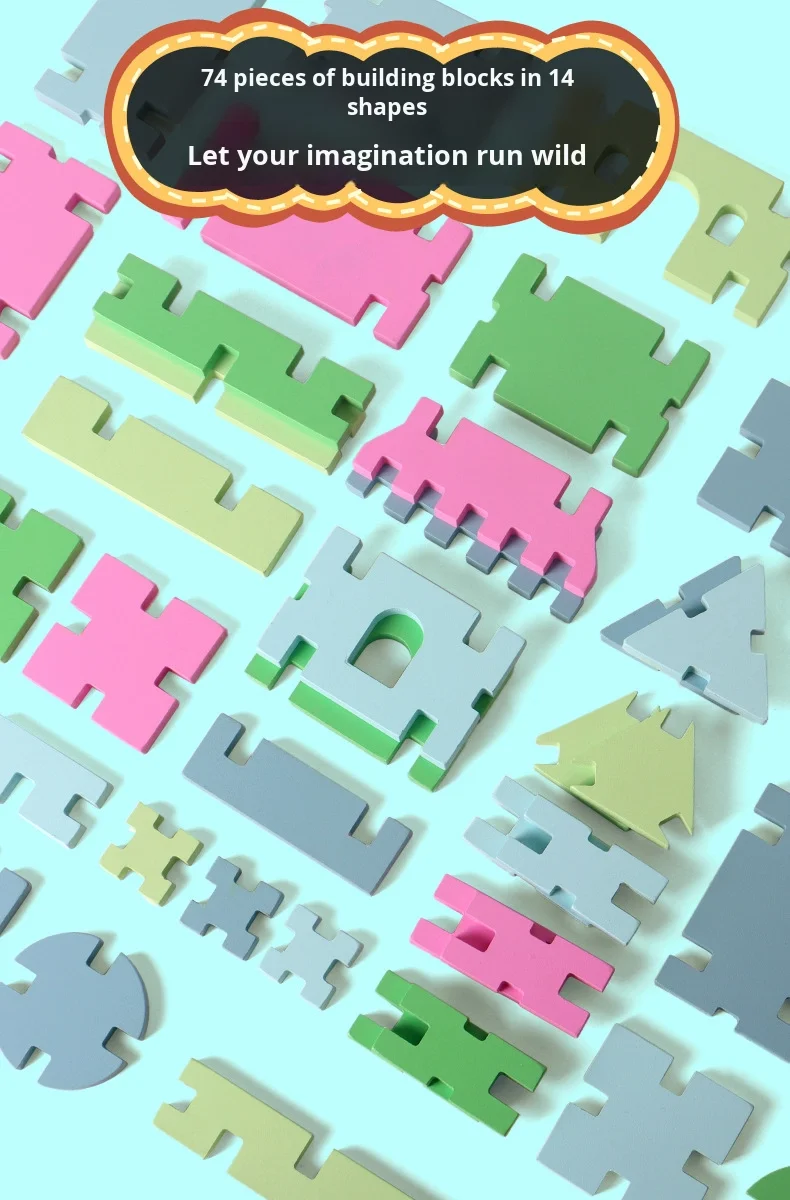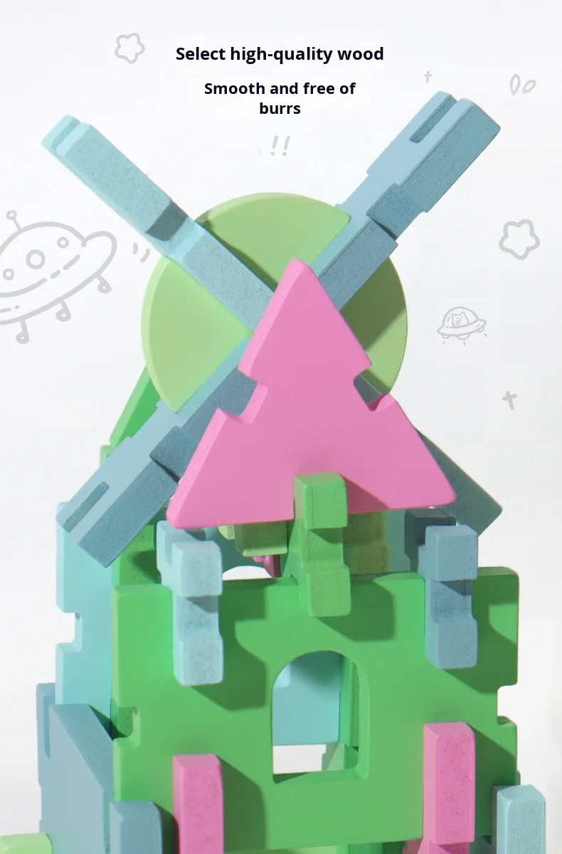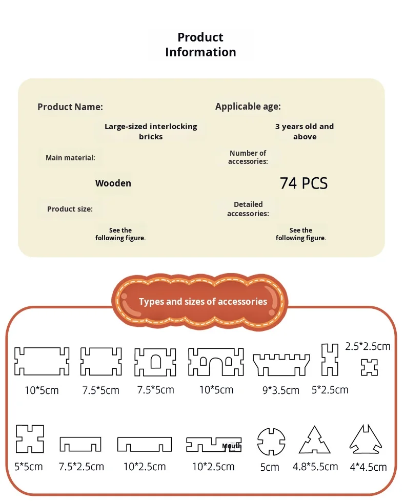 Children’s DIY Wooden Toy 74 Large Particle Building Block Set Early Education Puzzle for Age 3-7 Scene Model Blocks