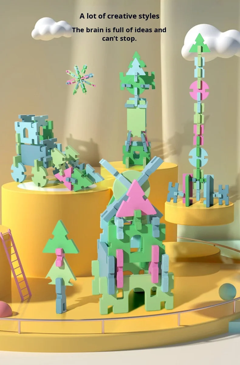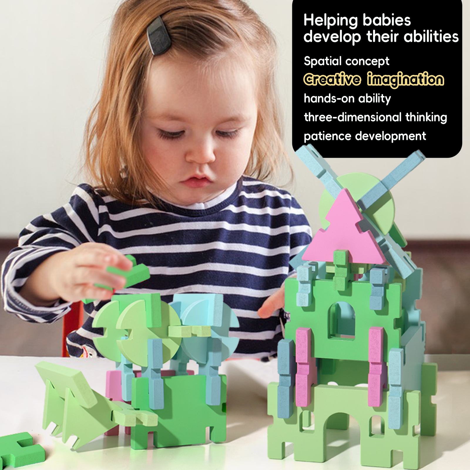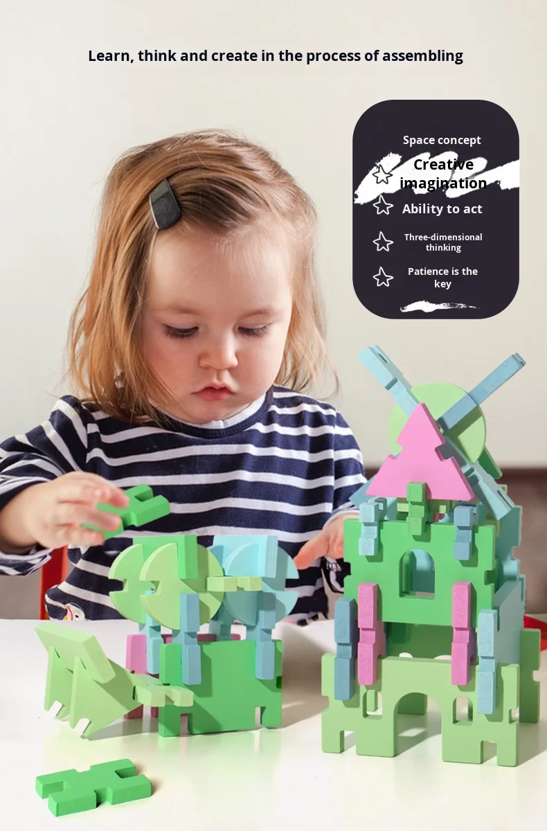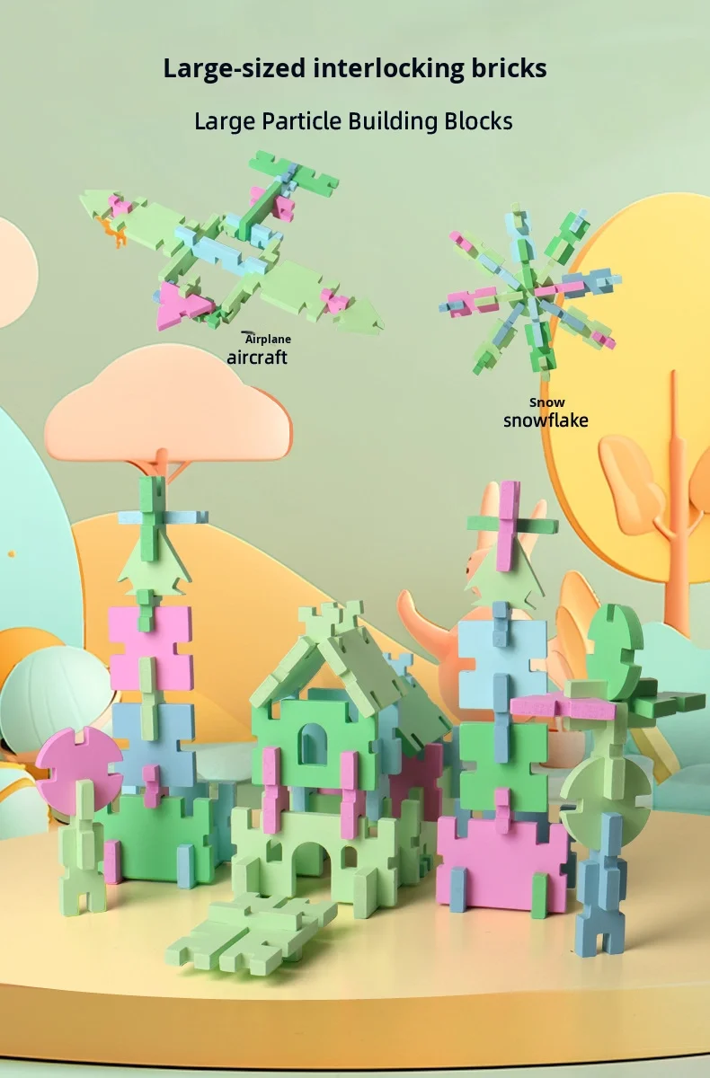 Children’s DIY Wooden Toy 74 Large Particle Building Block Set Early Education Puzzle for Age 3-7 Scene Model Blocks