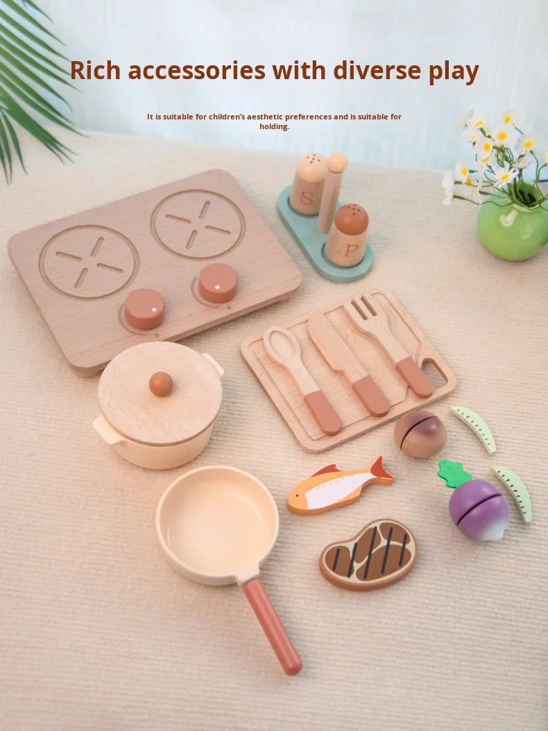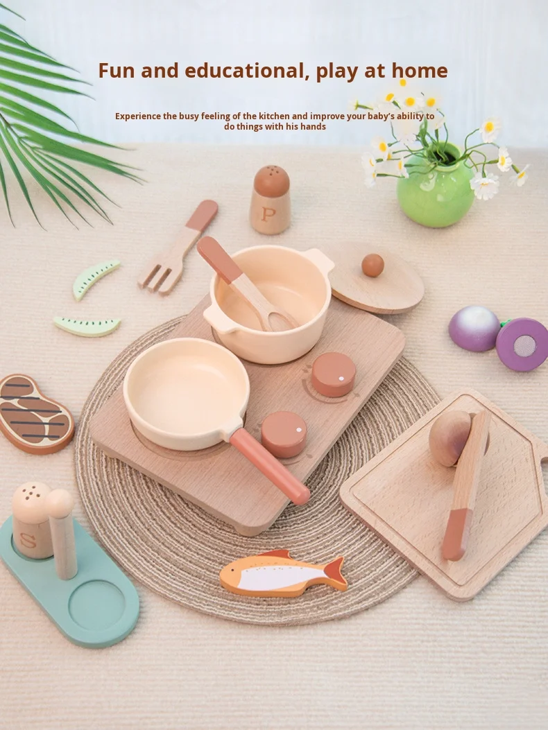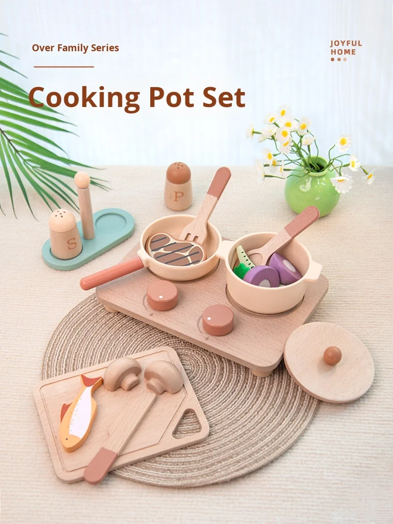 Children’s Early Education Educational Play House Cooking Cooking Pots and Pans Group Simulation Kitchen Wooden Toys