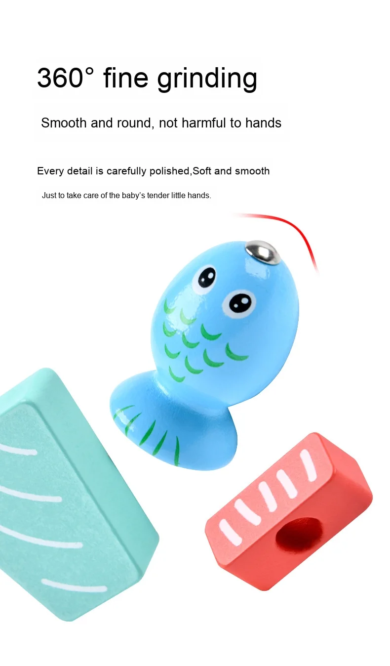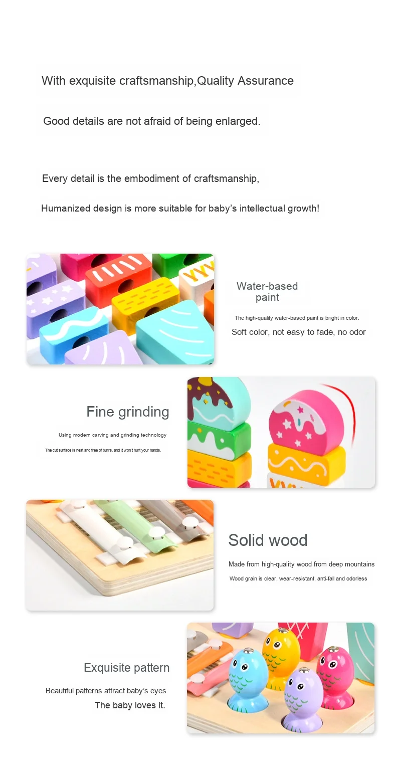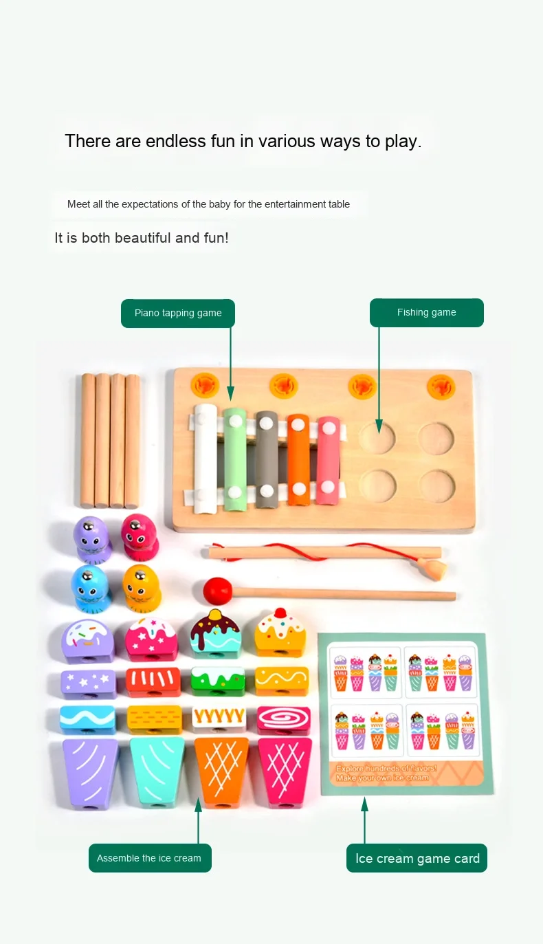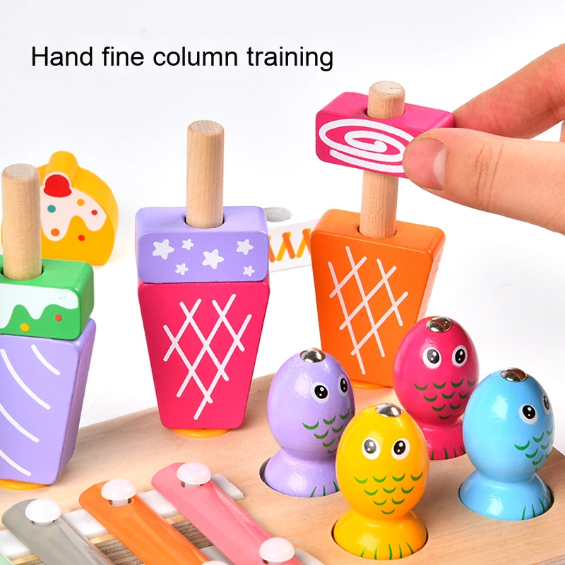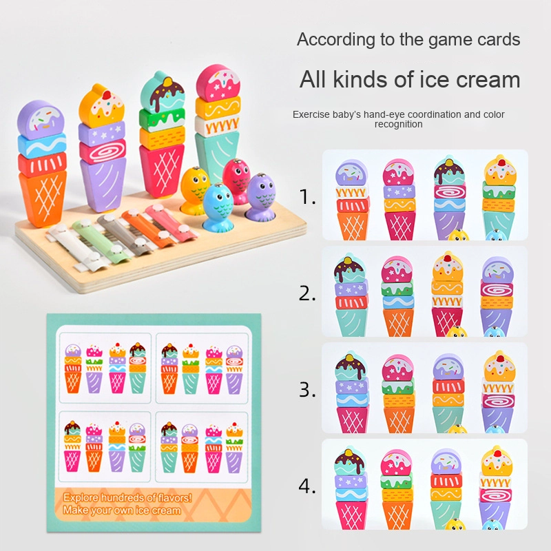 Children’s Early Education Multifunctional Wooden Toy 3-in-1 Ice Cream Fishing Game Math Subject for Ages 2-4 Years