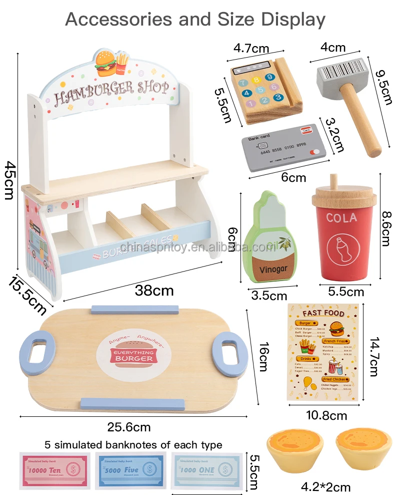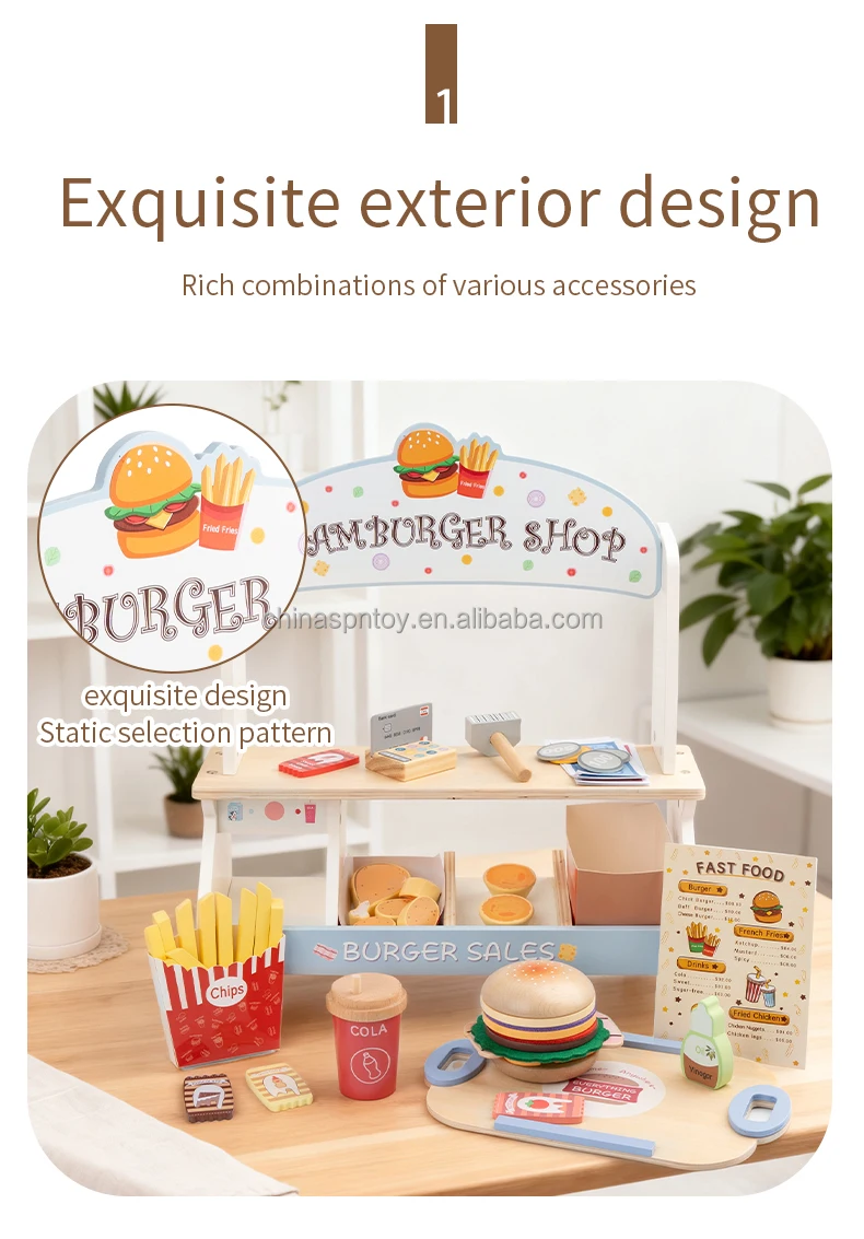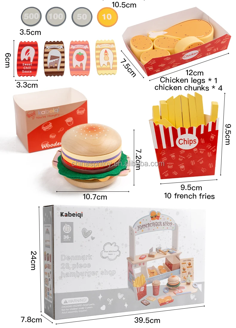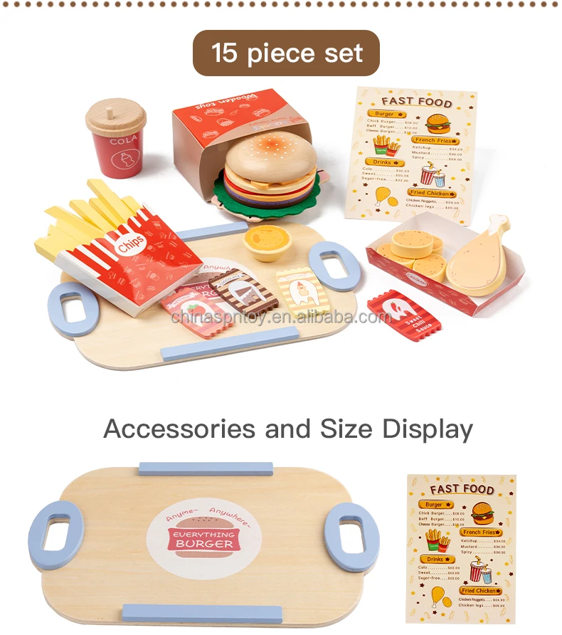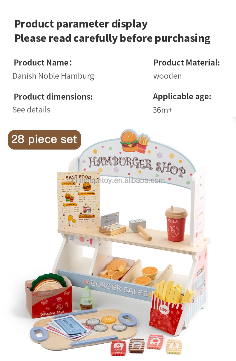 Children’s Early Education Wooden Kitchen Food Toys Set Food Cutting Role-Playing Set Danish Noble Burger Set
