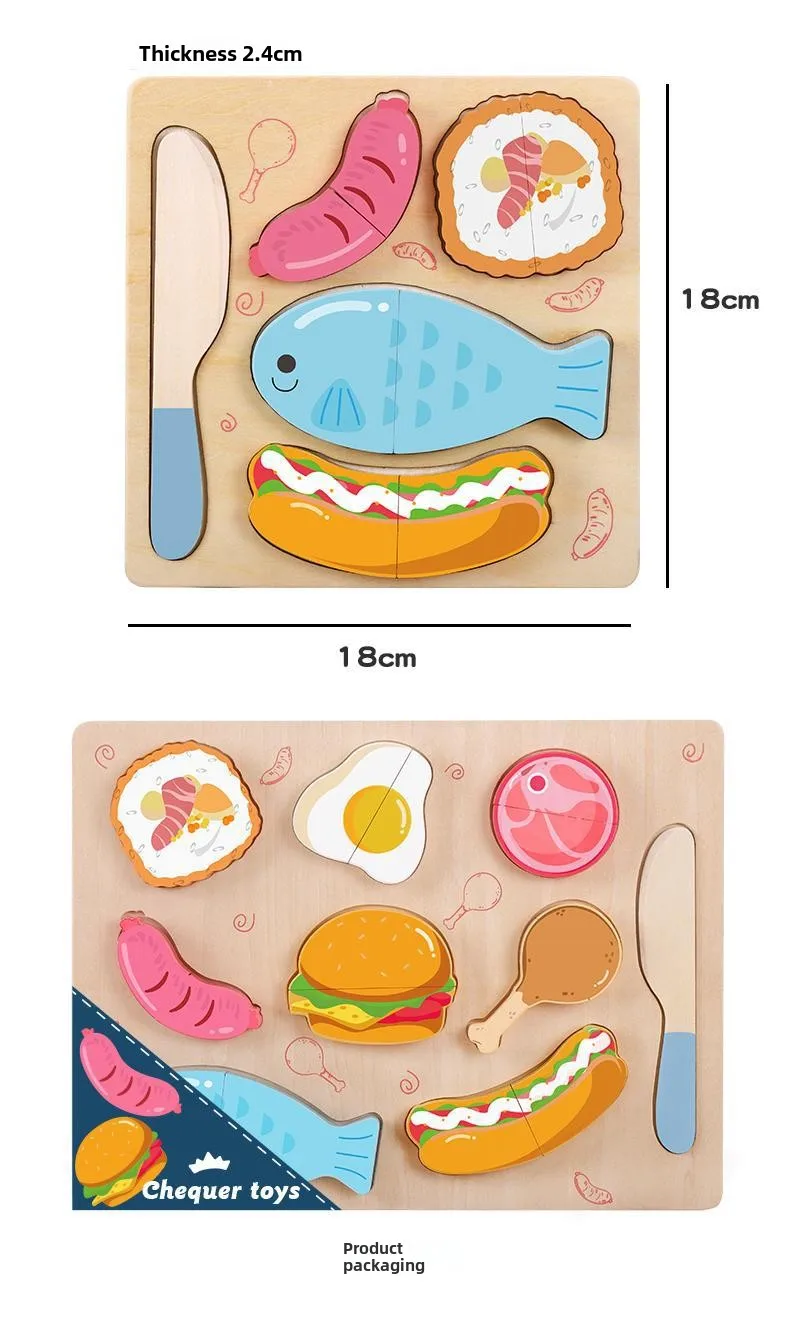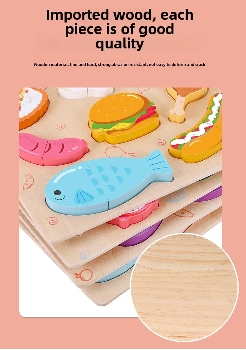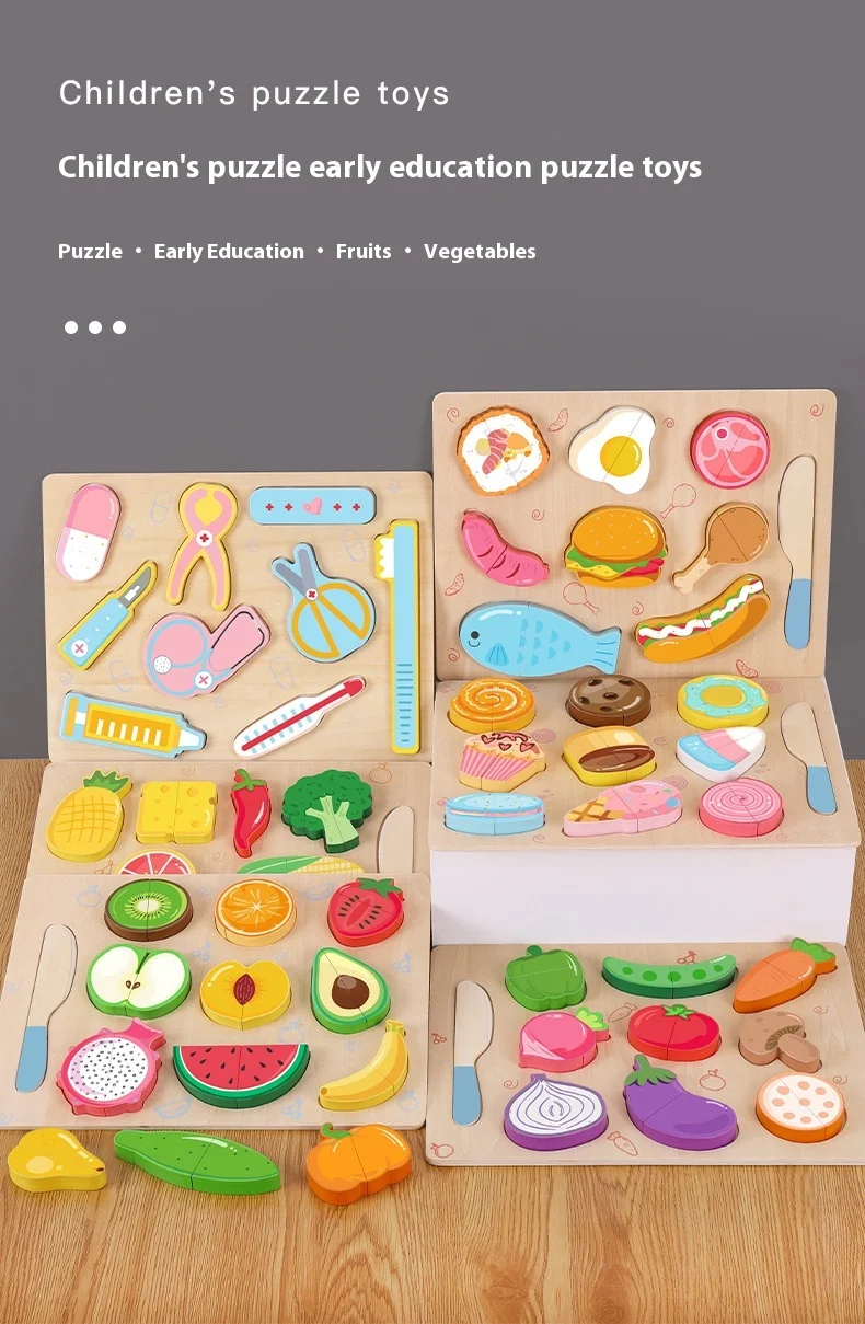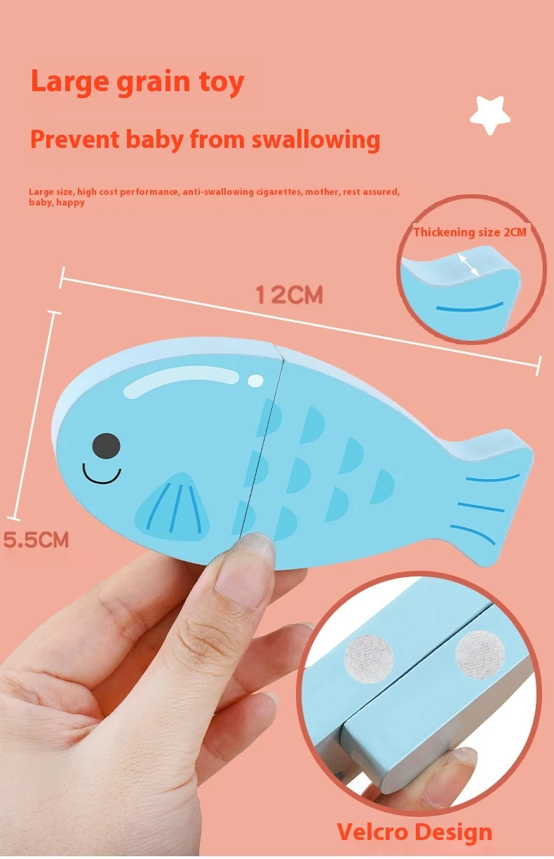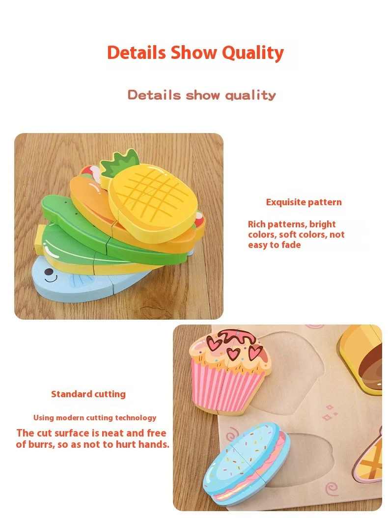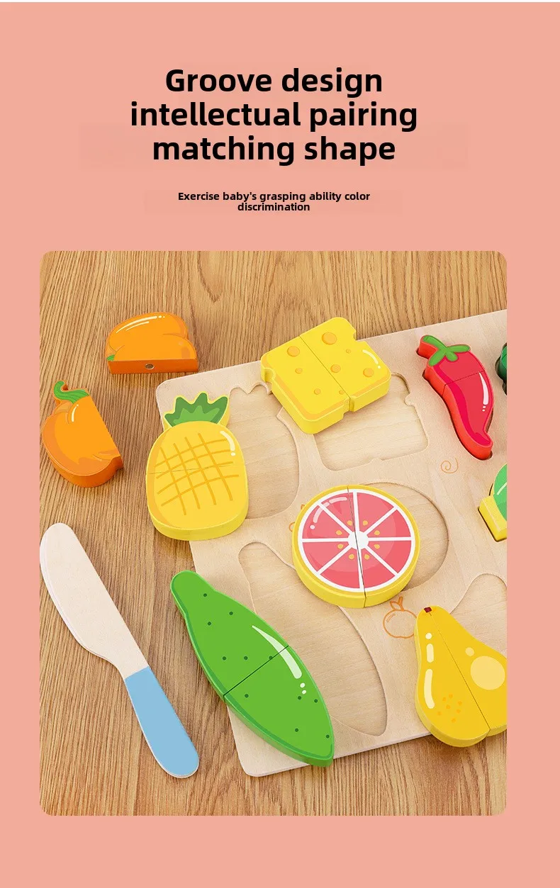 Children’s Early Educational Toys with velcro Matching Wooden Fruits and Vegetables Cutting Fun 16 Kinds of Wooden Toys