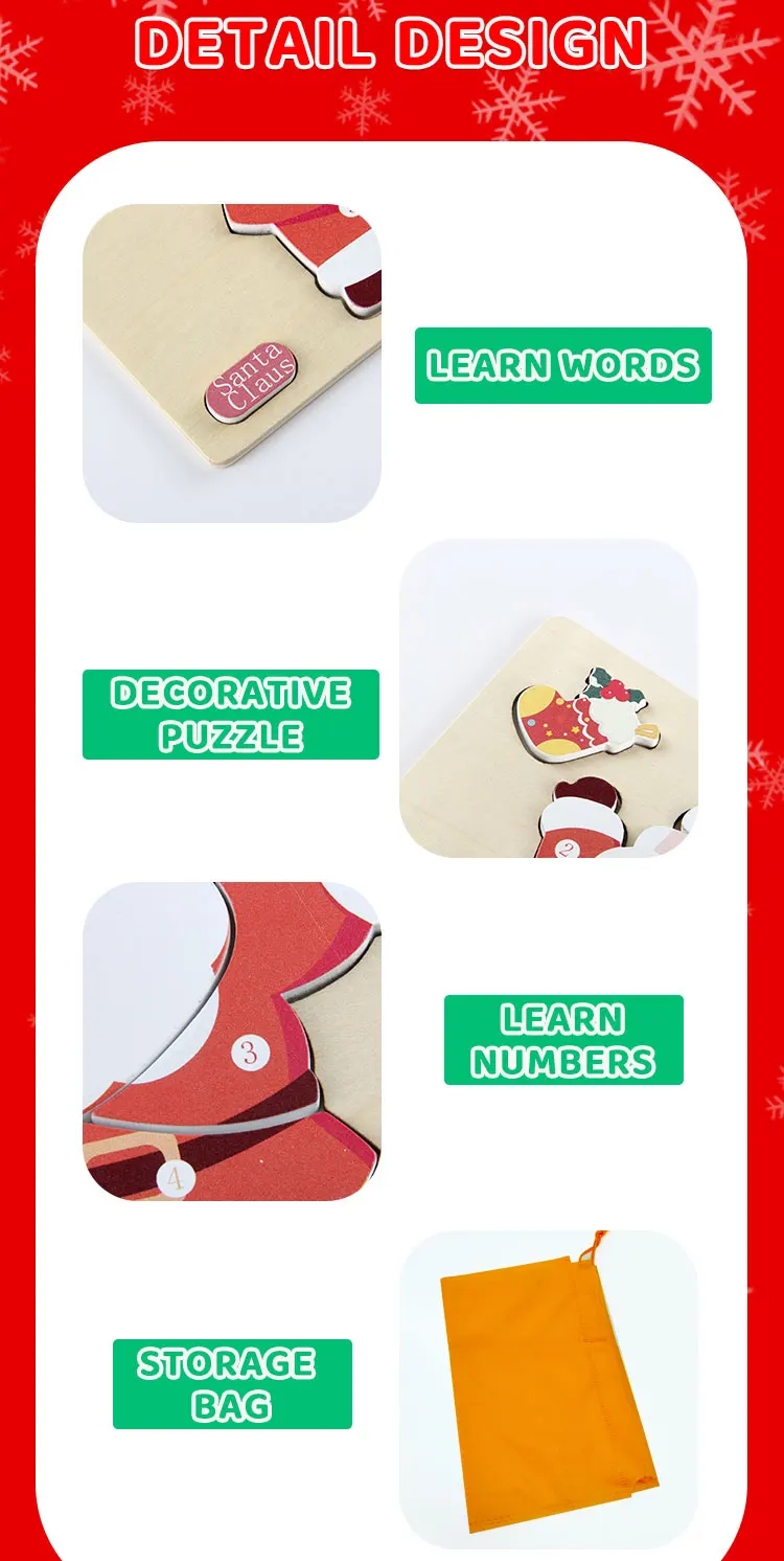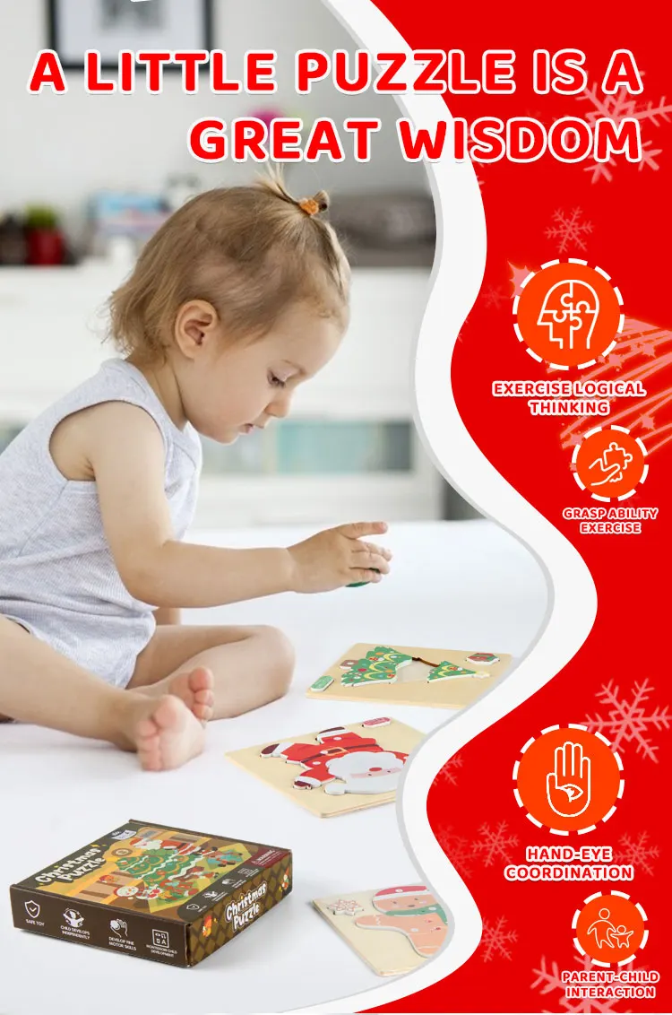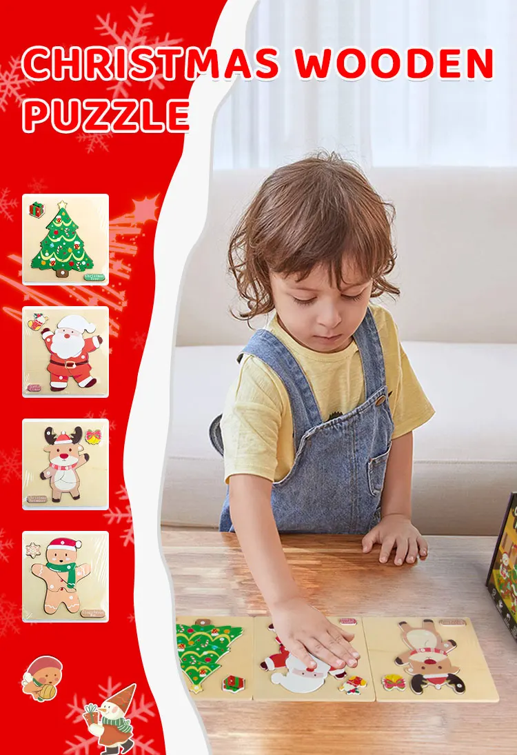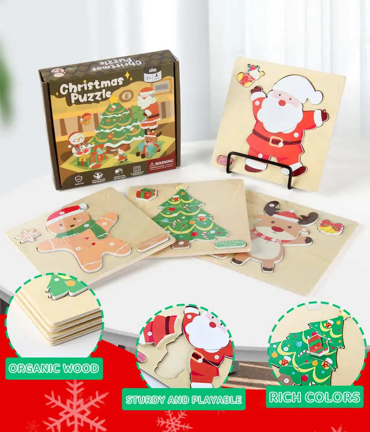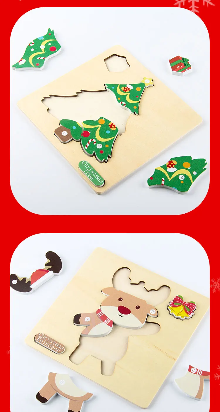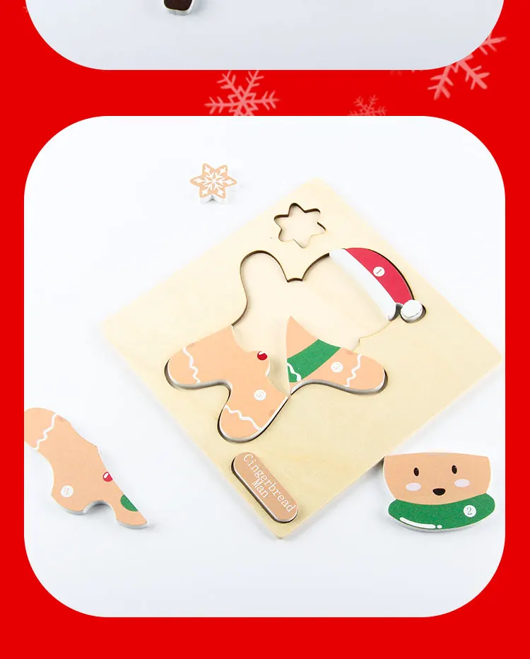 Children’s Early Learning Puzzle Christmas Gift Santa Claus Christmas Tree Moose Gingerbread Man Creative Wooden Puzzle