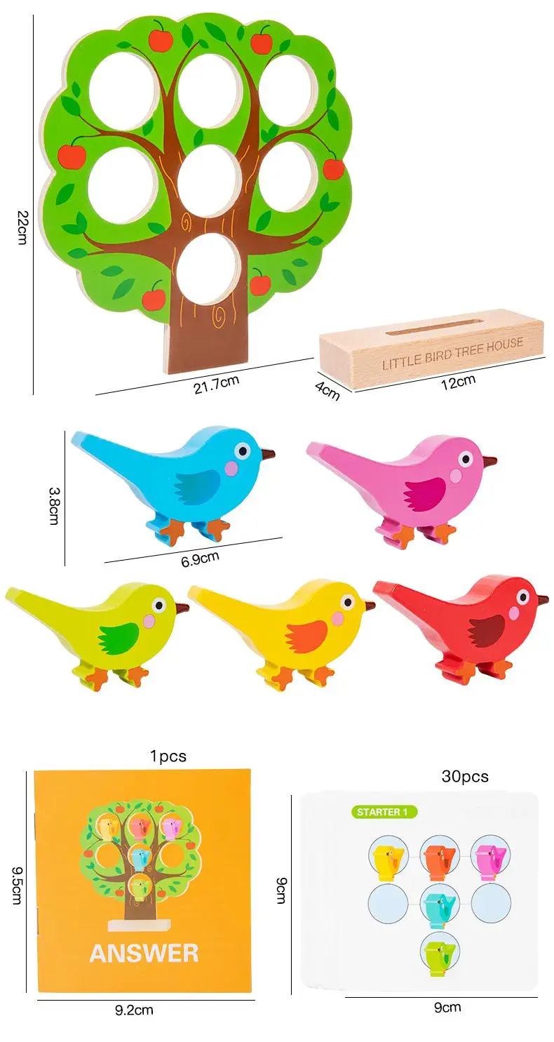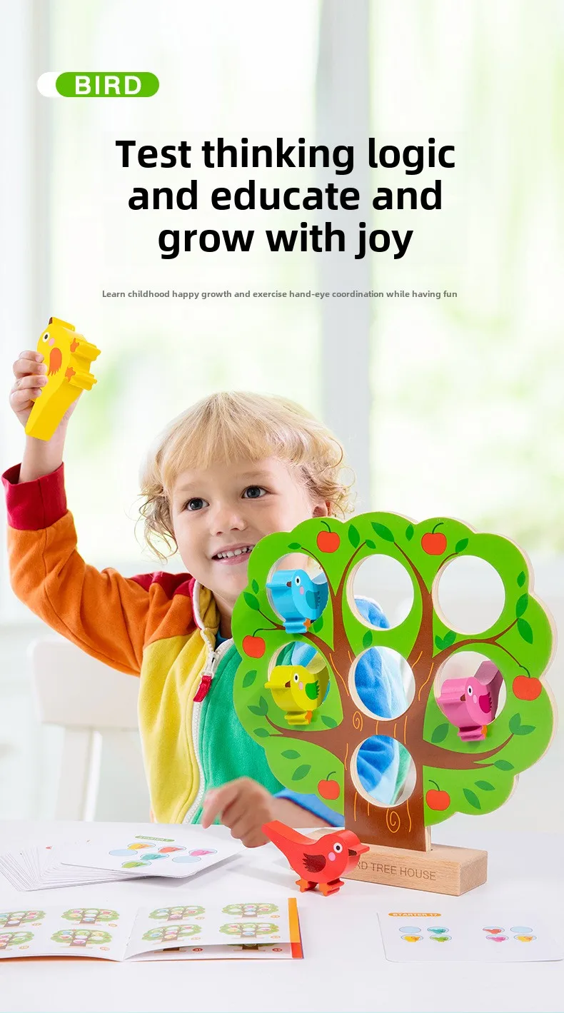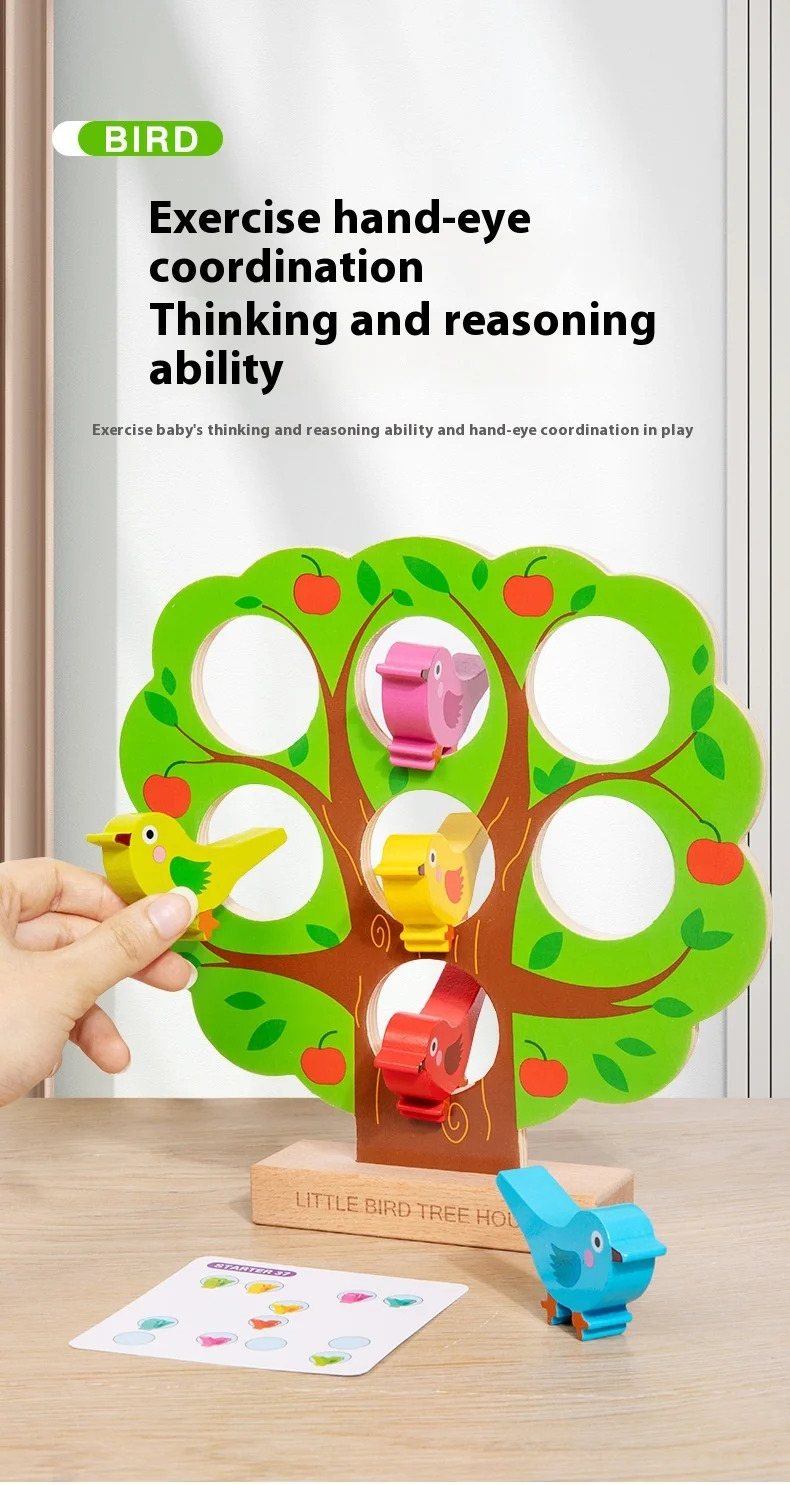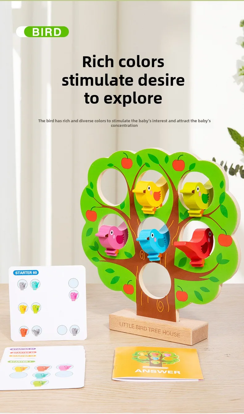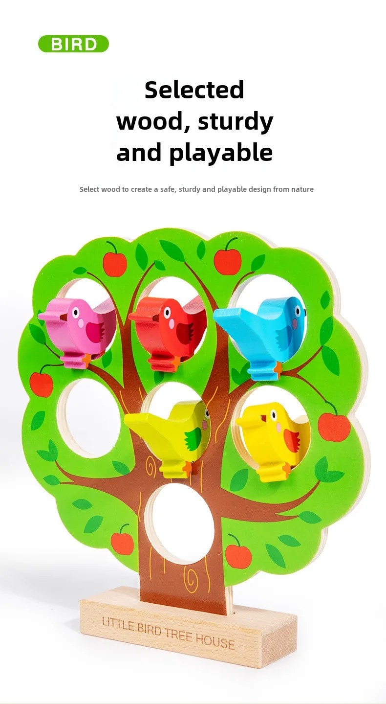 Children’s Early Learning Puzzle Rainbow Bird Settlement Game Wooden Blocks Family Interactive Educational Fun Block Game