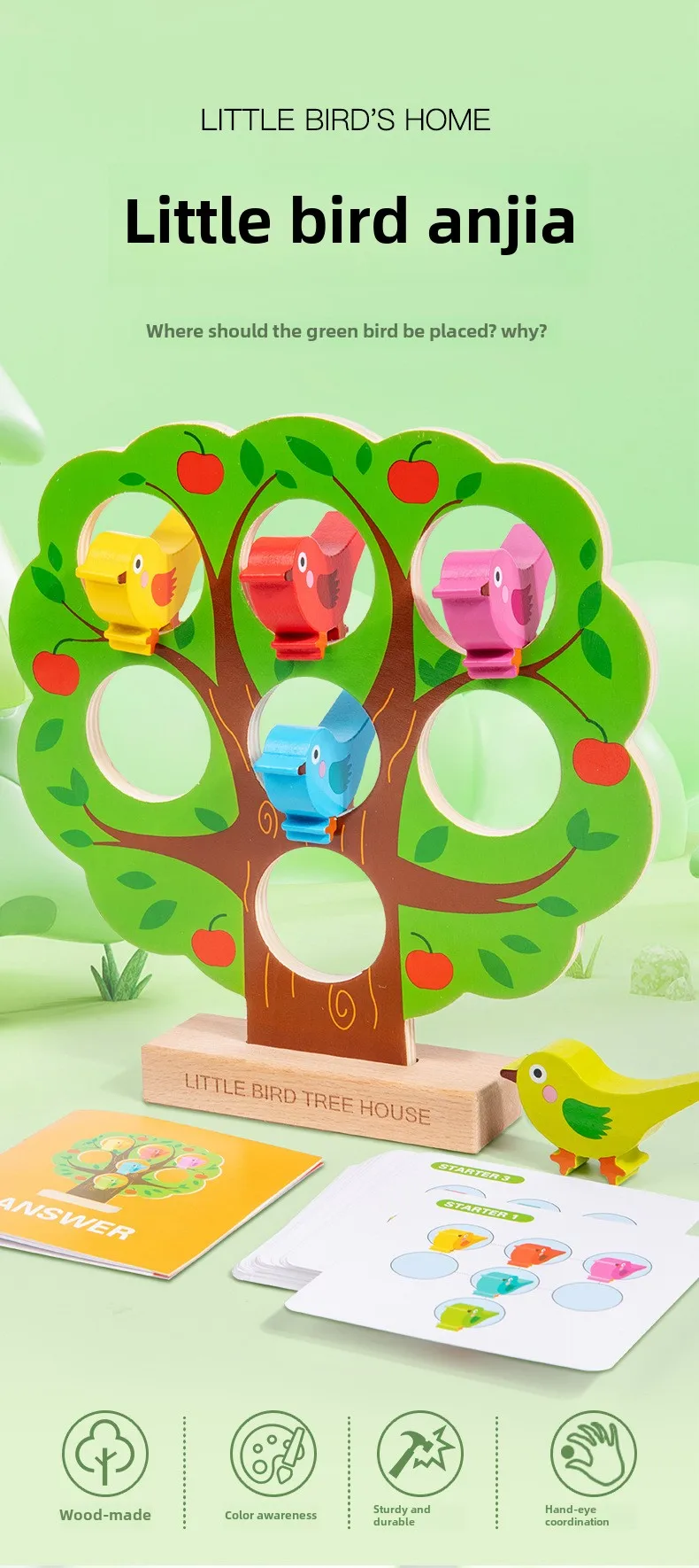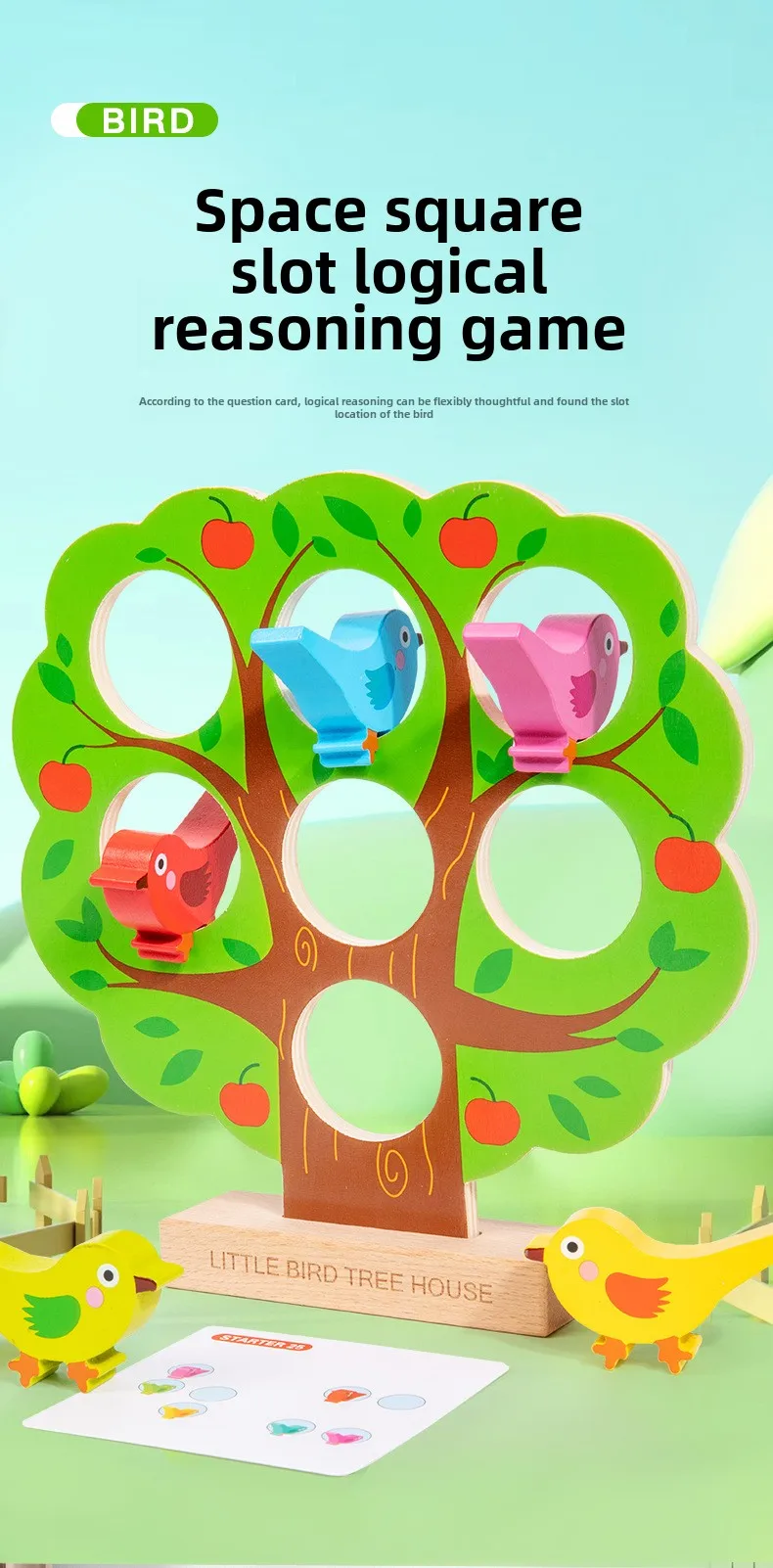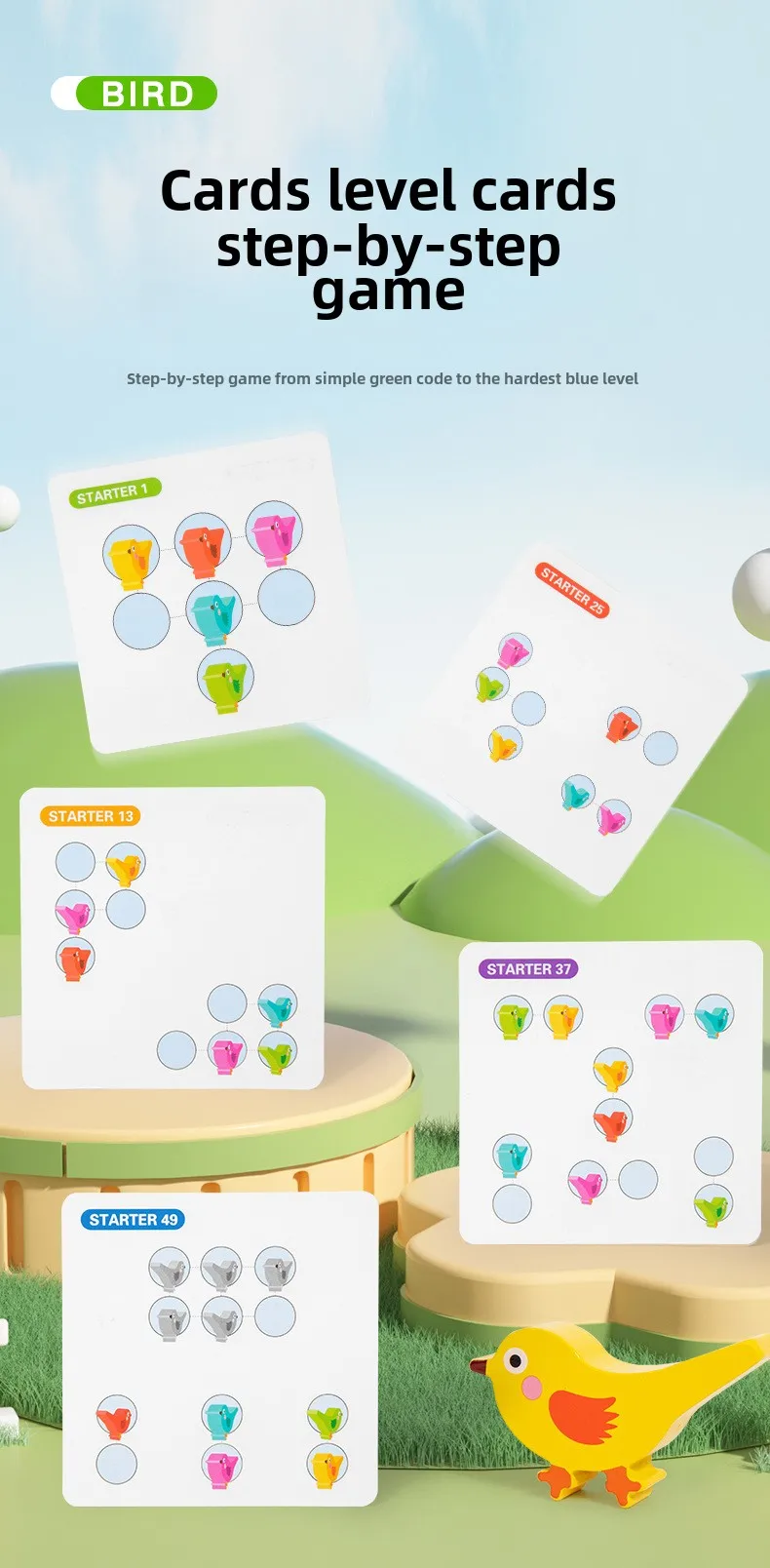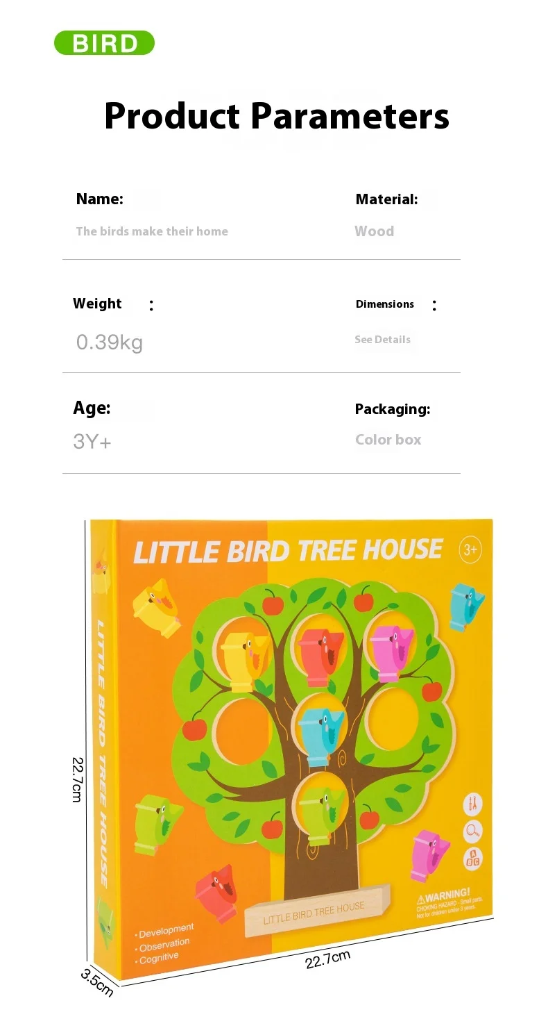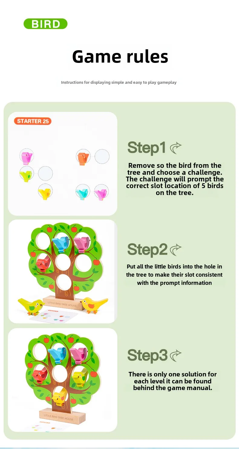 Children’s Early Learning Puzzle Rainbow Bird Settlement Game Wooden Blocks Family Interactive Educational Fun Block Game