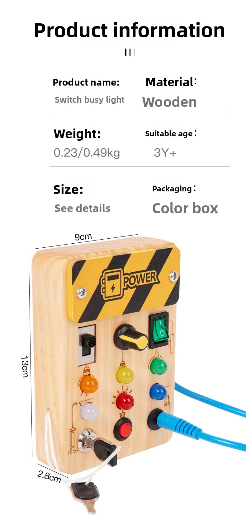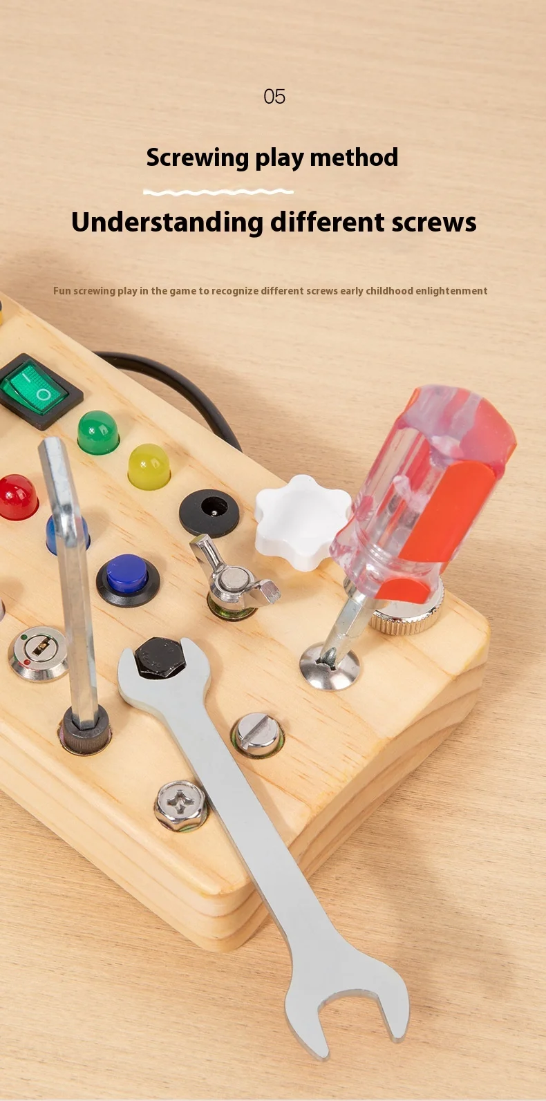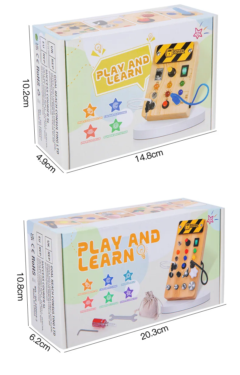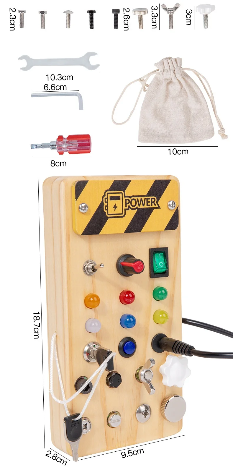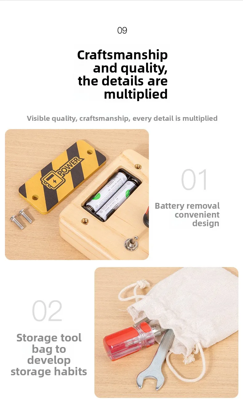 Children’s Educational Busy Board LED Switch Toy Montessori Circuit Board Design Handmade Wooden Toy