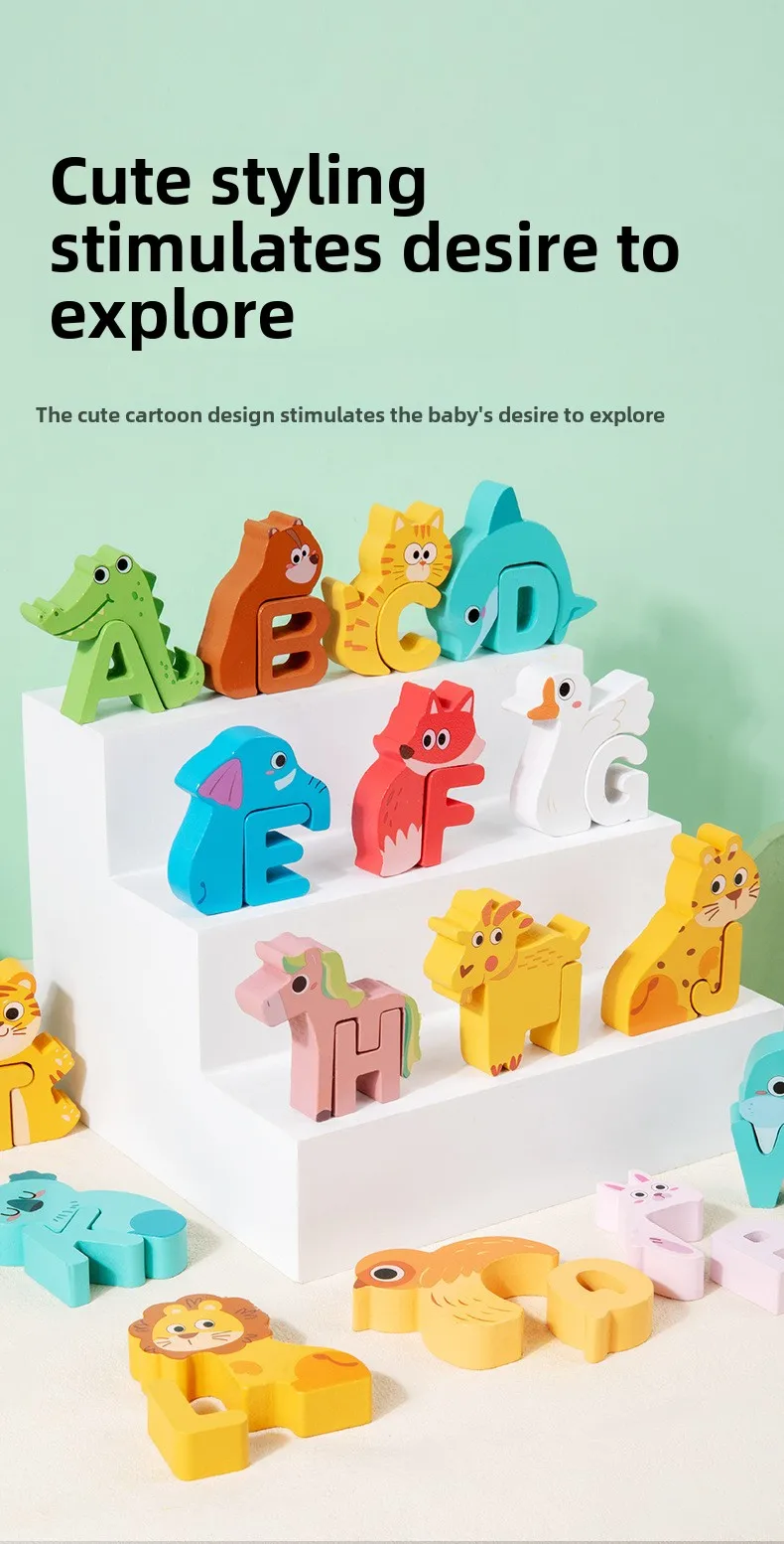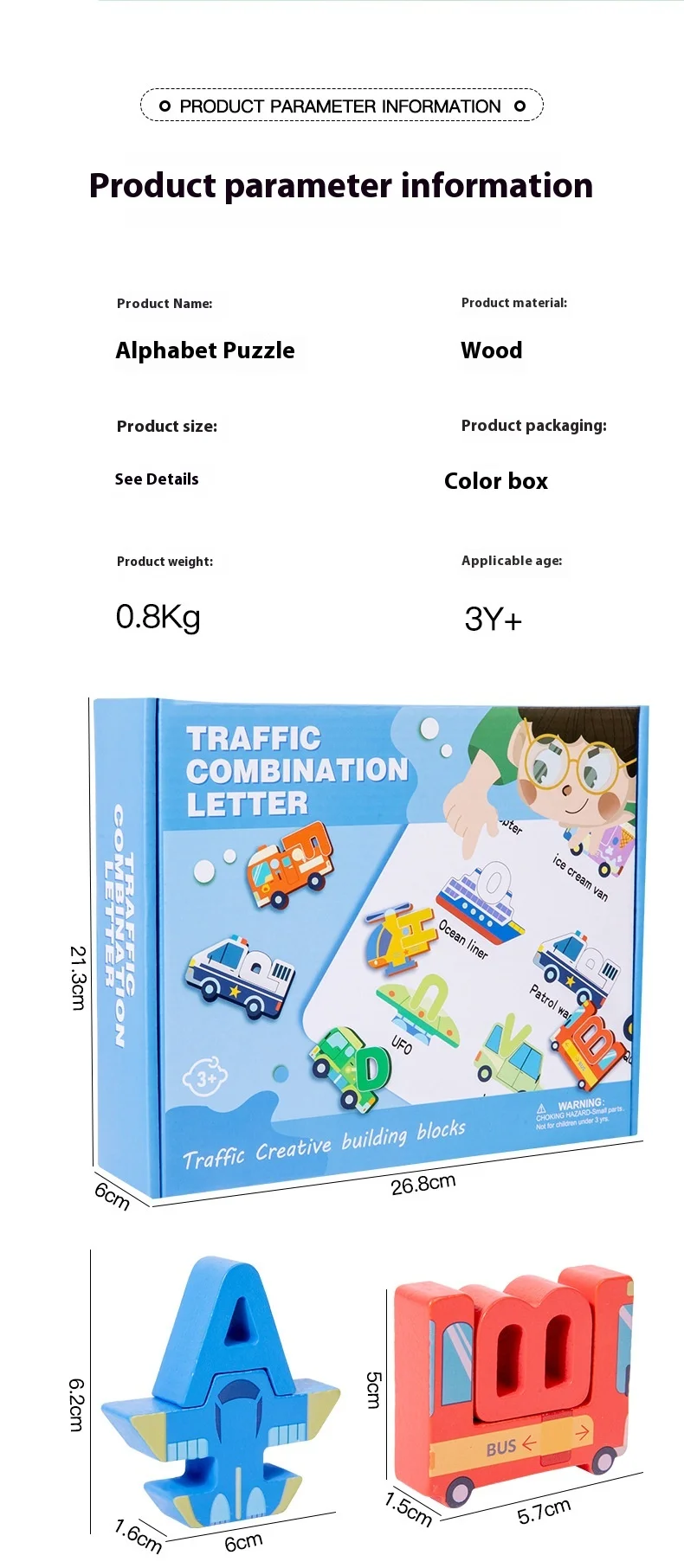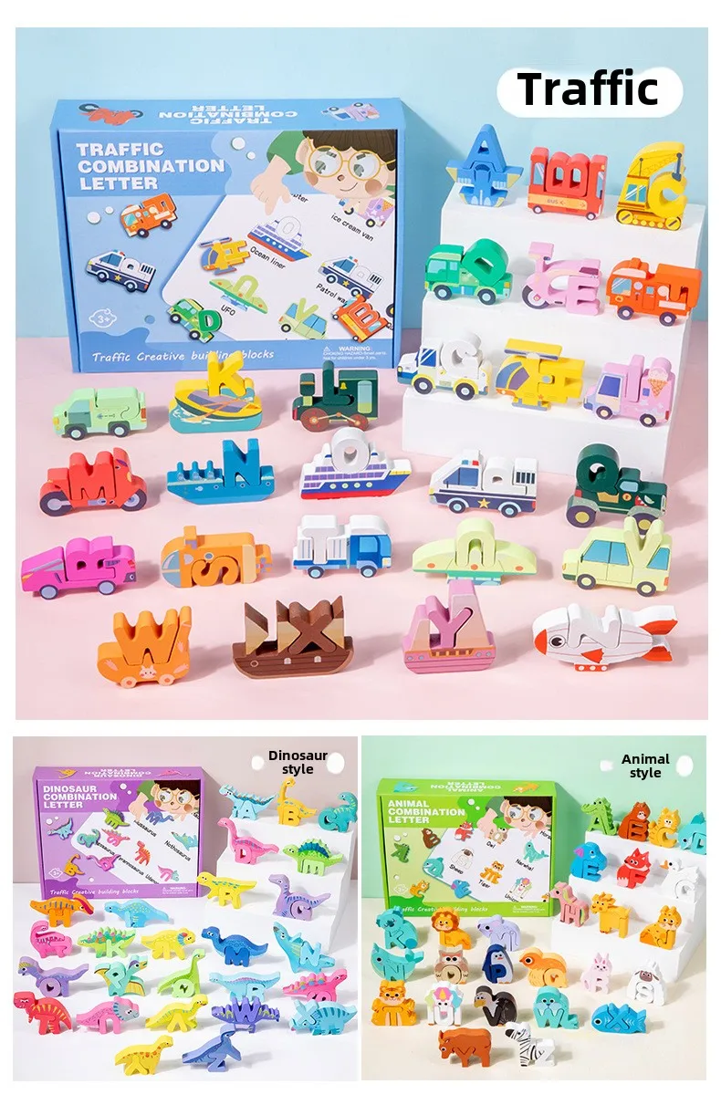 Children’s Educational Early Cartoon Alphabet Blocks Creative Baby Wooden Building Blocks Animal Dinosaur Traffic Toys