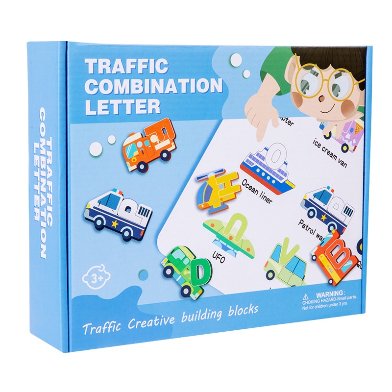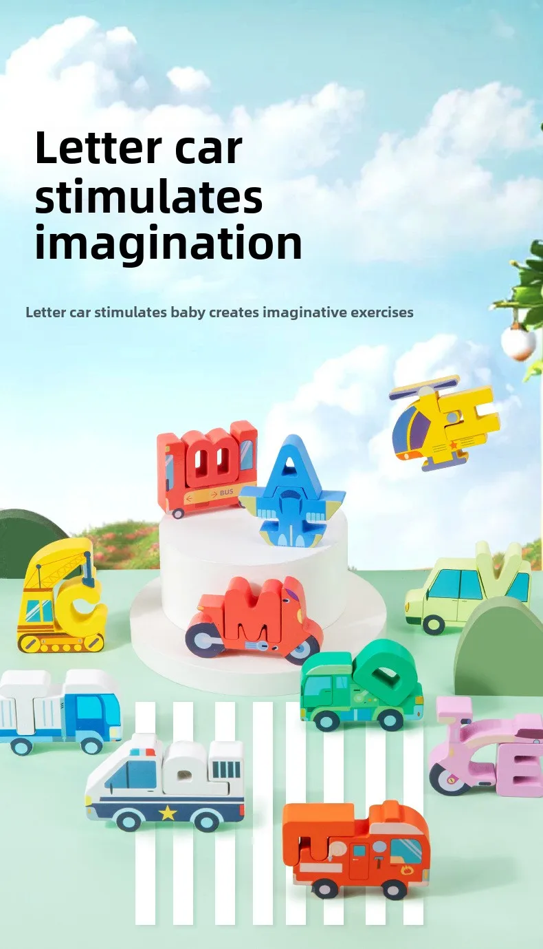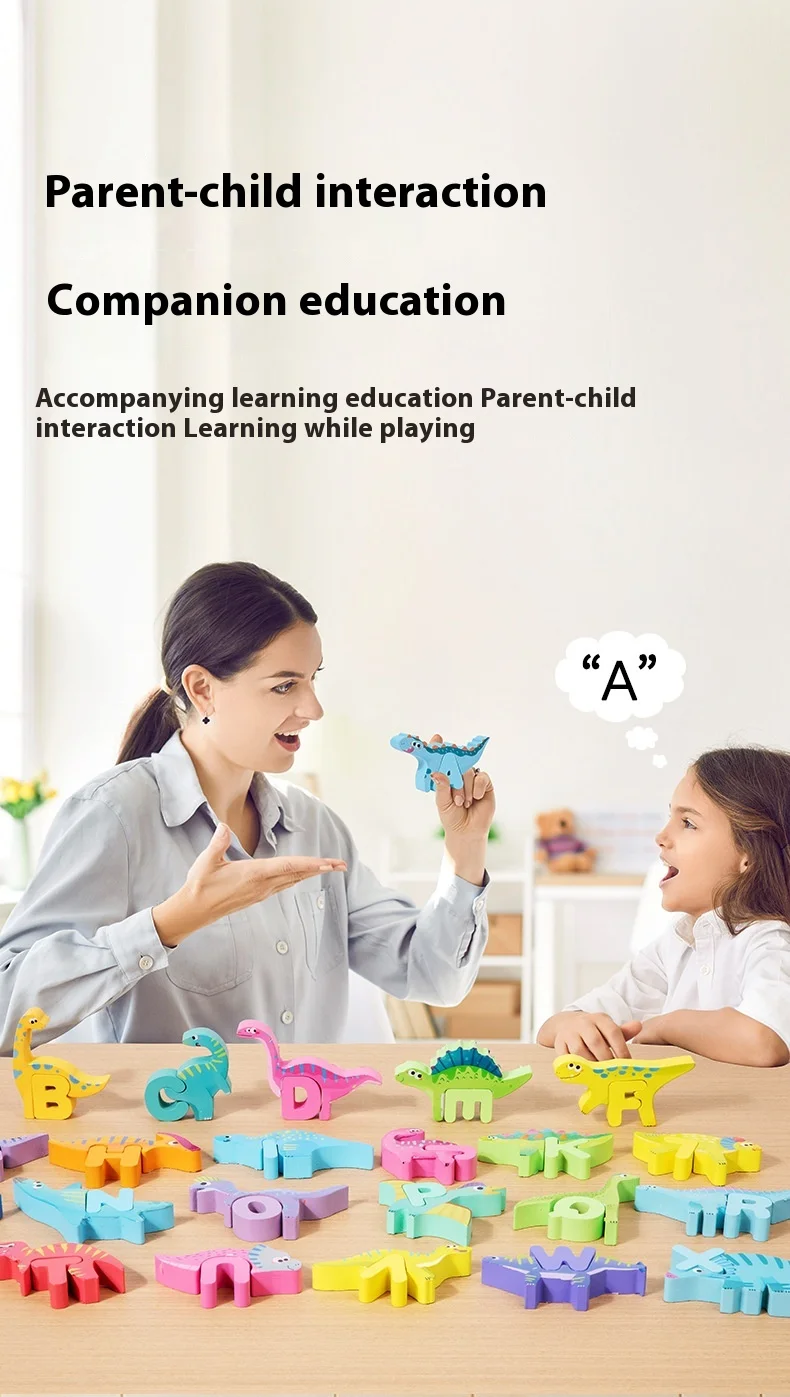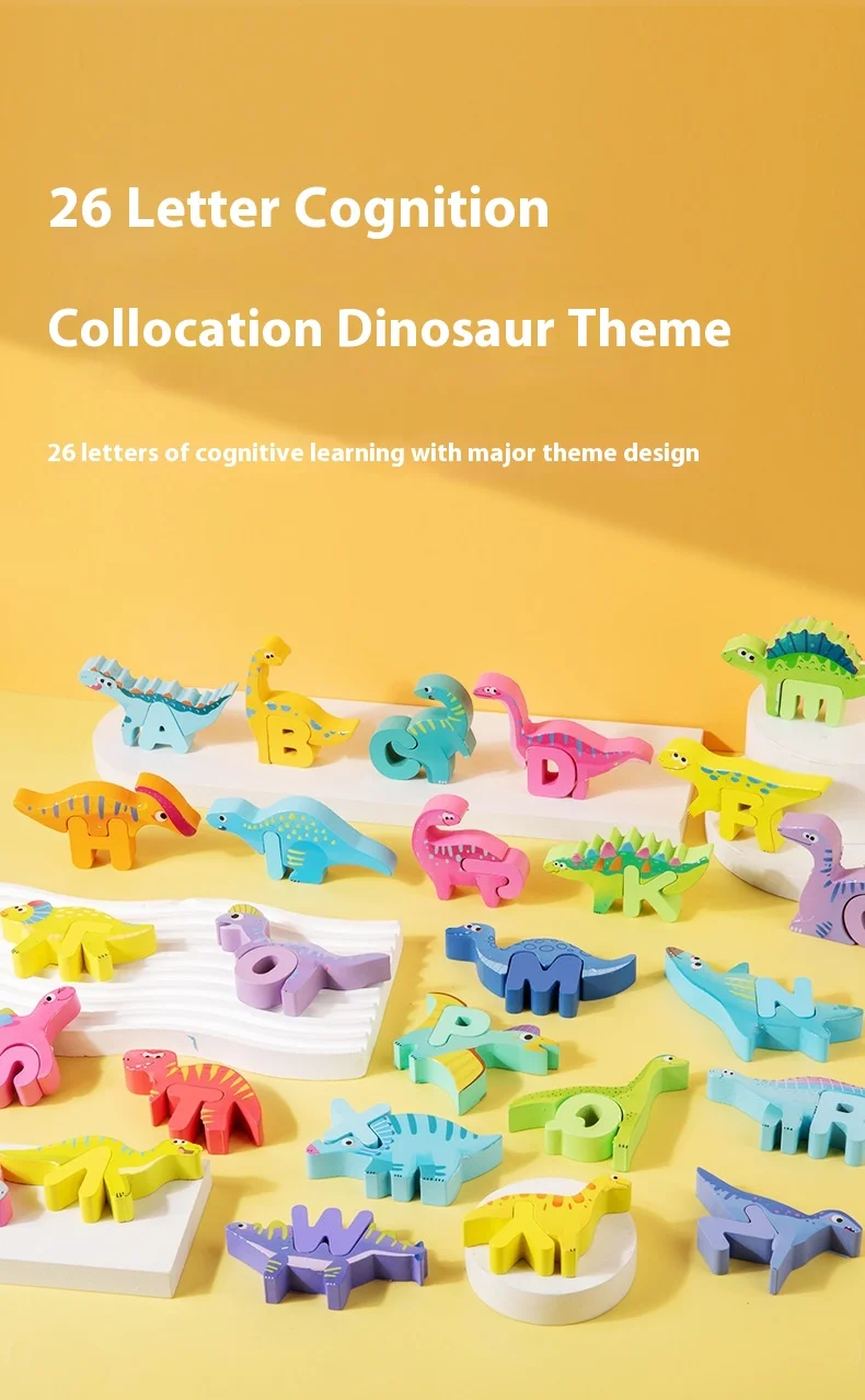 Children’s Educational Early Cartoon Alphabet Blocks Creative Baby Wooden Building Blocks Animal Dinosaur Traffic Toys