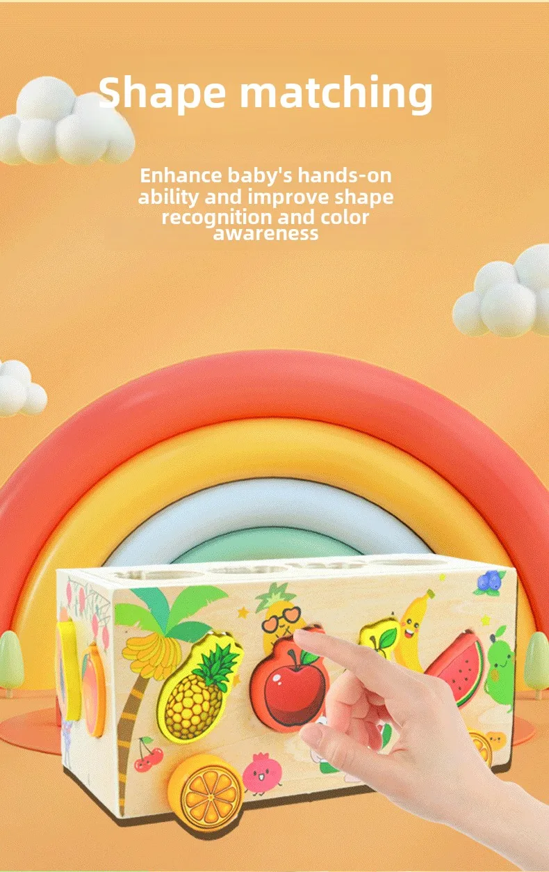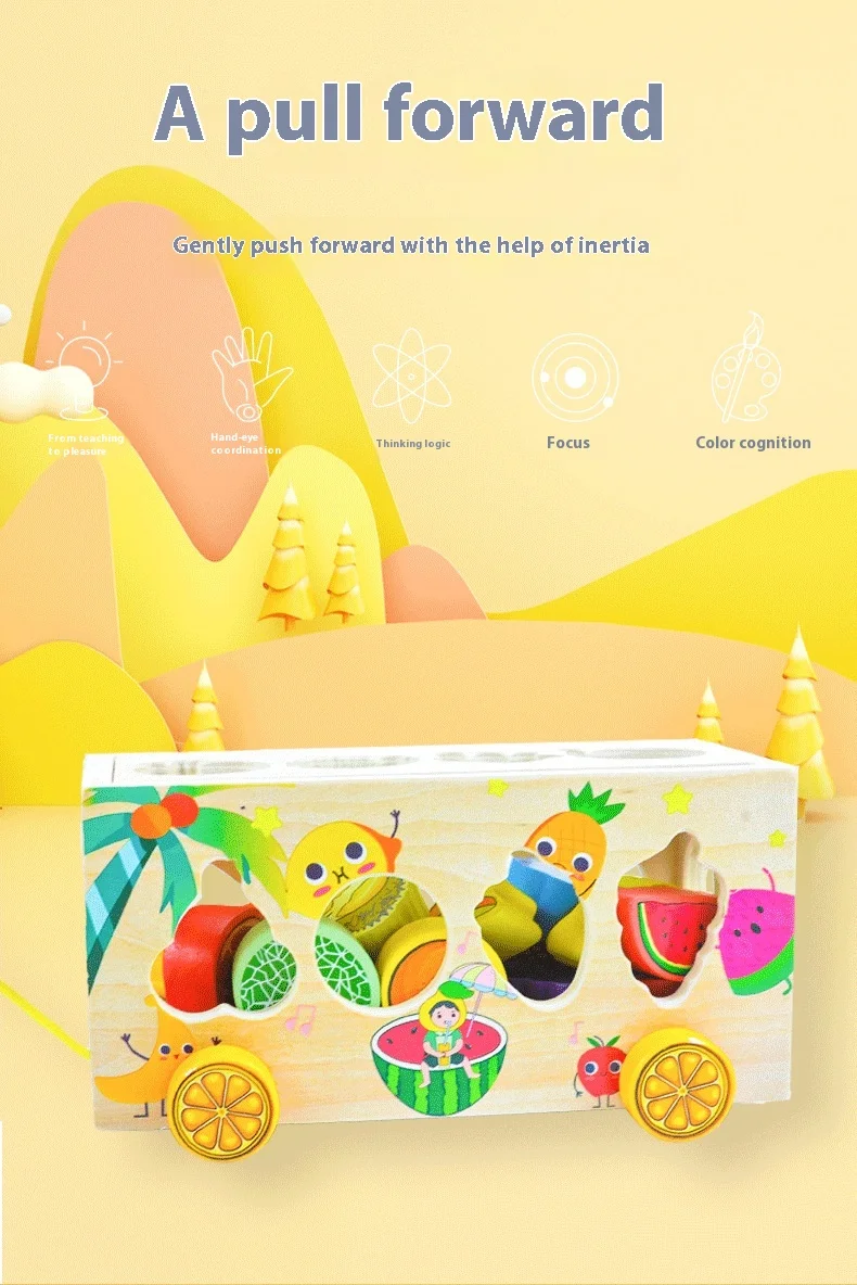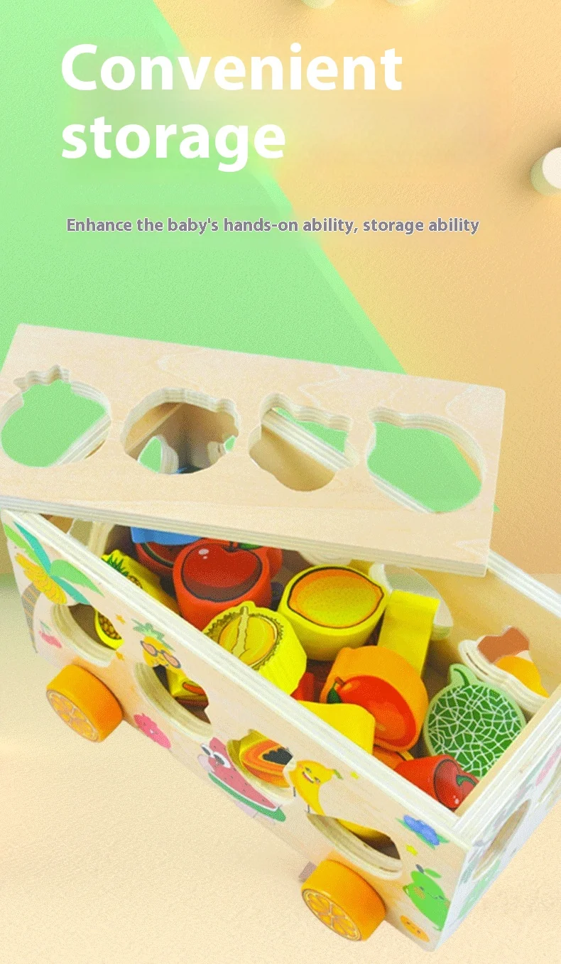 Children’s Educational Fruit and Traffic Shape Trailer Early Education Cognitive Toys Fine Motor Training Wooden Toys