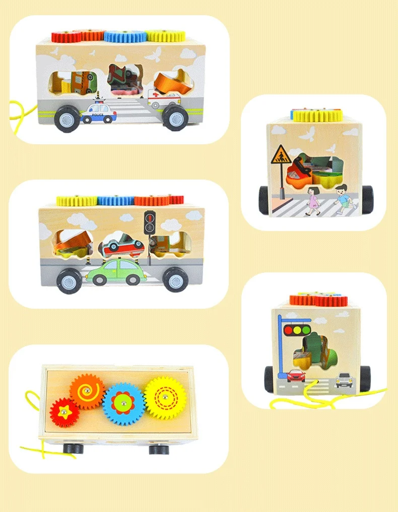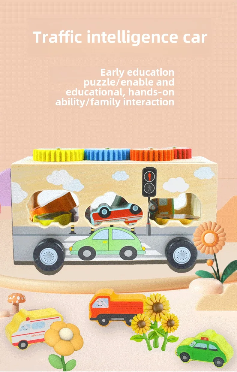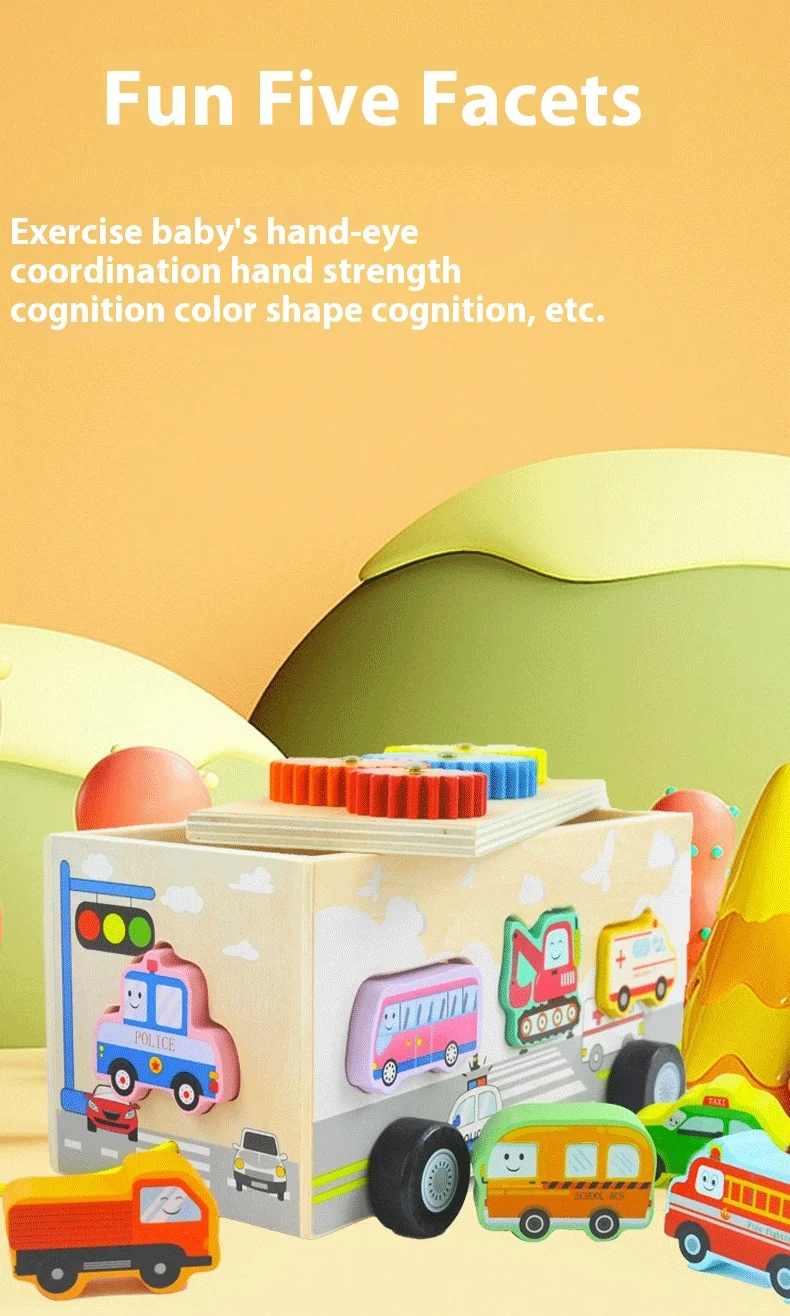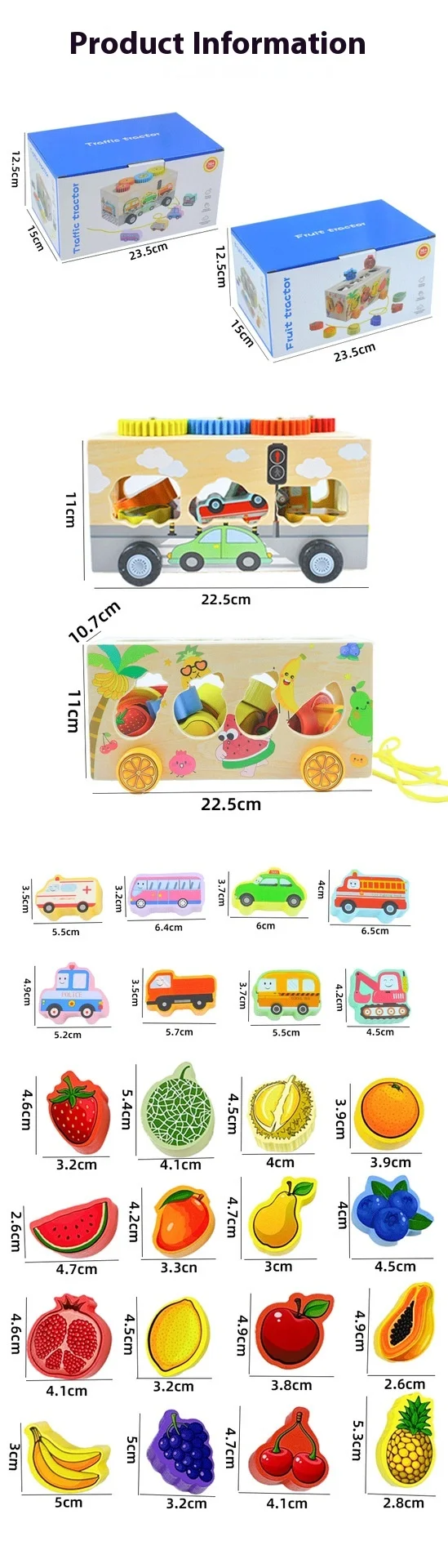 Children’s Educational Fruit and Traffic Shape Trailer Early Education Cognitive Toys Fine Motor Training Wooden Toys