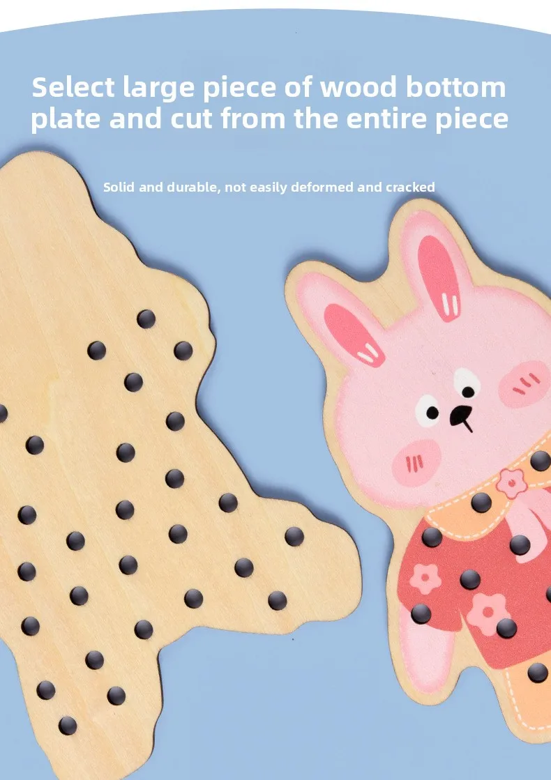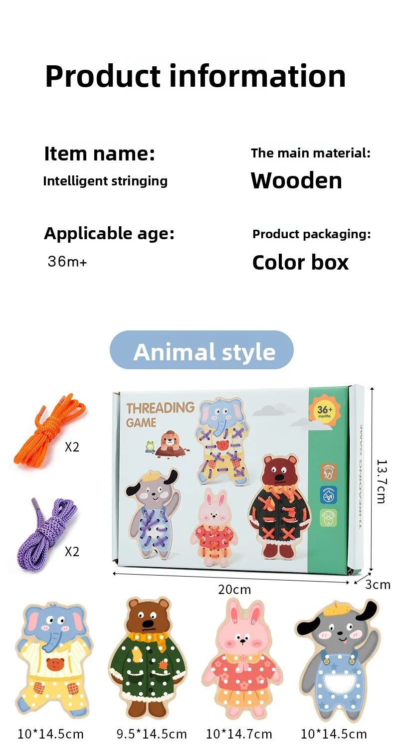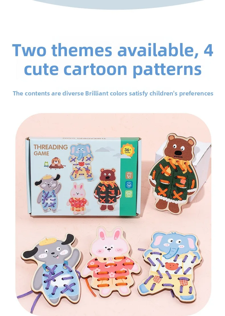 Children’s Educational Wooden Toy Cross-Border Dinosaur Rope Game for Early Hand-Eye Coordination Exercise for Babies