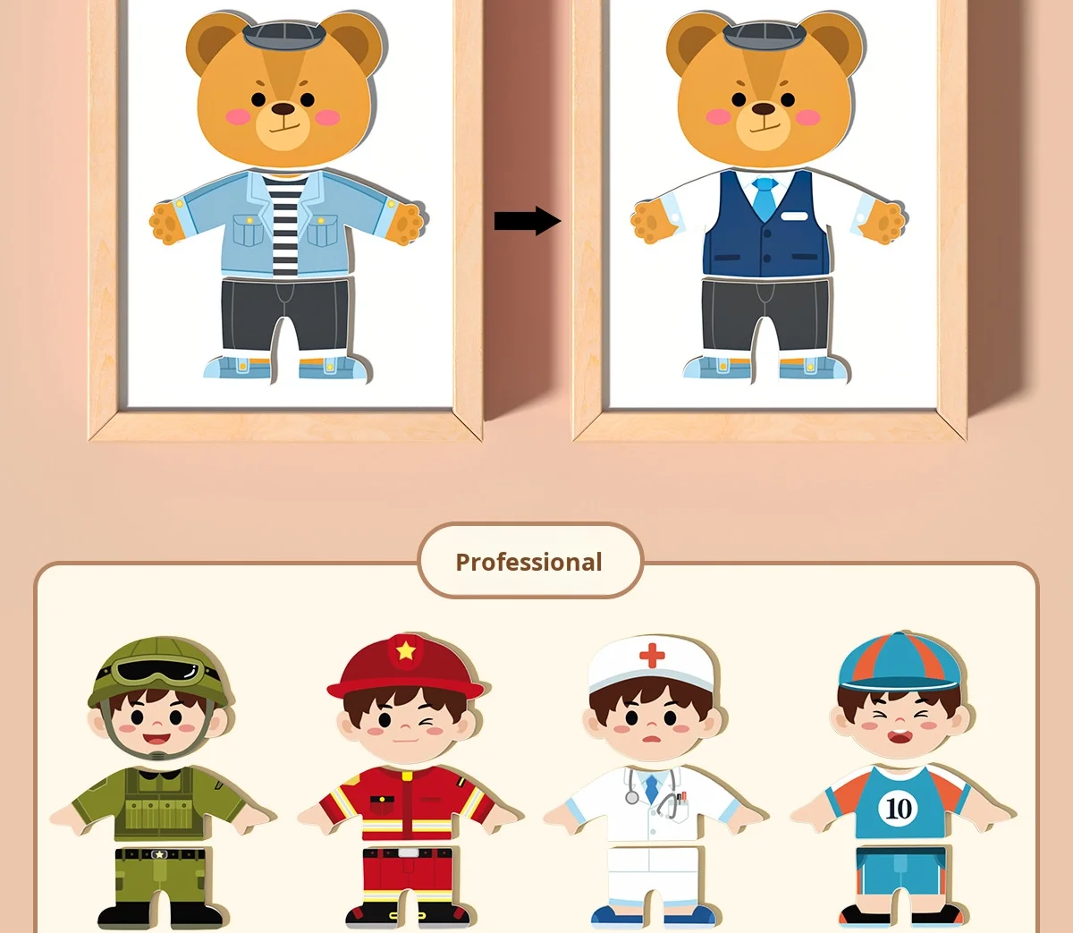 Children’s Fun 3D Puzzle Building Blocks Early Education Career Dress-Up Wooden Toys for Age Range 2 to 5 Years