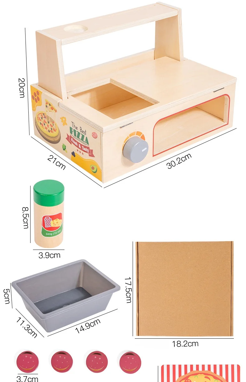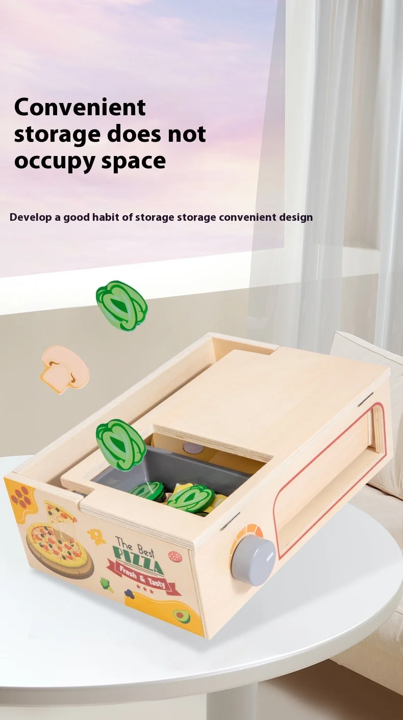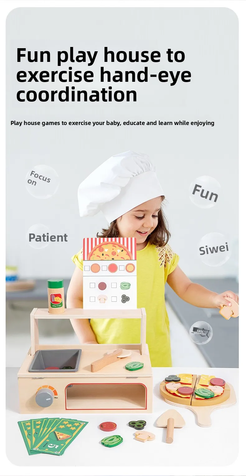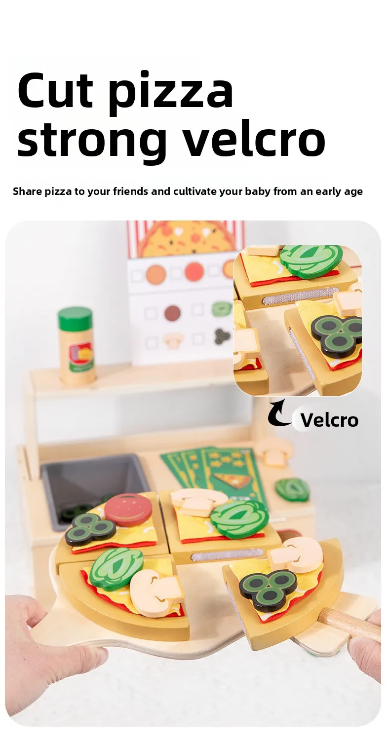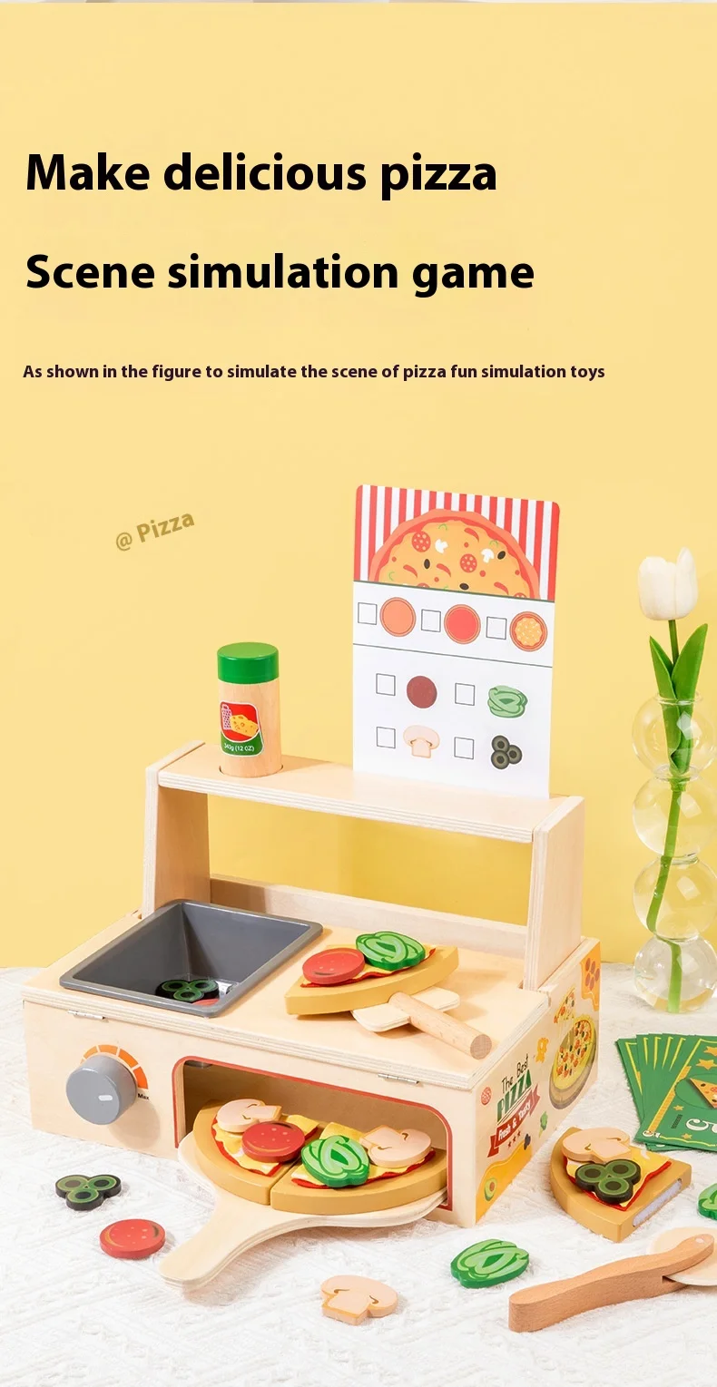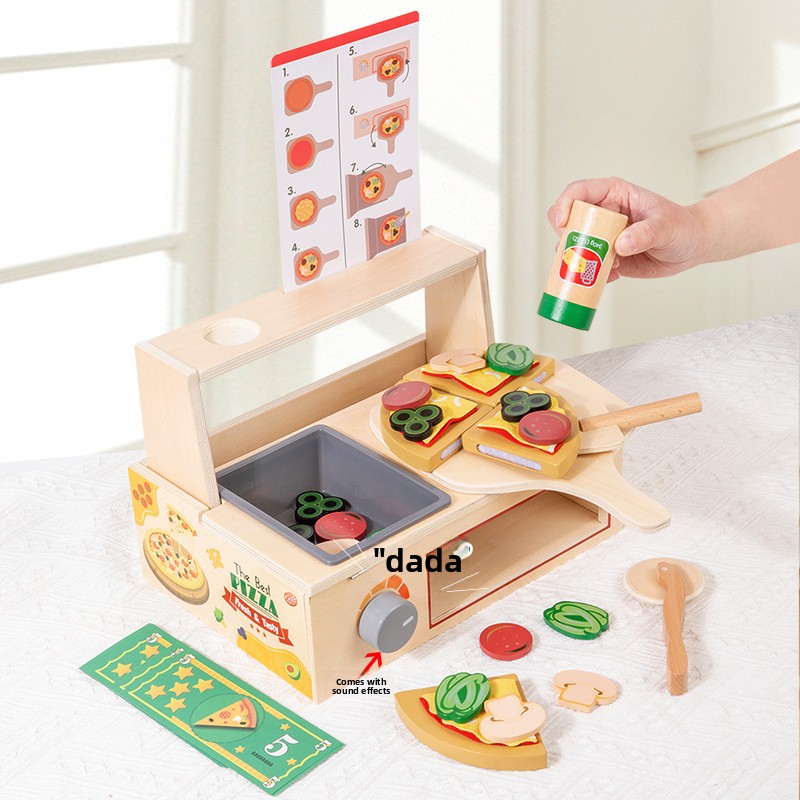 Children’s Interactive Wooden Play Kitchen Toy for Early Education Pizza Cutting & Cooking Simulation Toy
